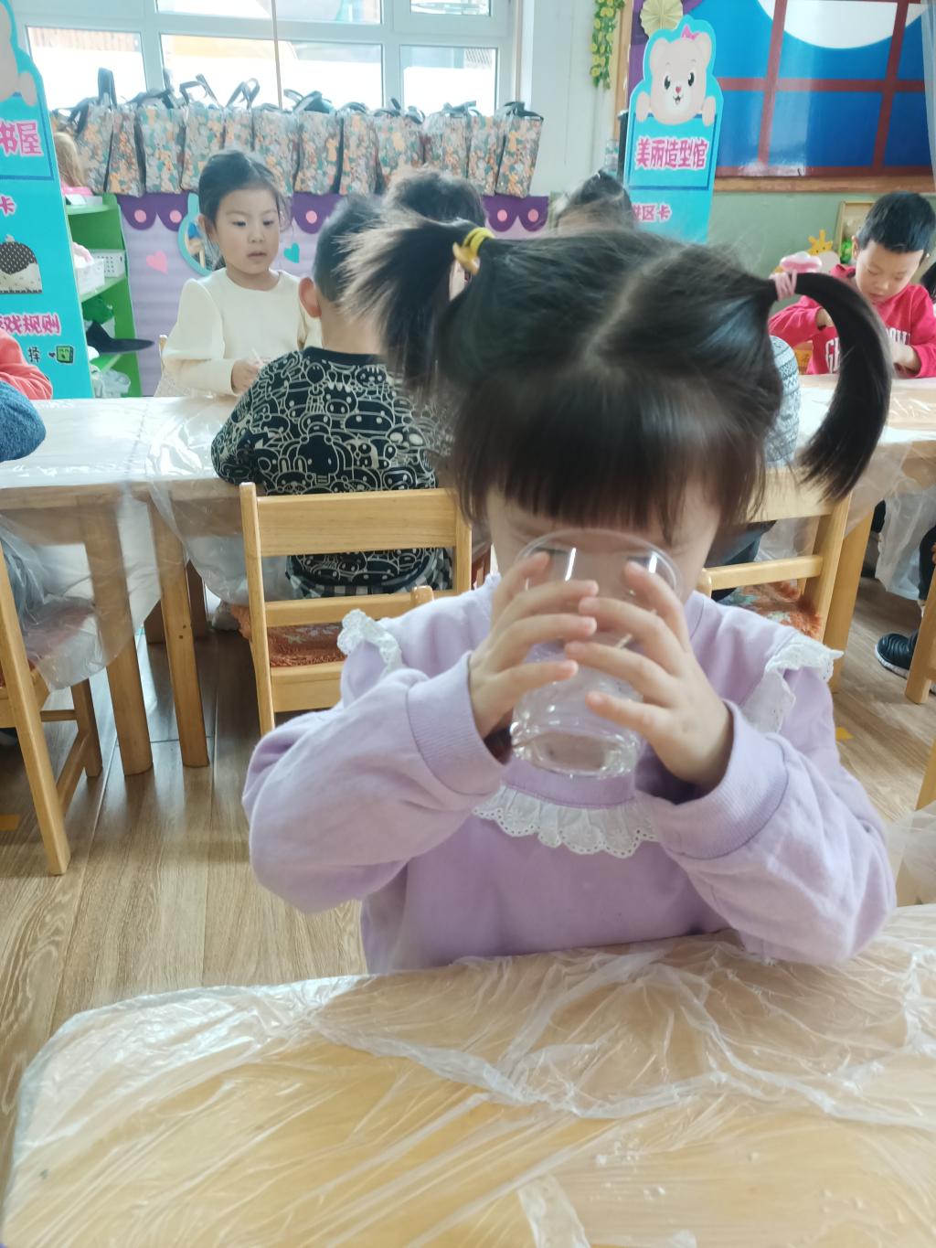 首先,老师为小朋友变了一个魔术,在透明杯中倒入水,并依次倒入三种白色粉末,用搅拌棒搅拌,神奇的事情发生了,杯中的水产生了好多气泡,过了一会儿,气泡逐渐变少,最后消失了。小朋友们对这个魔术十分好奇,纷纷想要尝试。