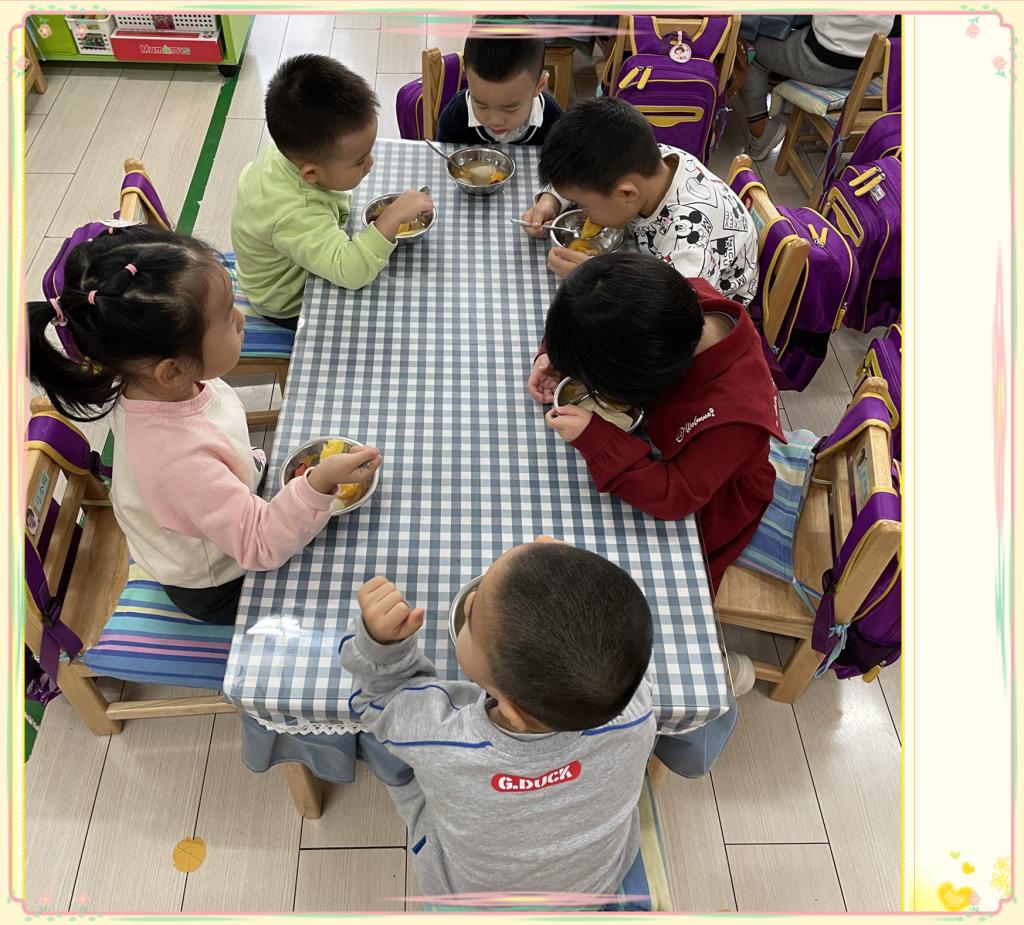 宝贝们吃着自己动手参与制作的罐头分外高兴,别提心里有多美了!满满一碗水果罐头都吃光了,不知有多满足,多高兴!