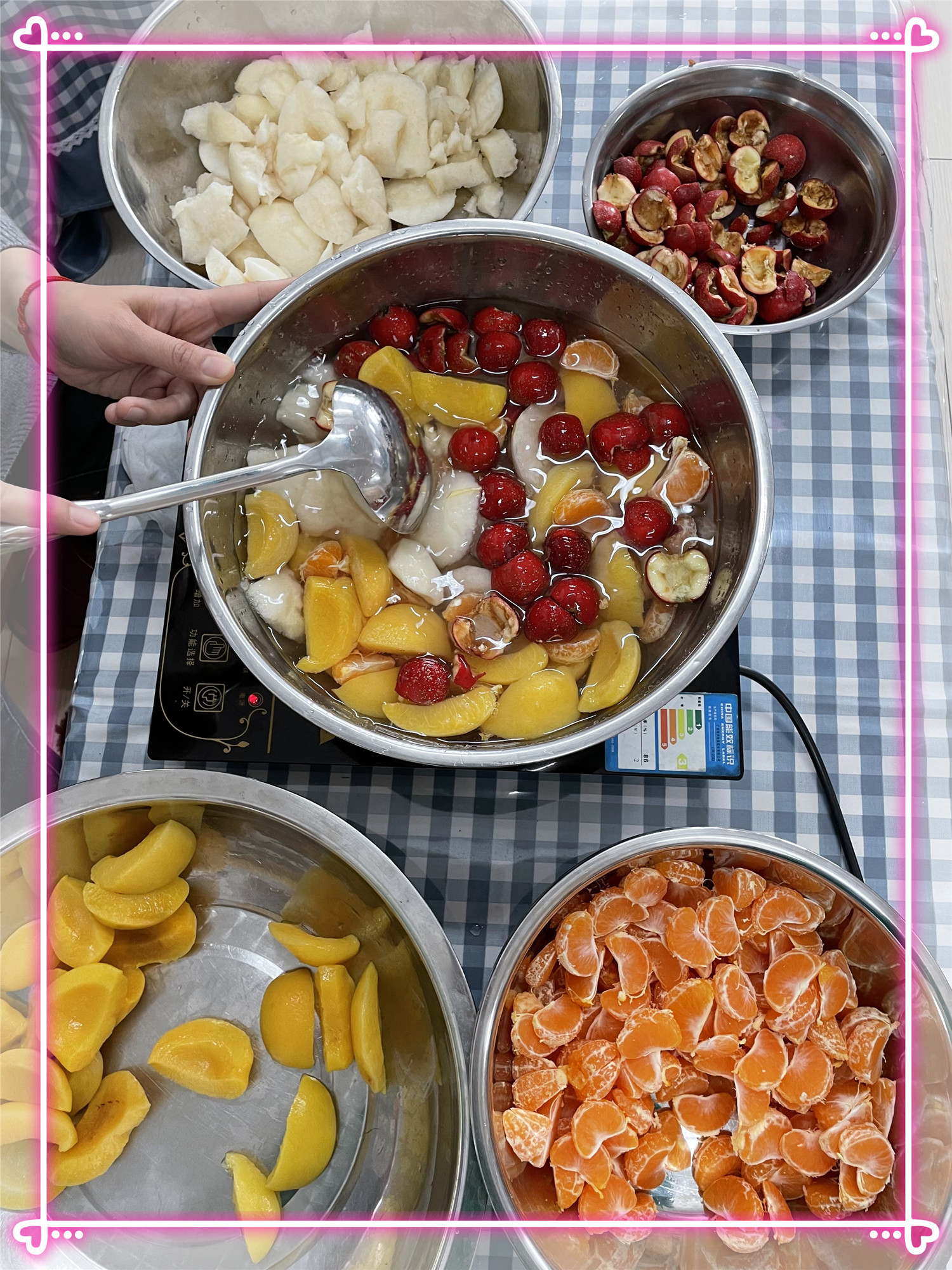 在等待的过程中,小朋友们一个个都迫不及待想快点吃到水果罐头,闻着锅里煮出来的清香味都快要流口水了。