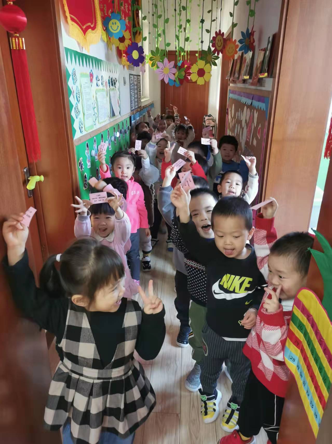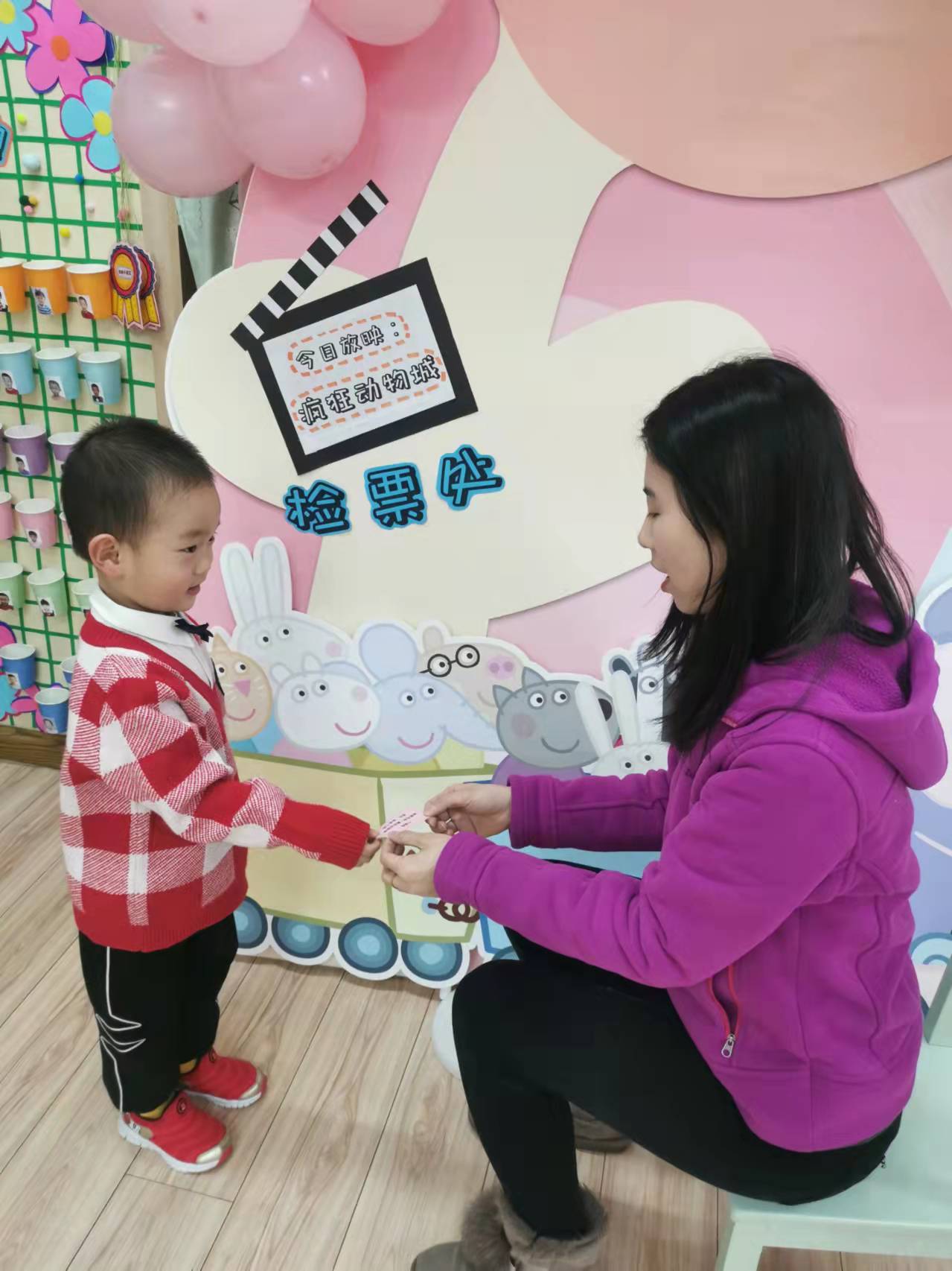 老师模拟了电影院的基本流程,设计了售票处、检票处。孩子们快速的如厕洗手,早早的拿着电影票在走廊排队等待老师检票,小脸上写满了兴奋和期待!