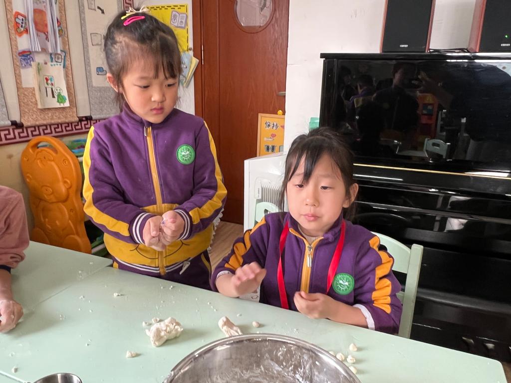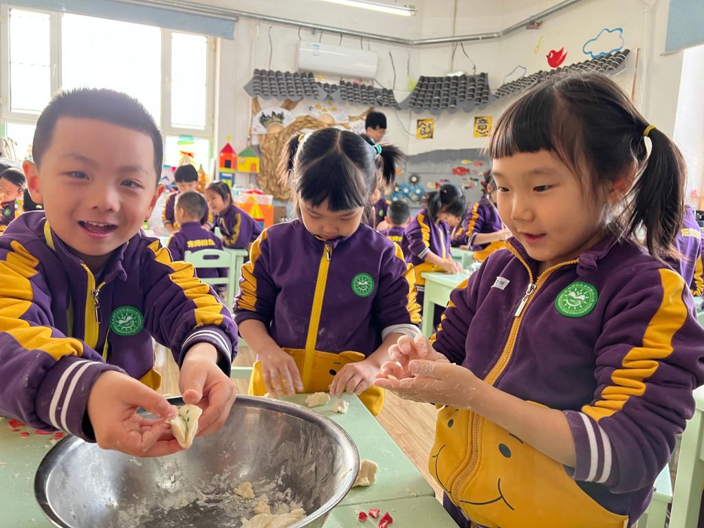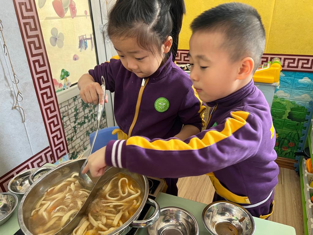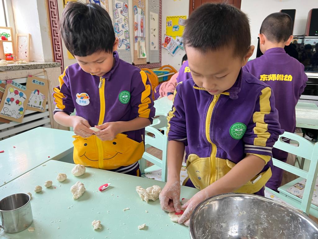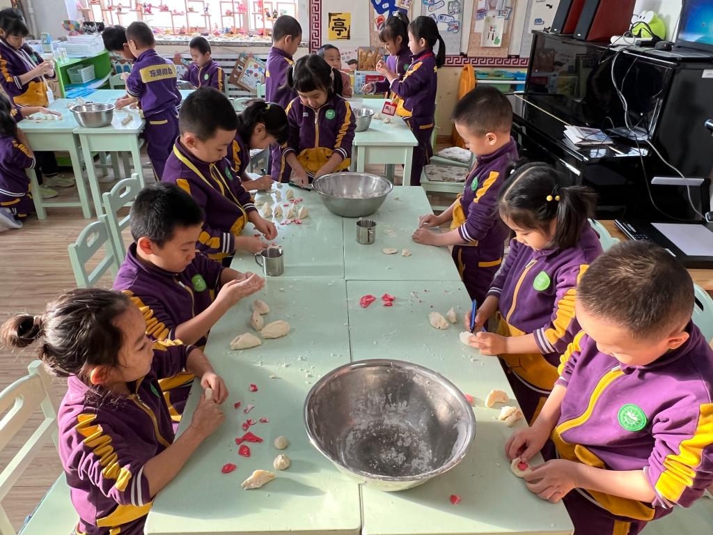 自从开展“面”的主题活动,孩子们特别喜欢,参与度也特别高,今天,我们遵循“能兴趣、善专注、喜探究、愿合作”的学风,又一次开展特色美食活动,让传统美食走进班级。为了让孩子们在幼儿园有一种家的感觉,也尊重每个幼儿的意愿,让他们用面可以制作不同的主食,如饺子、旮沓汤、麻花、抻面、包子等等,还有做包子笼屉的小朋友哦!