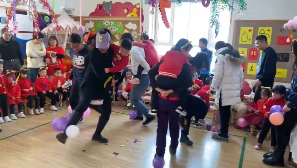 联欢会上当然少不了游戏,抢椅子、动物蹲、踩气球等经典游戏,小朋友和家长朋友们玩得十分开心。
