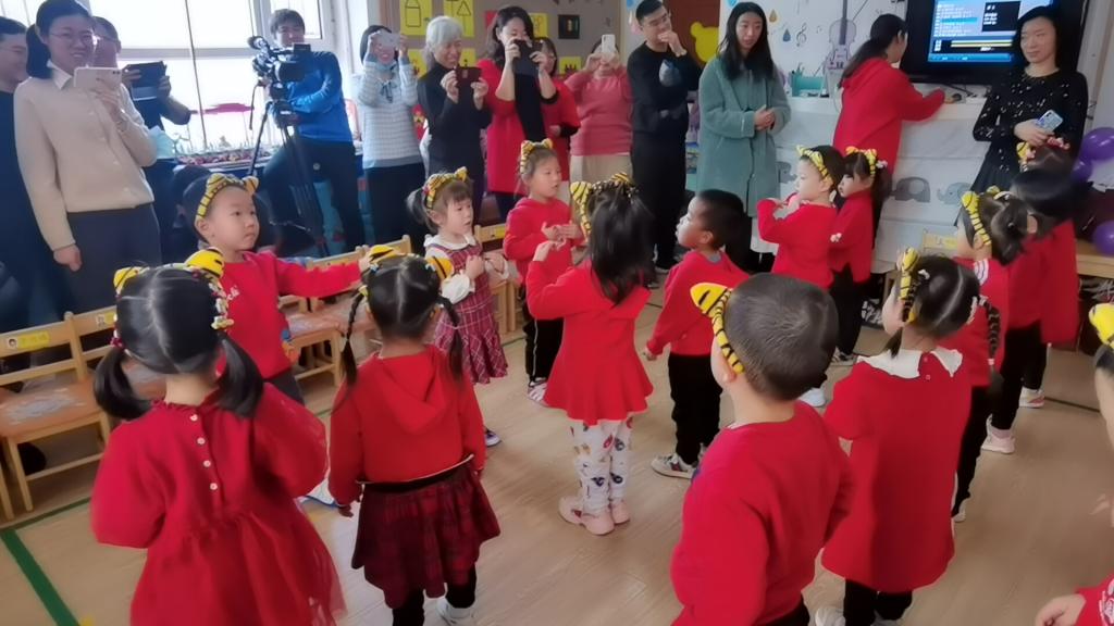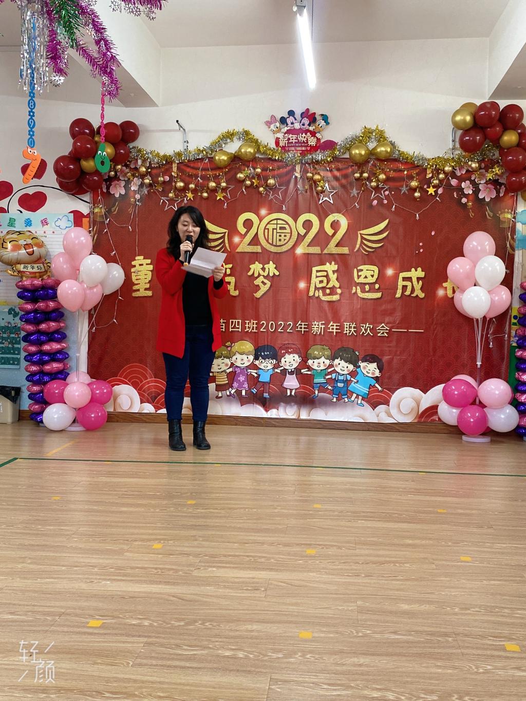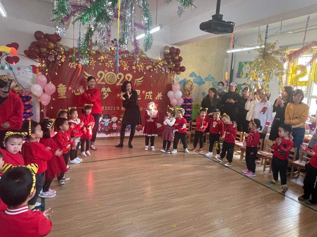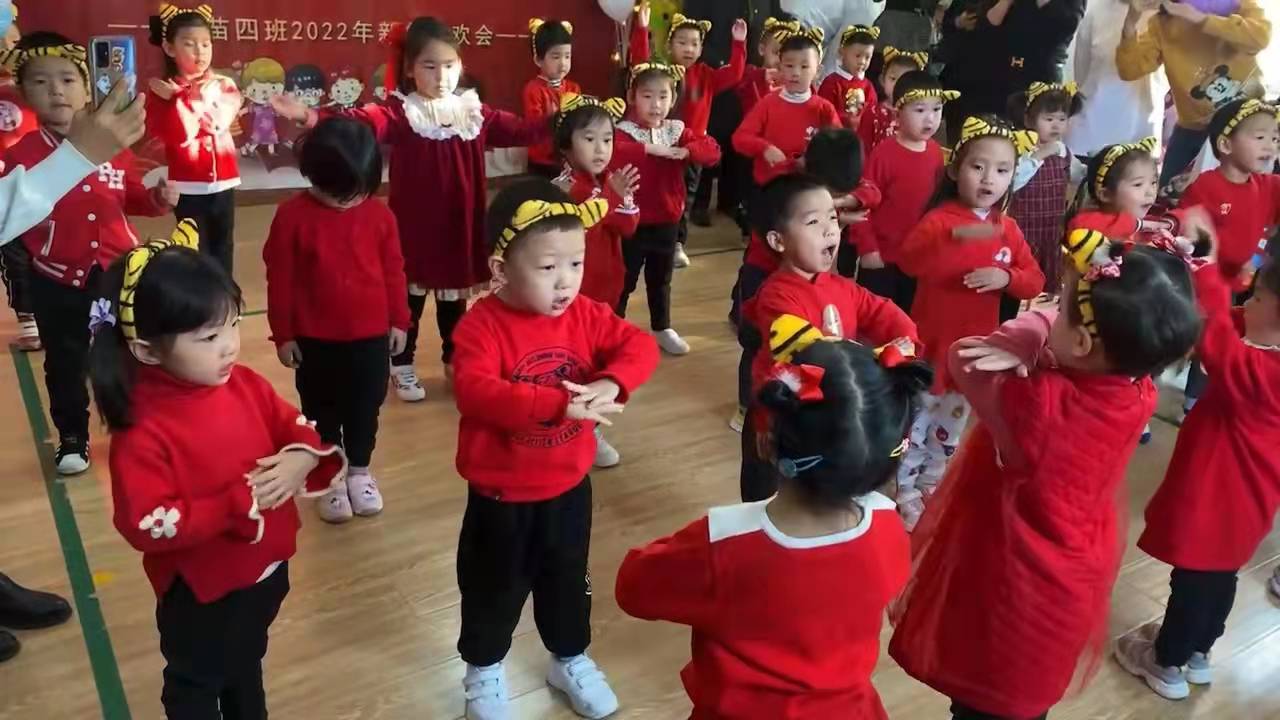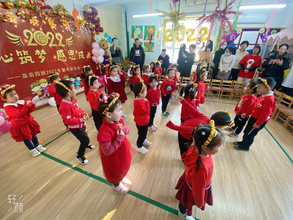 雪花飘,梅花俏,喜鹊喳喳枝头叫。穿新衣,戴新帽,幼儿园里真热闹。剪窗花,贴春联,共同庆祝新年到。唱欢歌,跳high舞,小朋友们齐欢笑。新年好,新年到,小朋友们都长高。绘画、游戏和舞蹈,我们的进步真不小。爆竹声声辞旧岁,新年祝福来报道。苗苗四班小朋友,祝愿大家新年好!伴随着整齐清脆的新年祝福,苗苗四班新年联欢会拉开了序幕。