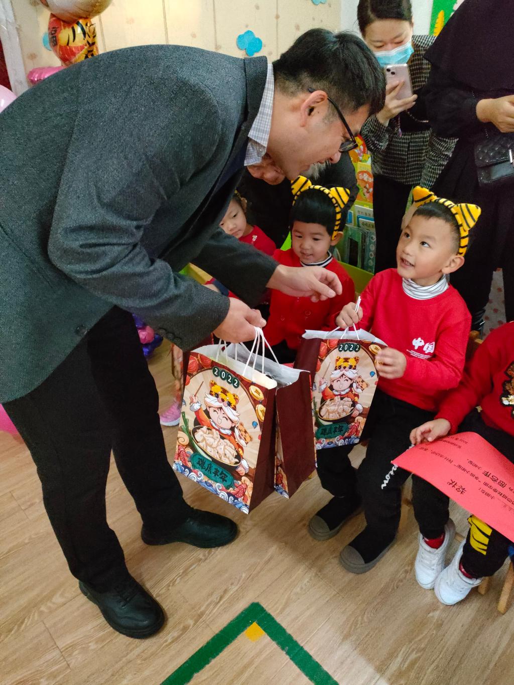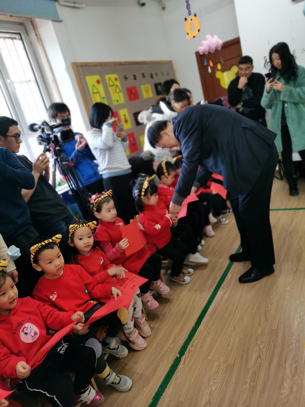 园长老师们给孩子们送来了礼物和新年祝福,祝愿小朋友们新年新气象,同时还为小朋友们颁发了“学风奖状”,评选出了“有兴趣小明星”“能专注小明星”“喜探究小明星”“愿合作小明星”。家长和小朋友们既开心又兴奋。