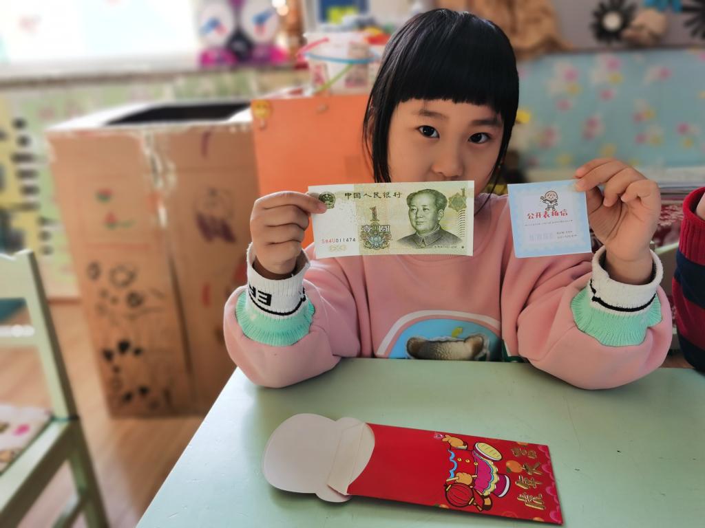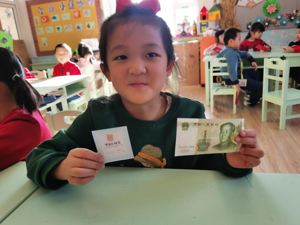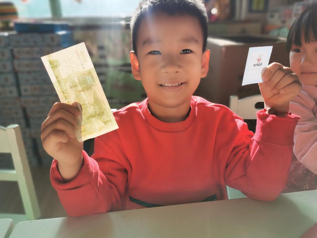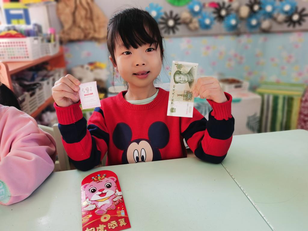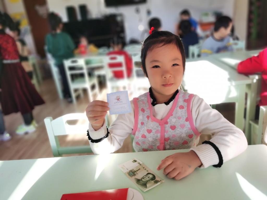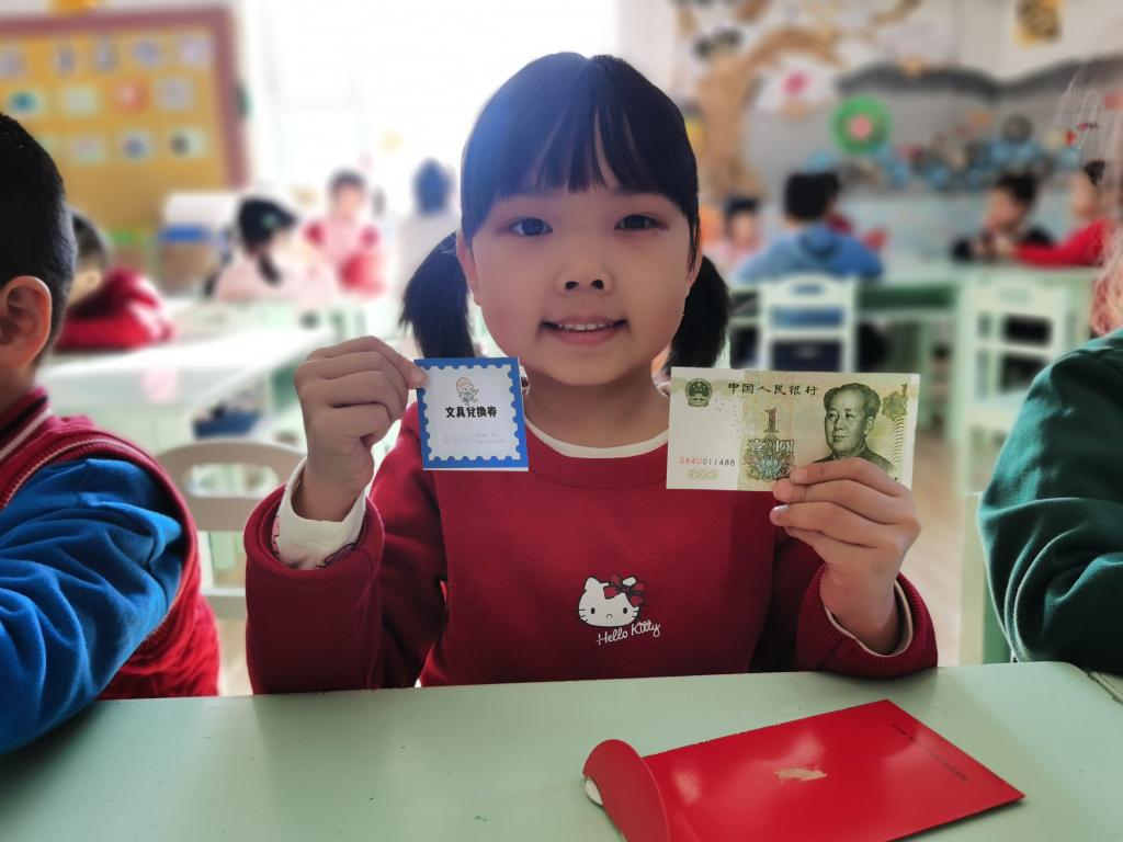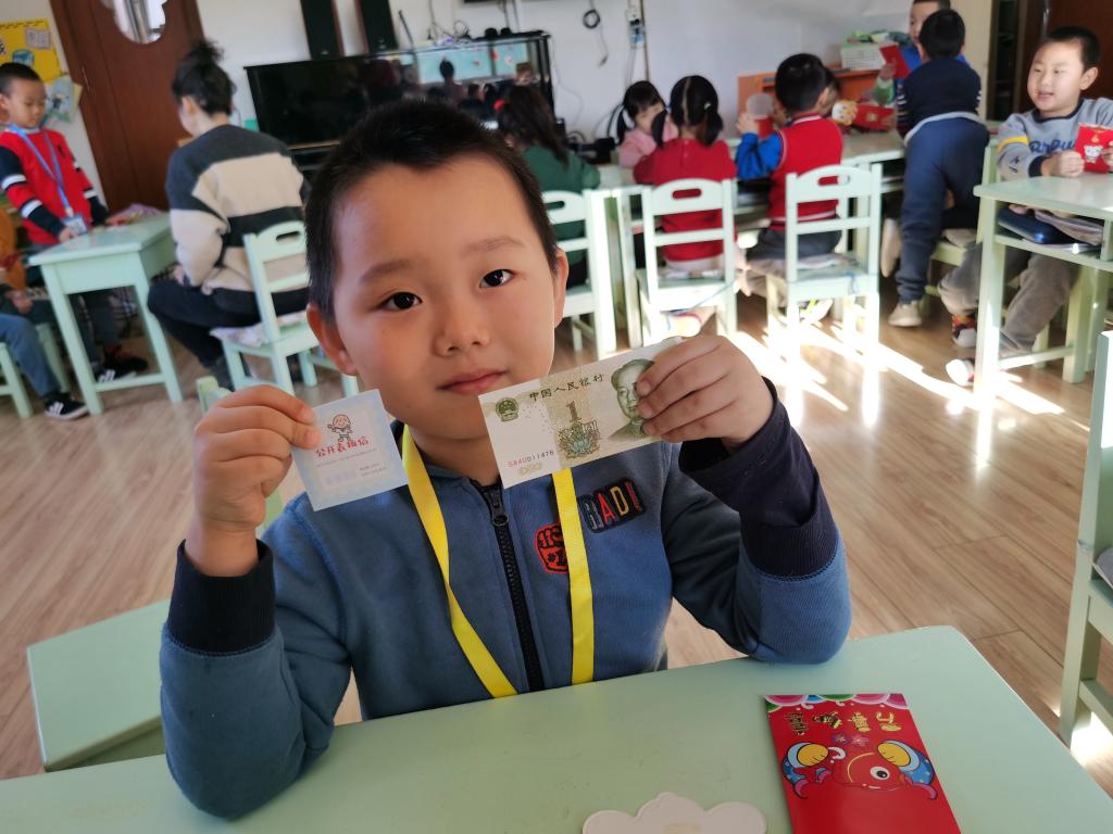 孩子们在激动、喜悦的心情下,开始选取自己的红包。回到座位以后,迫不及待的开始拆红包, 孩子们边拆边交流,说:“看我的里面有钱,还有一个券,我这是优先打饭券。”另外一个小朋友说:“我这也有,我这个是领队券。”这时旁边的小朋友说:“我的是零食兑换券,和你们的不一样。”