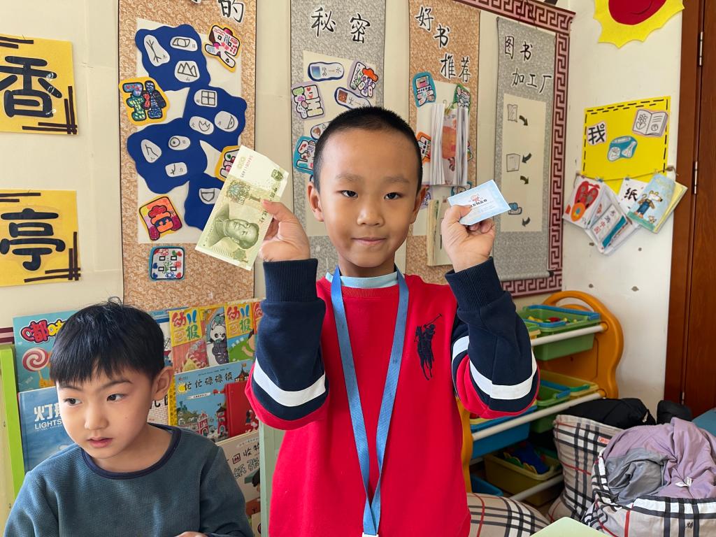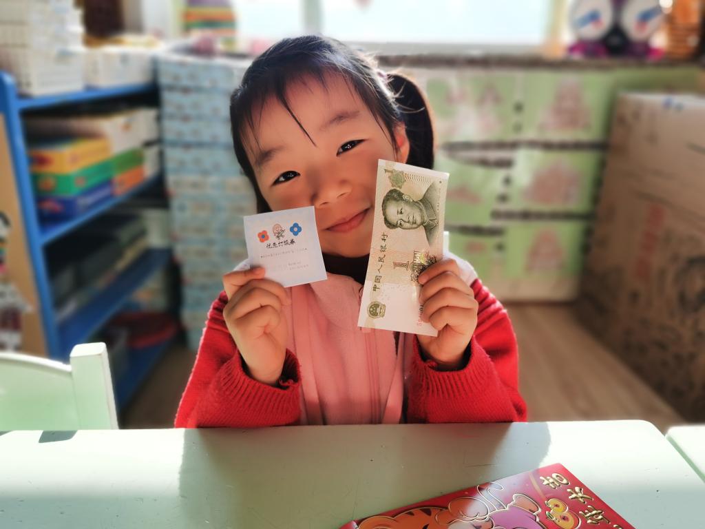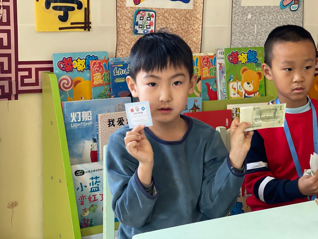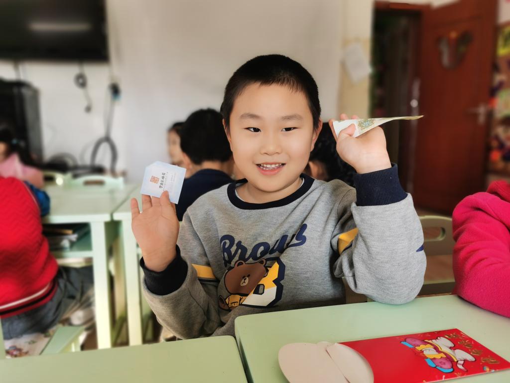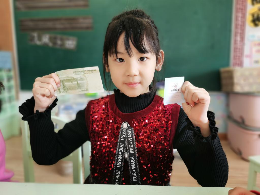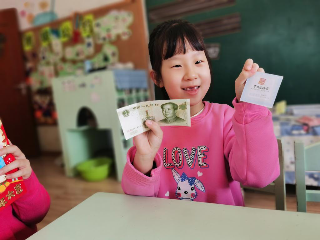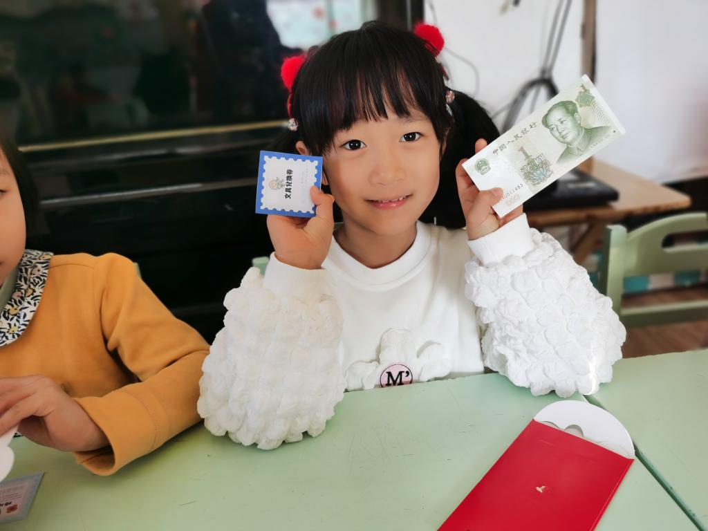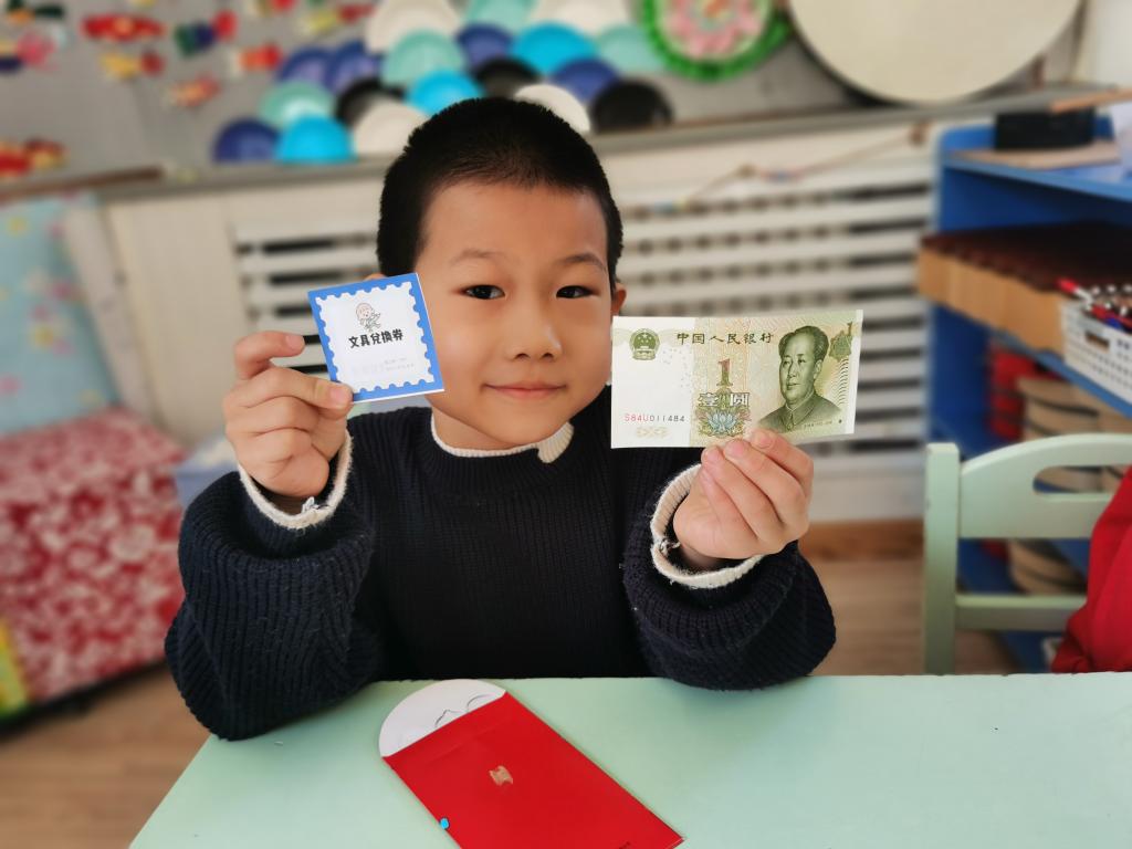 孩子们在激动、喜悦的心情下,开始选取自己的红包。回到座位以后,迫不及待的开始拆红包, 孩子们边拆边交流,说:“看我的里面有钱,还有一个券,我这是优先打饭券。”另外一个小朋友说:“我这也有,我这个是领队券。”这时旁边的小朋友说:“我的是零食兑换券,和你们的不一样。”
