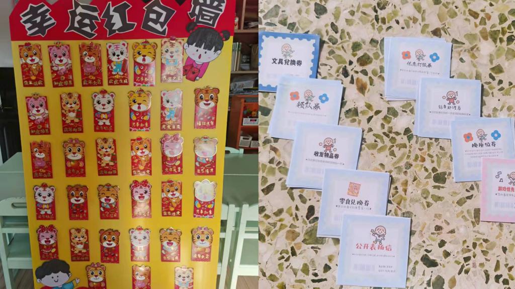 开学第一天,幼儿园里故事多。我们提前为小朋友们准备的幸运红包墙,红包里面除了压岁钱,还有我们自制的各种兑换券,希望孩子在感受年味的同时也拥有惊喜。
