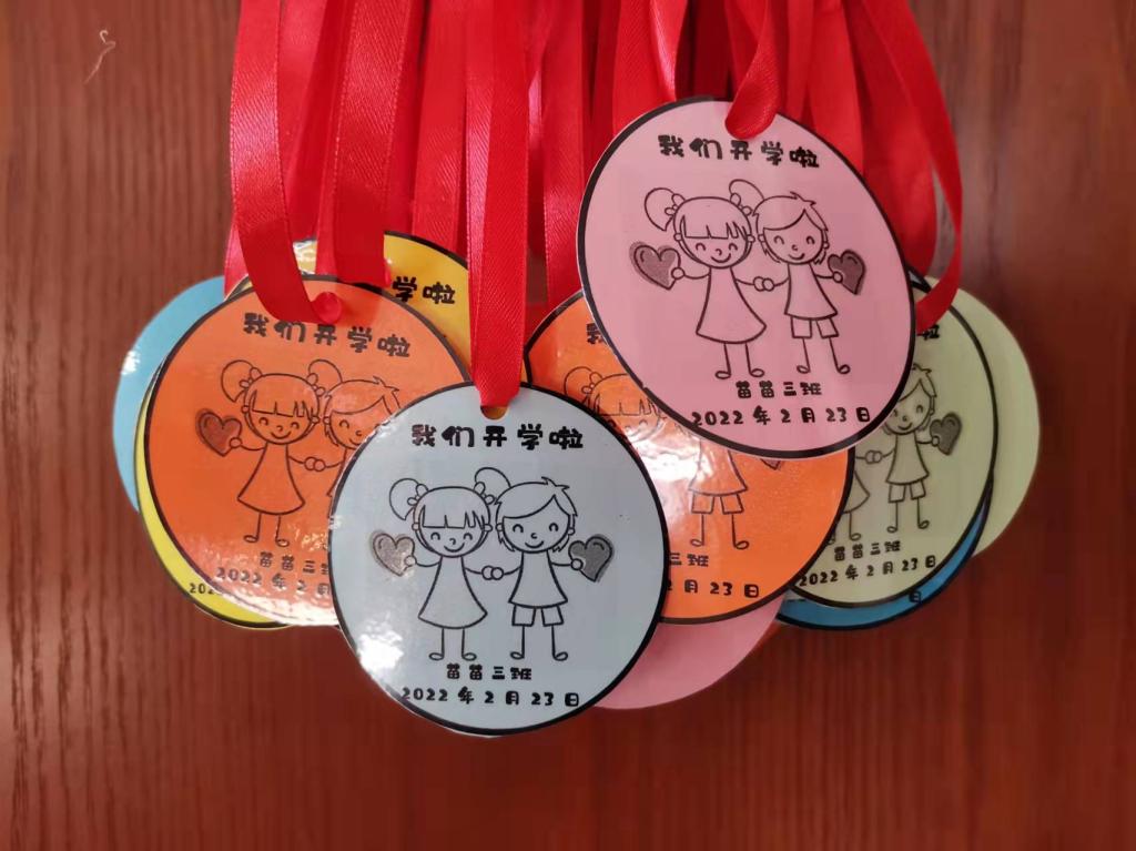 为了让宝贝们更加热爱新学期的生活,感受自己成长的快乐,老师为每一位宝贝颁发了一块“我们开学了啦”奖牌,鼓励宝贝们高高兴兴的来幼儿园。