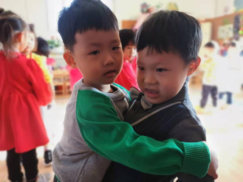 宝贝们一边唱着《哈喽哈喽》,一边热情的拥抱,熟悉的环境、亲切的老师们、可爱的小伙伴们、美妙的音乐...宝贝们在唱唱跳跳间迅速的重回幼儿园的怀抱。