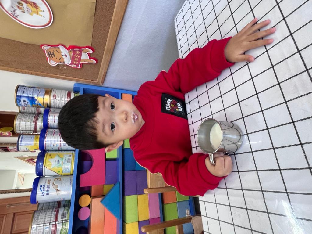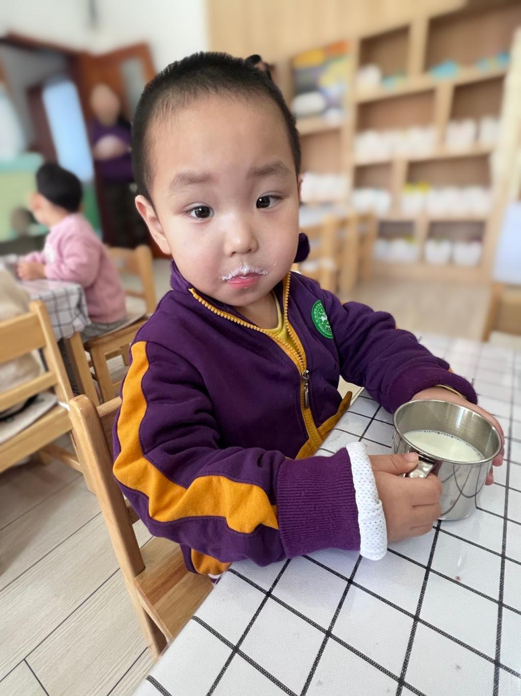 小朋友在幼儿园一起分享牛奶,我们闻一闻,喝一口,美味极了!
