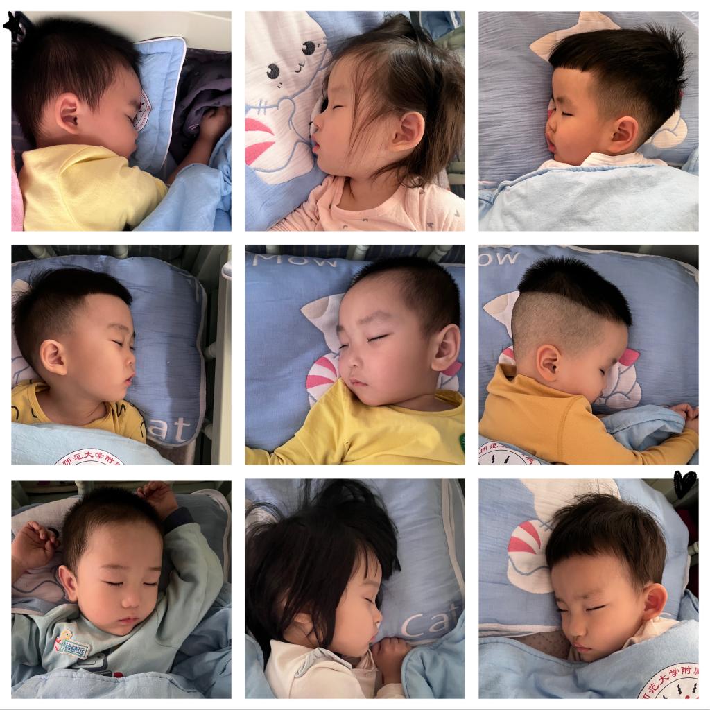 听着优美安静熟悉的摇篮曲,在老师的陪伴下我们进入了甜蜜的梦乡!