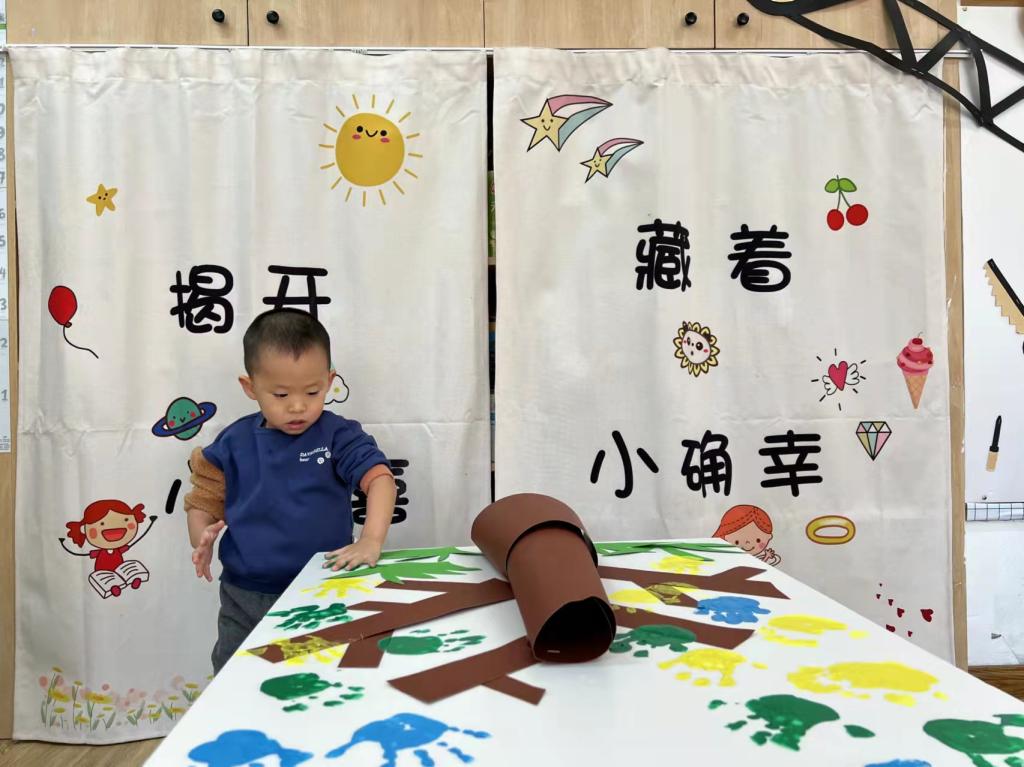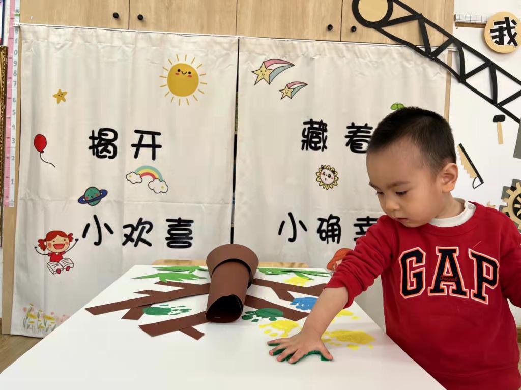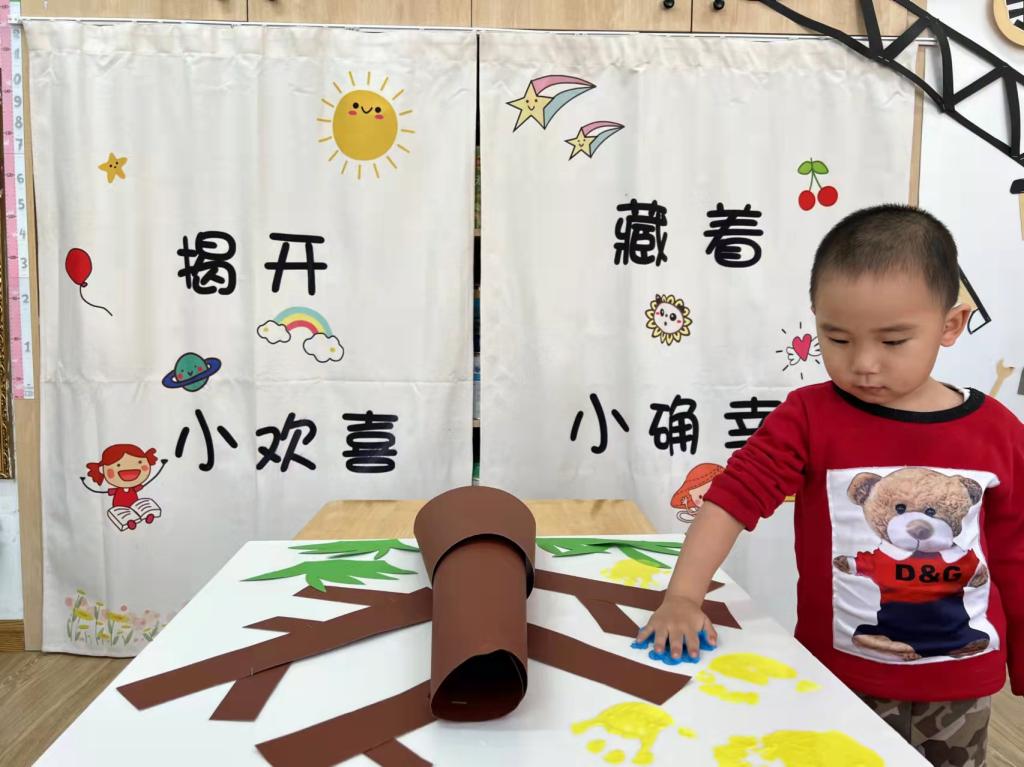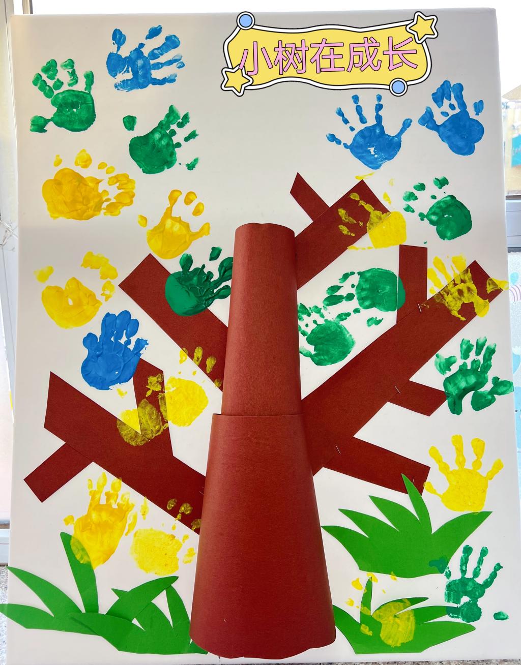 开学第一天,孩子们用小手蘸上颜料,拓印在画纸上,为大树添加属于他们的色彩,让大树长出美丽的树叶,使干枯的大树生机勃勃。孩子们看到合作的成果,充满了成就感和自豪感,通过快乐印画“参天大树”,期盼开启美好的时光,像小树一样茁壮成长!