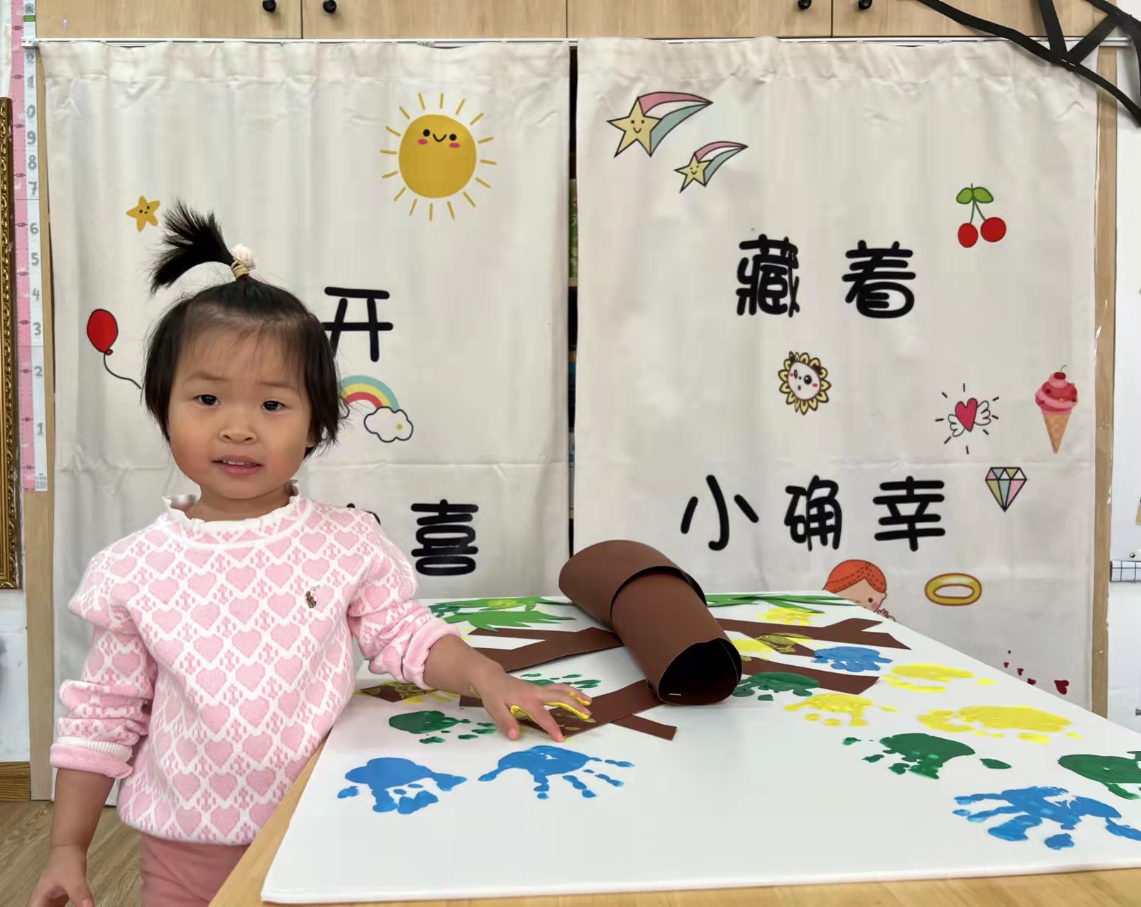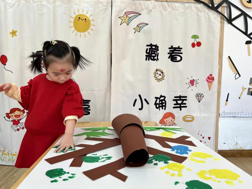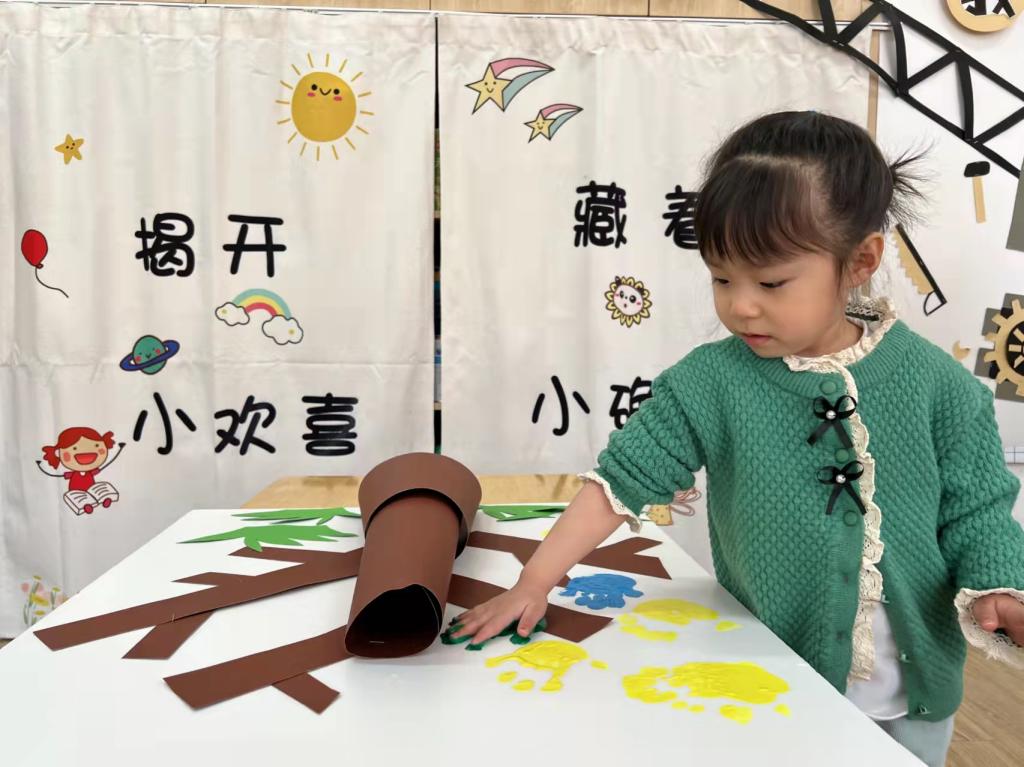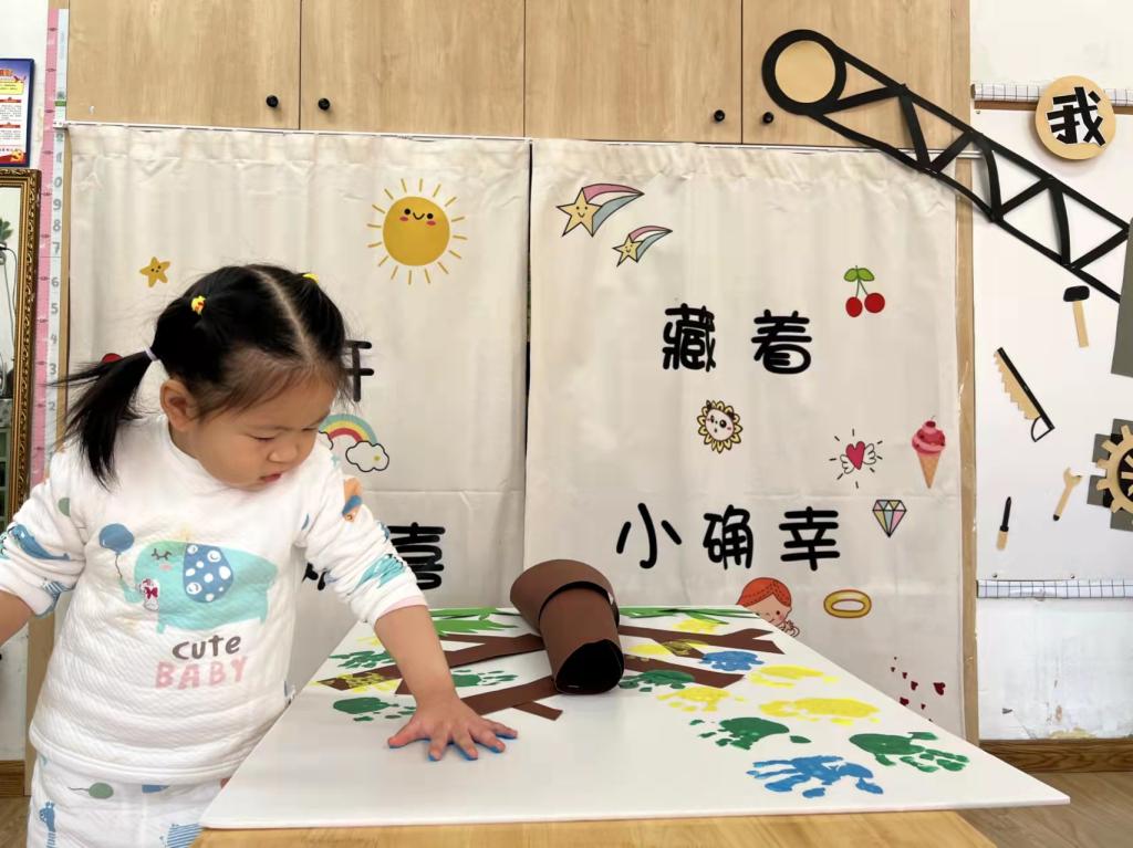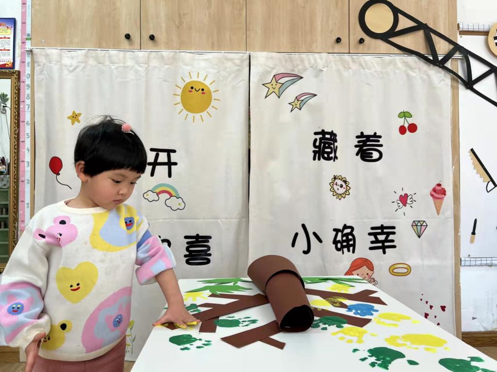 开学第一天,孩子们用小手蘸上颜料,拓印在画纸上,为大树添加属于他们的色彩,让大树长出美丽的树叶,使干枯的大树生机勃勃。孩子们看到合作的成果,充满了成就感和自豪感,通过快乐印画“参天大树”,期盼开启美好的时光,像小树一样茁壮成长!