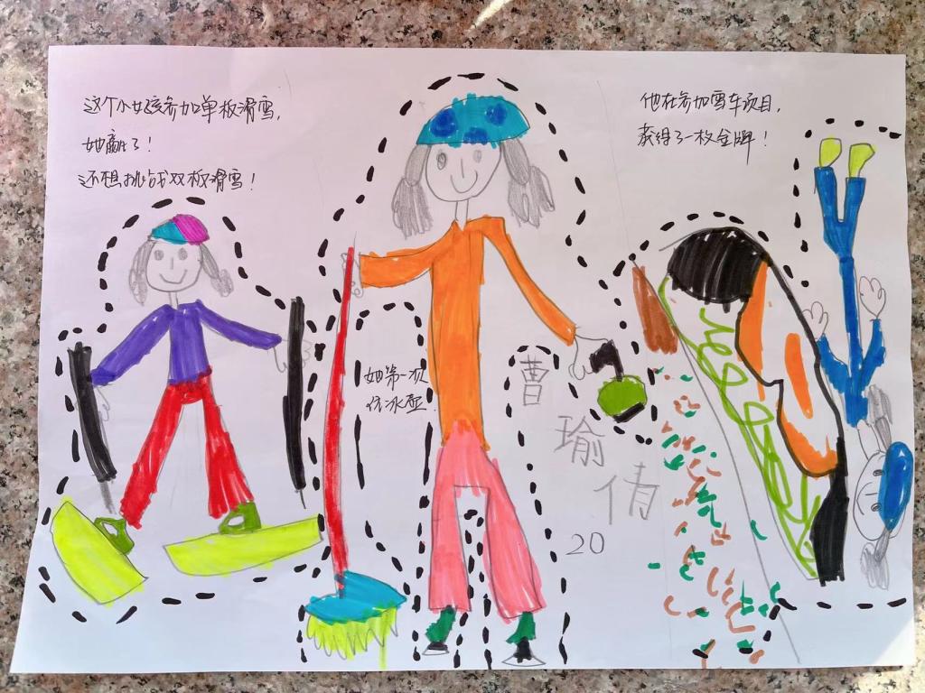 孩子们发挥天马行空的想象力,通过绘画吉祥物表达出孩子们对于冬奥的理解,独一无二的作品绘出自己的冬奥梦想,激发了孩子们对冬奥会的创作热情。