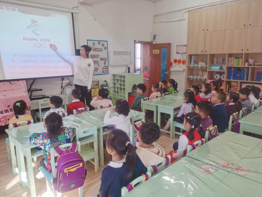 老师为小朋友们讲解冬奥会的小知识,小朋友们积极踊跃地举手回答问题!通过老师的讲解,点燃了小朋友们的冬奥热情,对冬奥会有了更直观的了解。