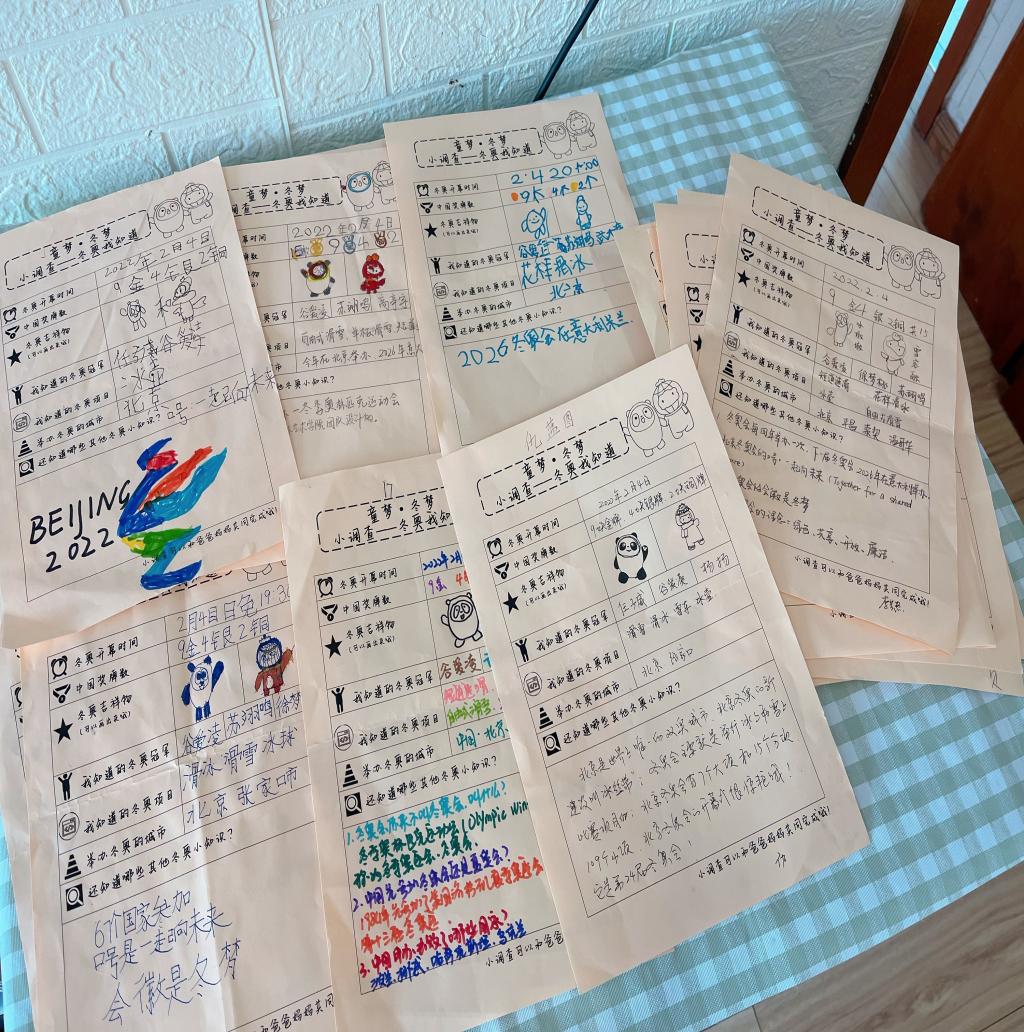 孩子们在家观看了开幕式闭幕式,还利用周末时间,和爸爸妈妈进行了冬奥知识小调查。