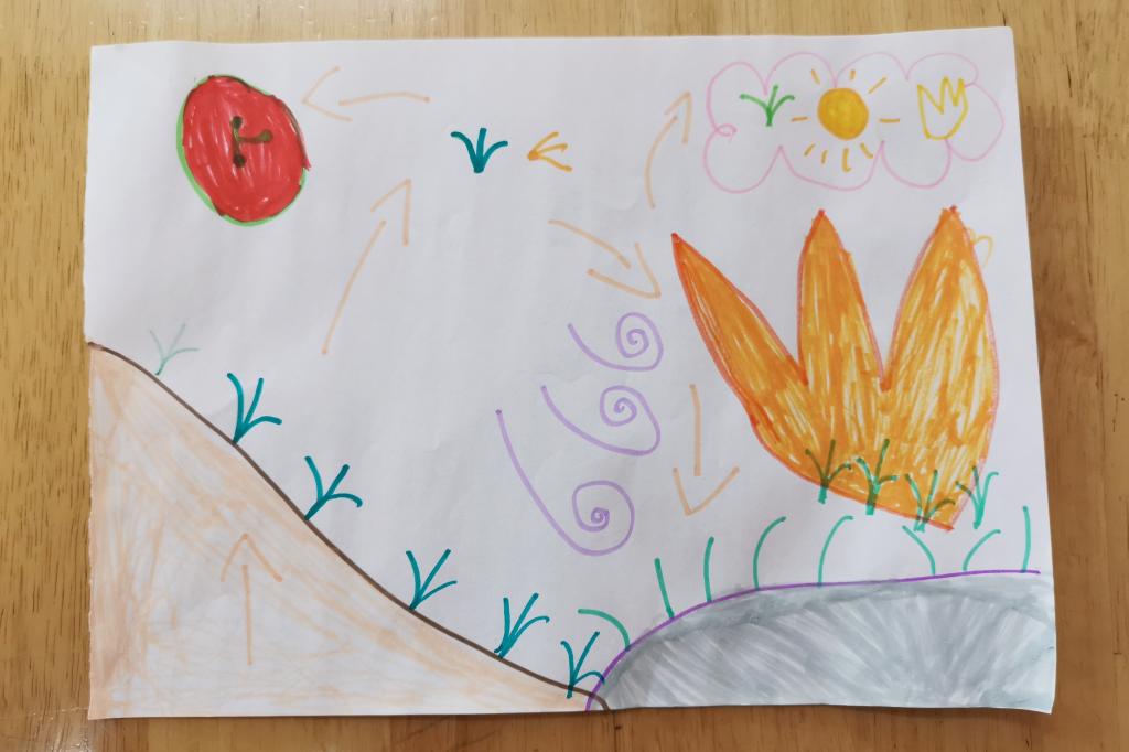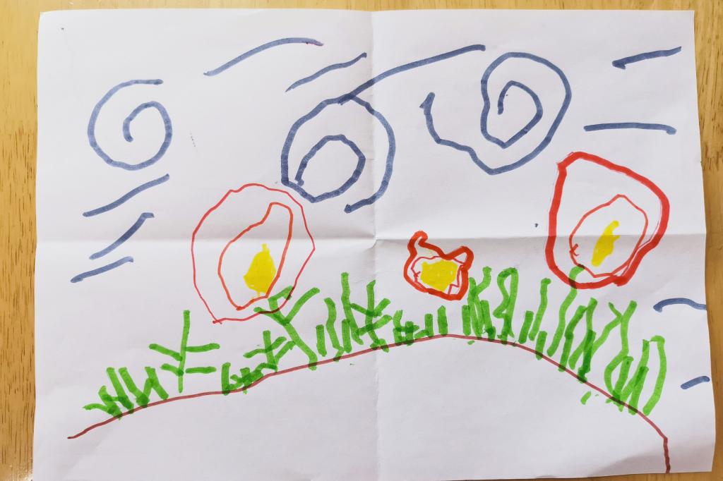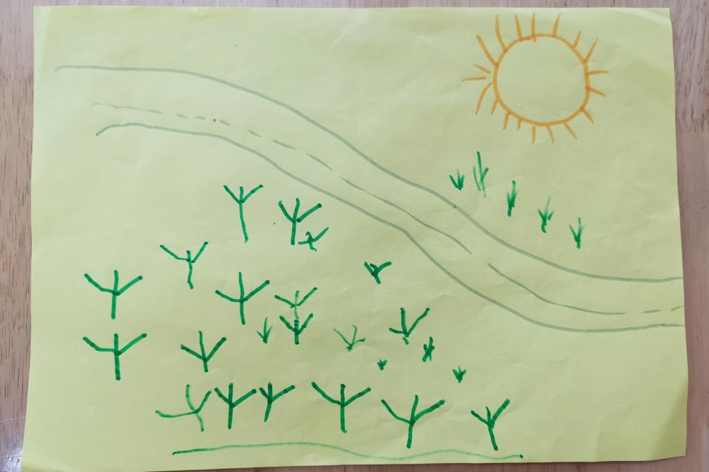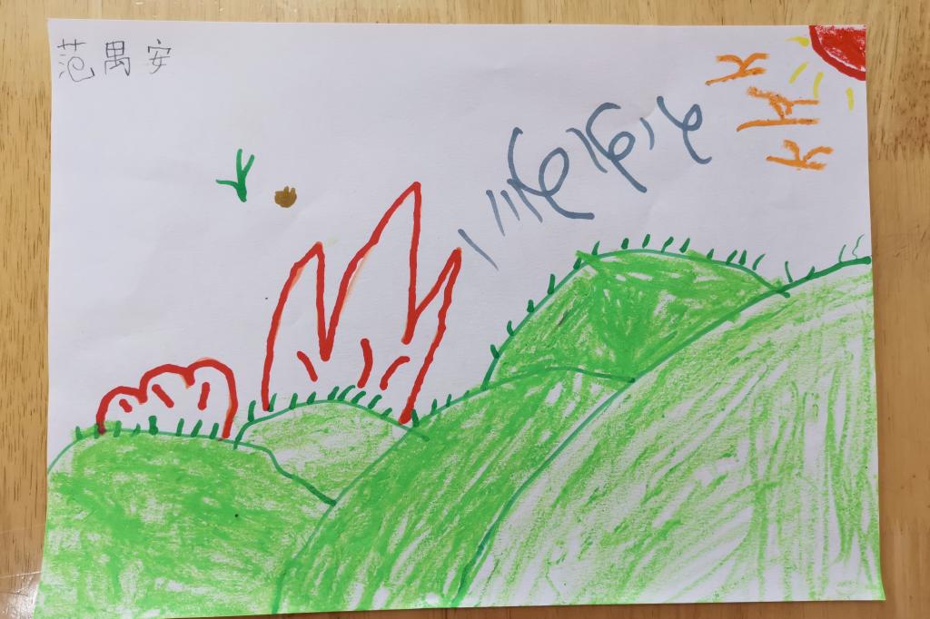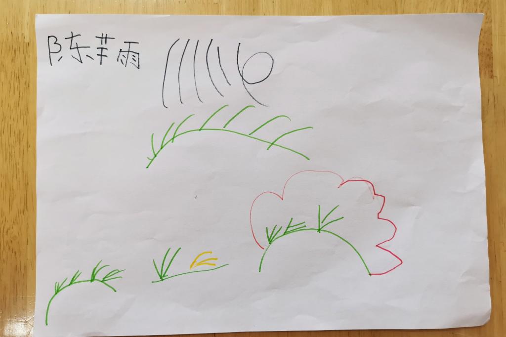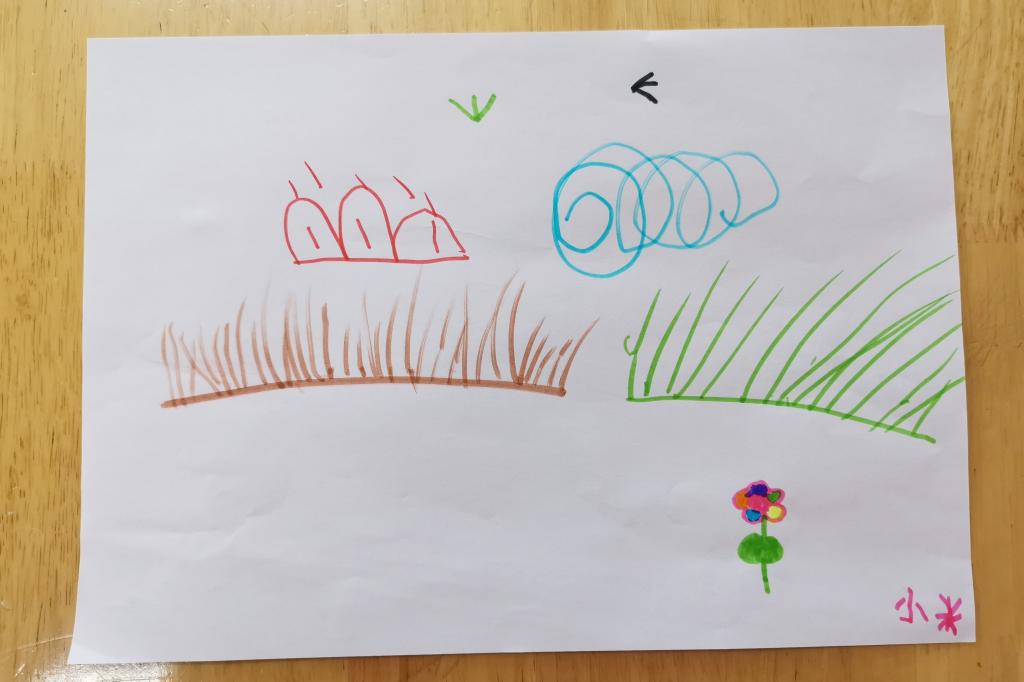 小朋友们纷纷拿起笔,不一会,栩栩如生的场景就被小朋友们用小画笔勾勒出来了。互相欣赏完作品,小朋友们更加理解了诗中所表达的意思。更在回家后给爸爸妈妈分享这首诗的意思和小草坚韧不拔的精神。