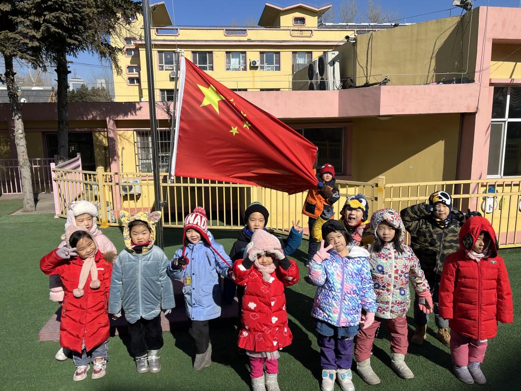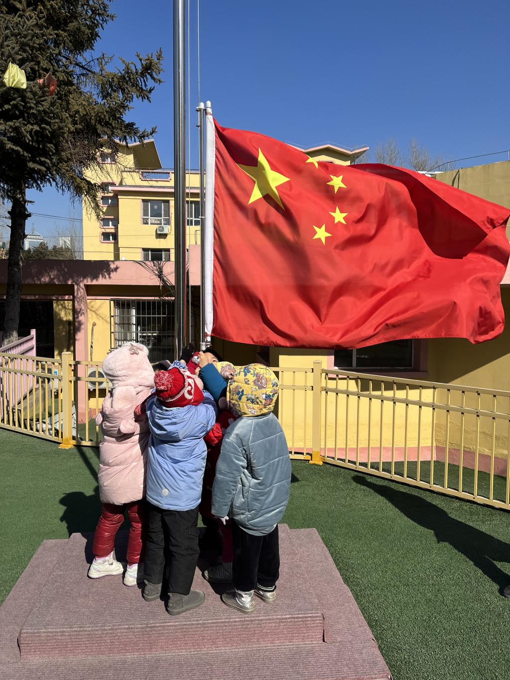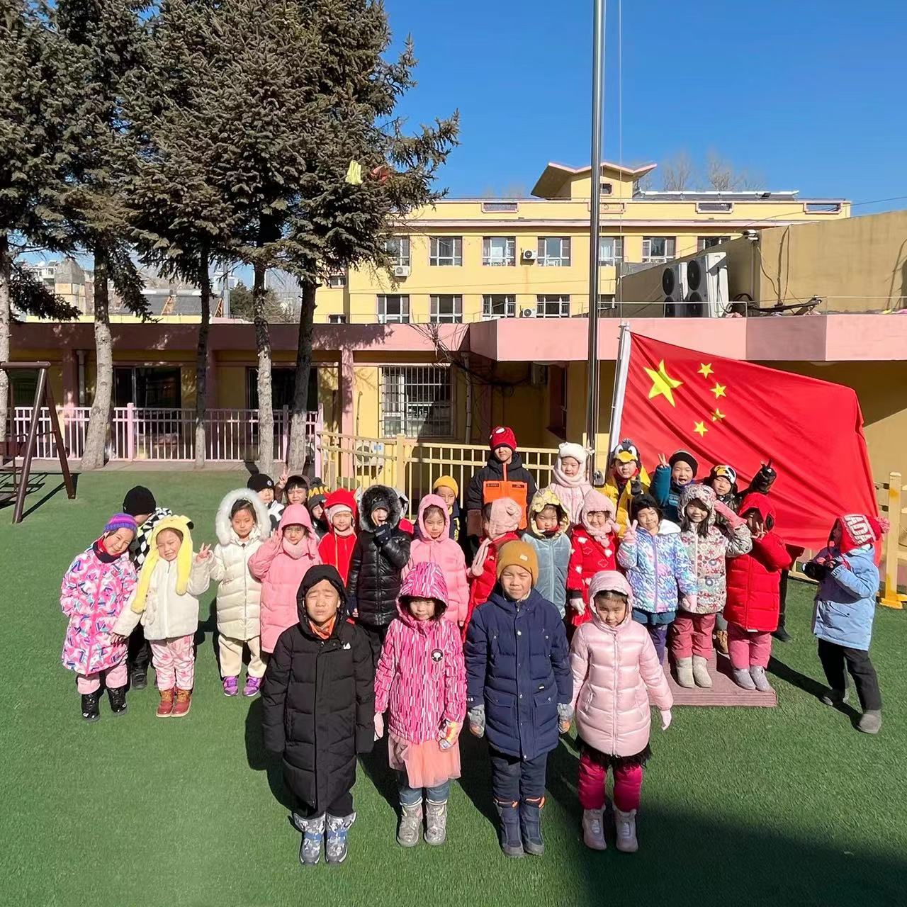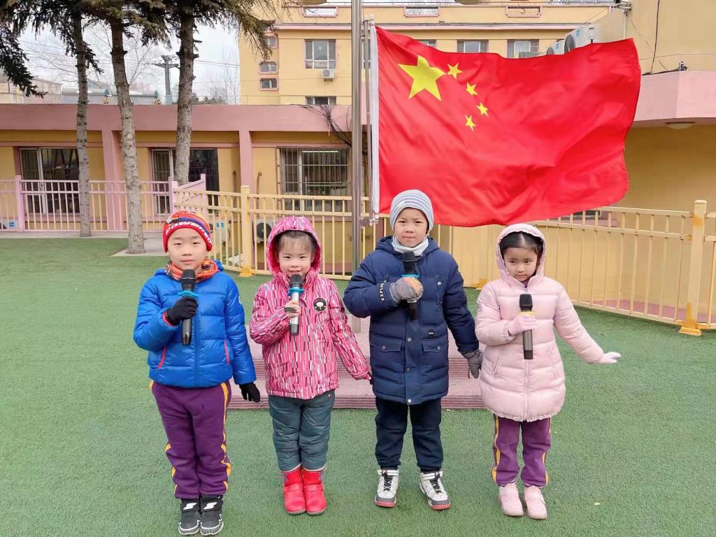 当太阳射出第一道金色的光芒,当庄严的国歌奏起第一个悦耳的音符,鲜艳的五星红旗像一团炙热的火焰迎着朝阳,沐浴晨曦冉冉升起,东北师范大学附属幼儿园全体教师和小朋友们正肃立地站在操场上,等待着我们升旗仪式的开始。