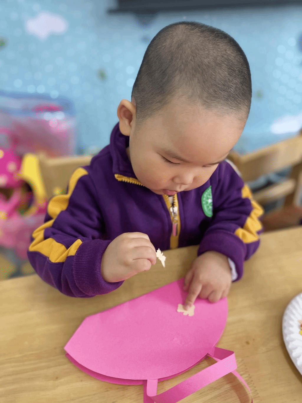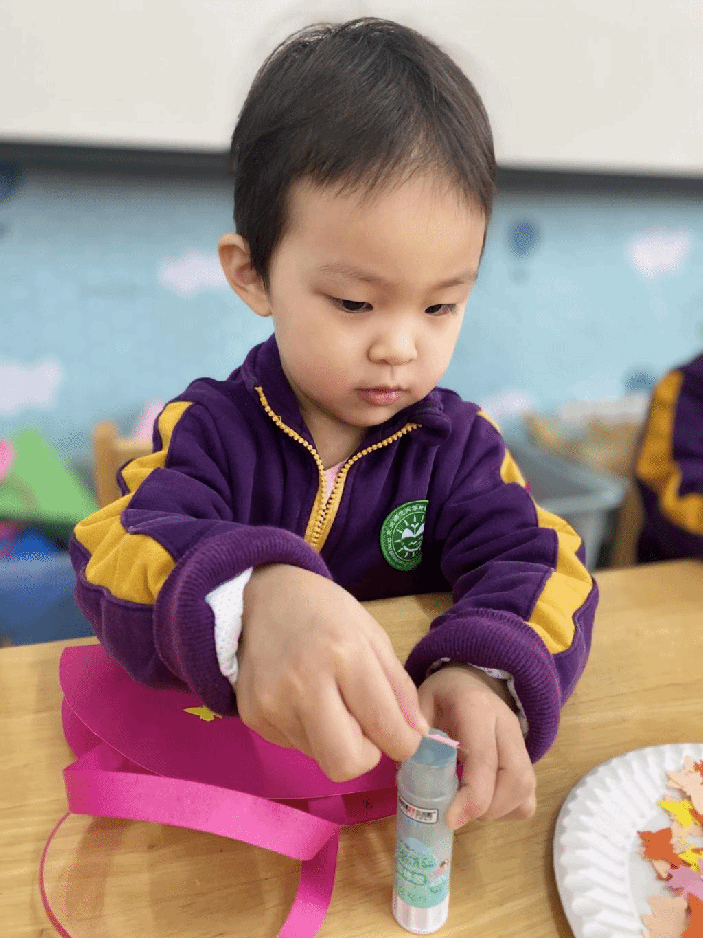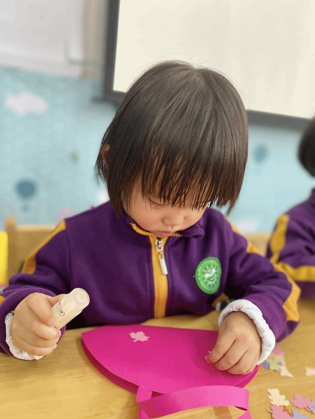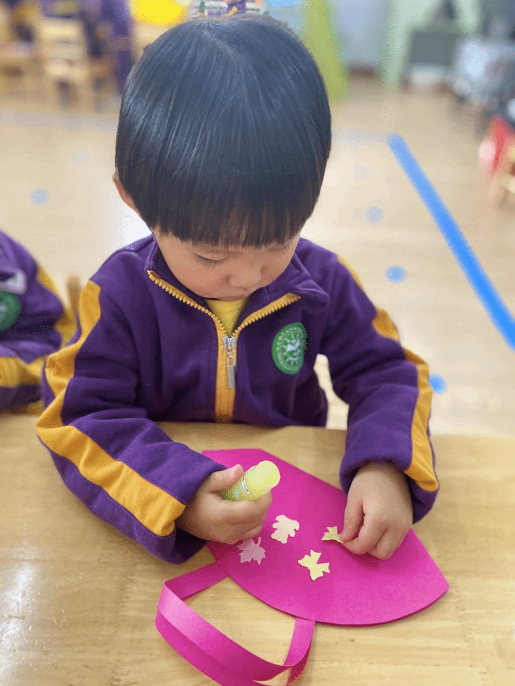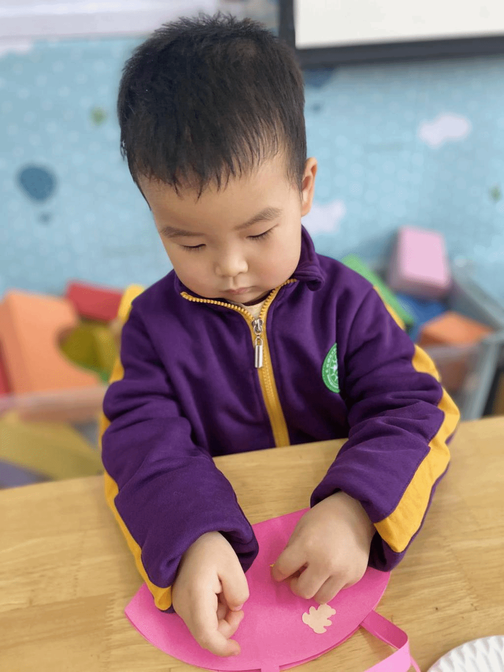 瞧,宝贝们那专注的眼神,稚嫩的小手灵活地粘贴,制作出一个个精美的手工小包,无不表达着他们对心中“女神”们真挚的感恩之情。