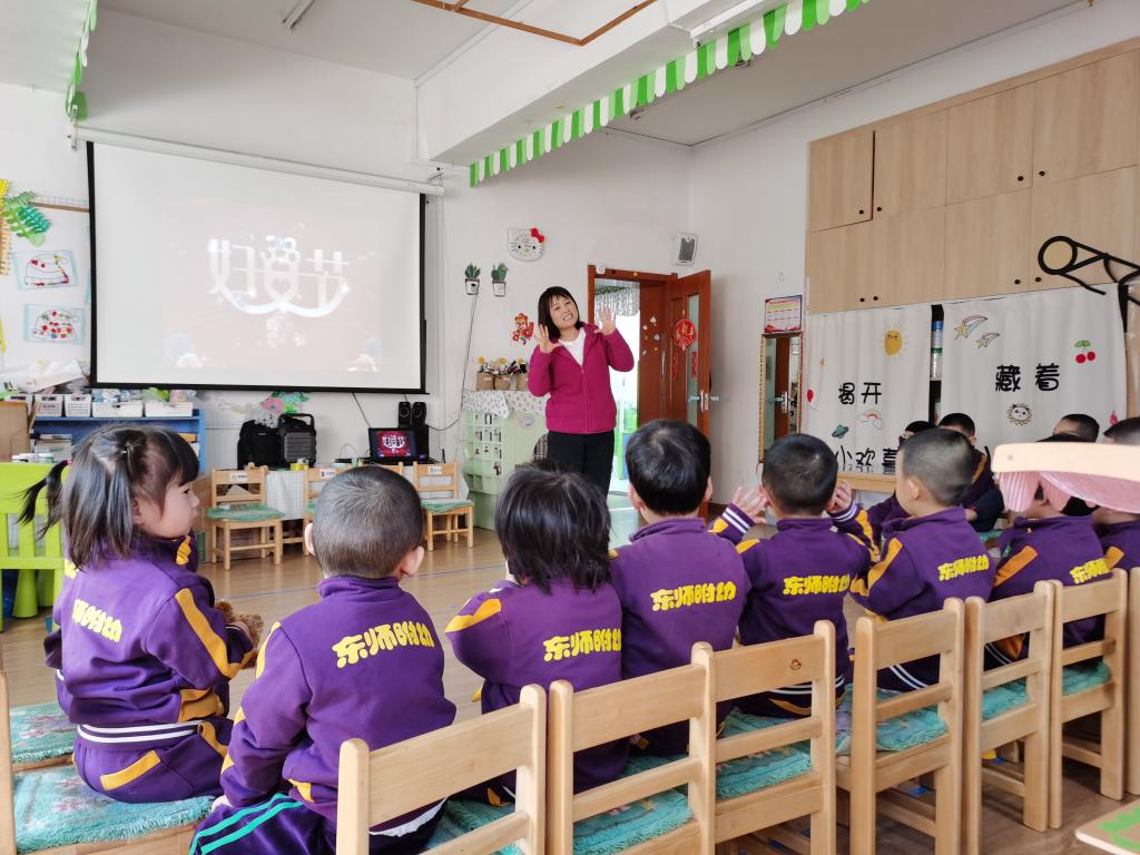 孩子们也在手指操游戏中学会用请坐、捶背的方式回报妈妈,表示感恩。