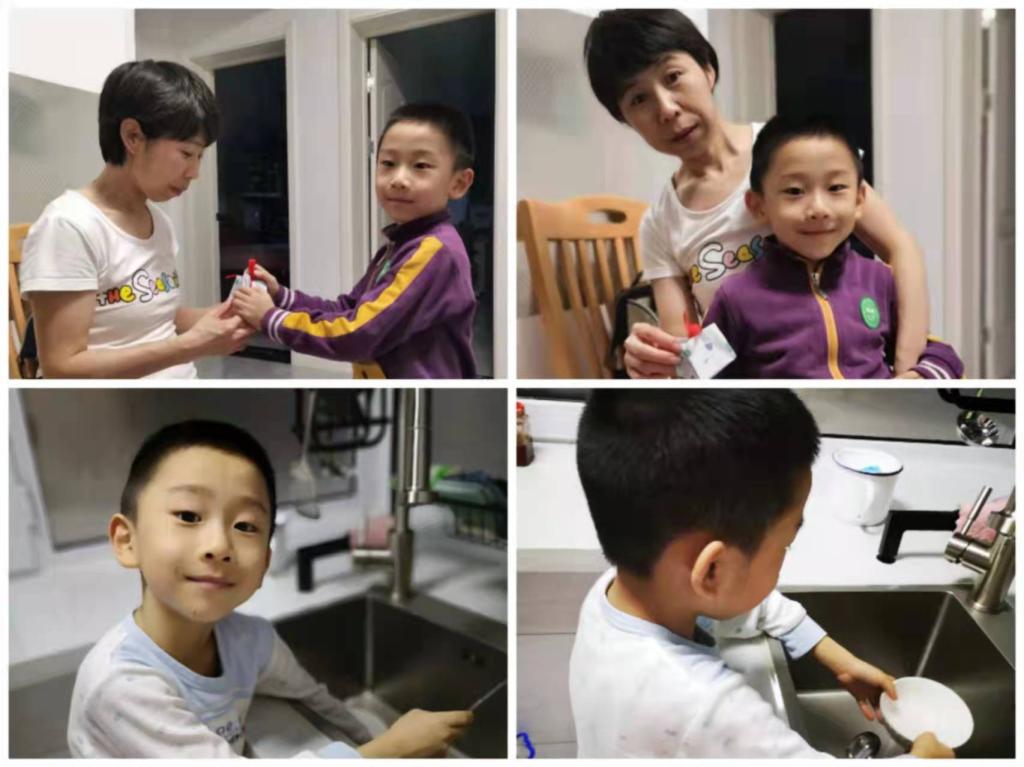 回家后,孩子们还用实际行动向自己敬爱的人表达最深的爱!给妈妈一个吻;帮妈妈拎东西;帮家人扫地;喂奶奶吃水果;为家人刷碗;给姥姥捶背……