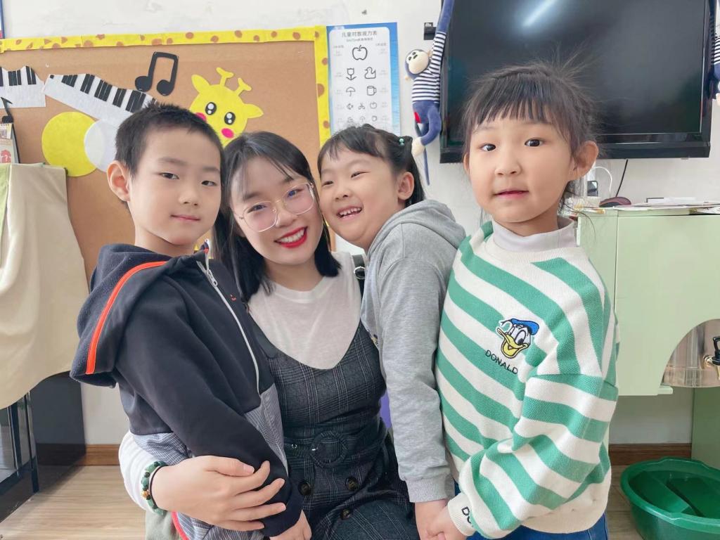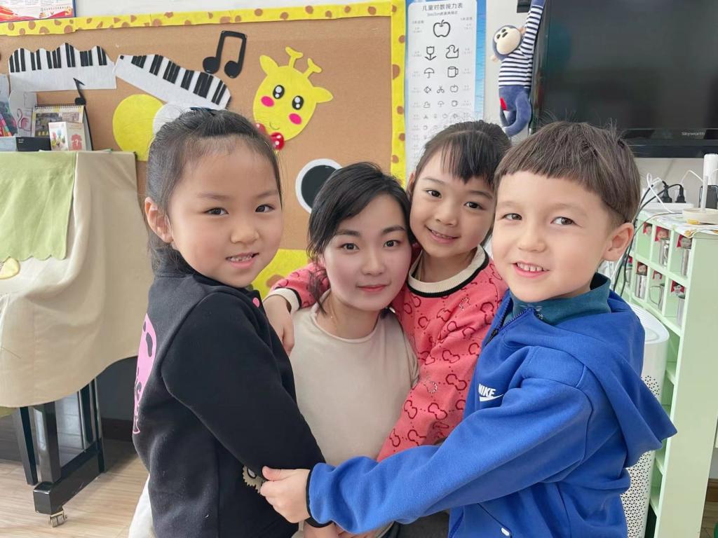 孩子们将温暖的拥抱和亲吻送给老师们,祝福老师节日快乐。