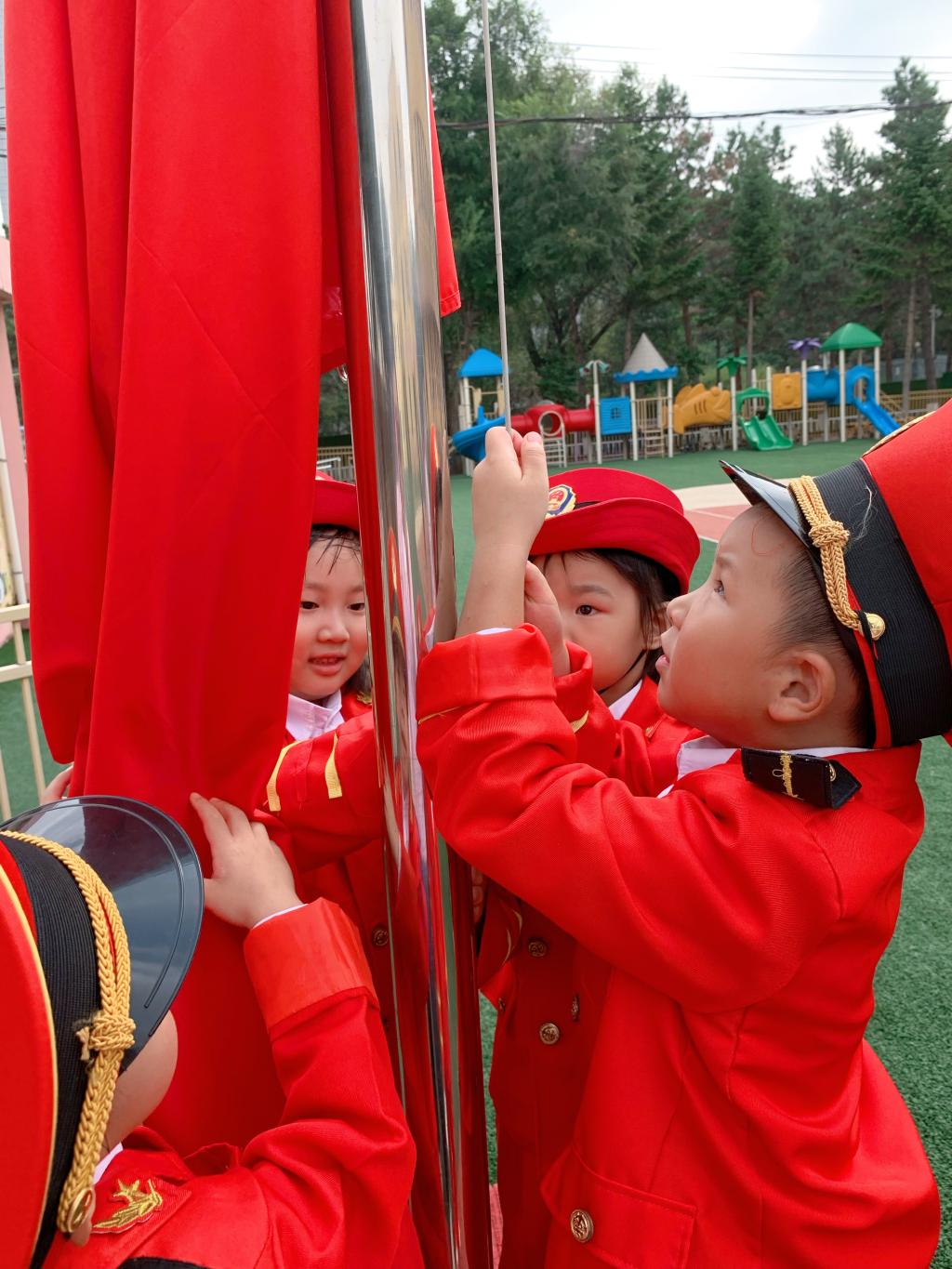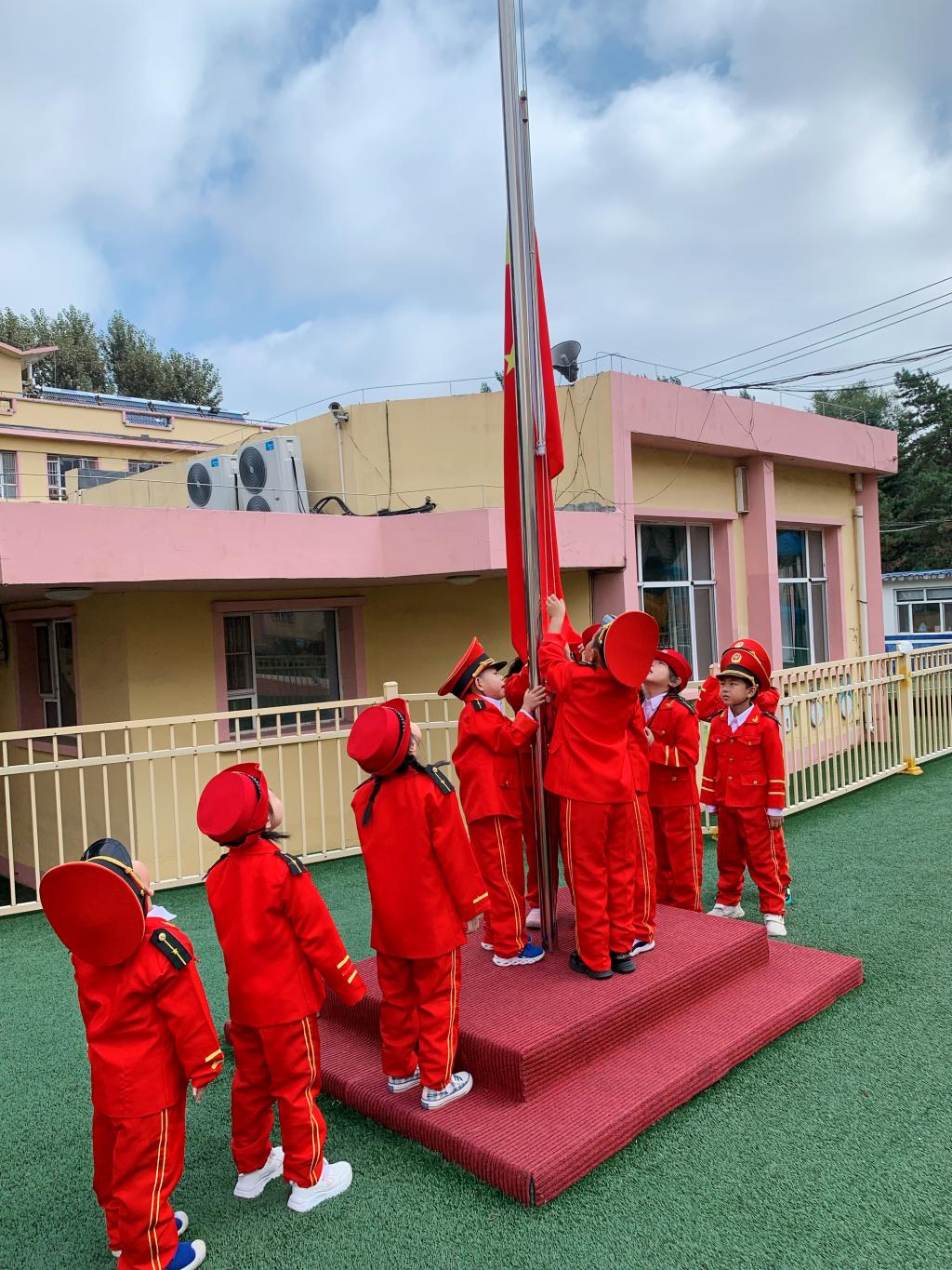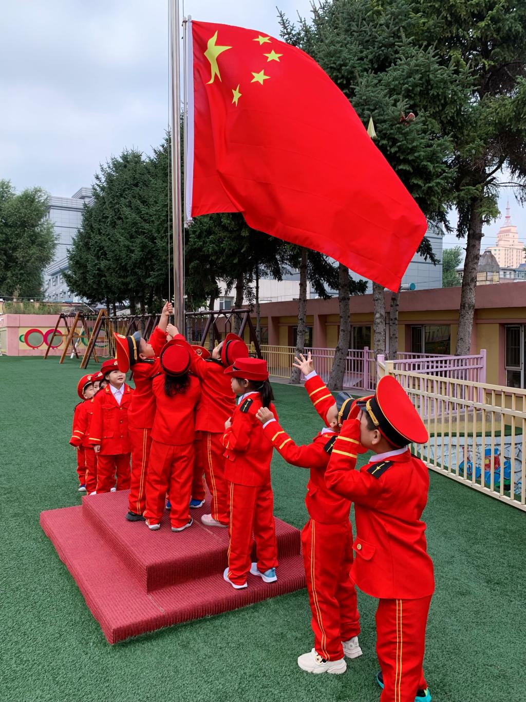 经过了一个漫长的假期,小朵朵长成了大果果。2022年8月30日,幼儿园迎来了本学期的第一次升旗仪式,果果一班的小朋友们第一次担任升旗班级。
