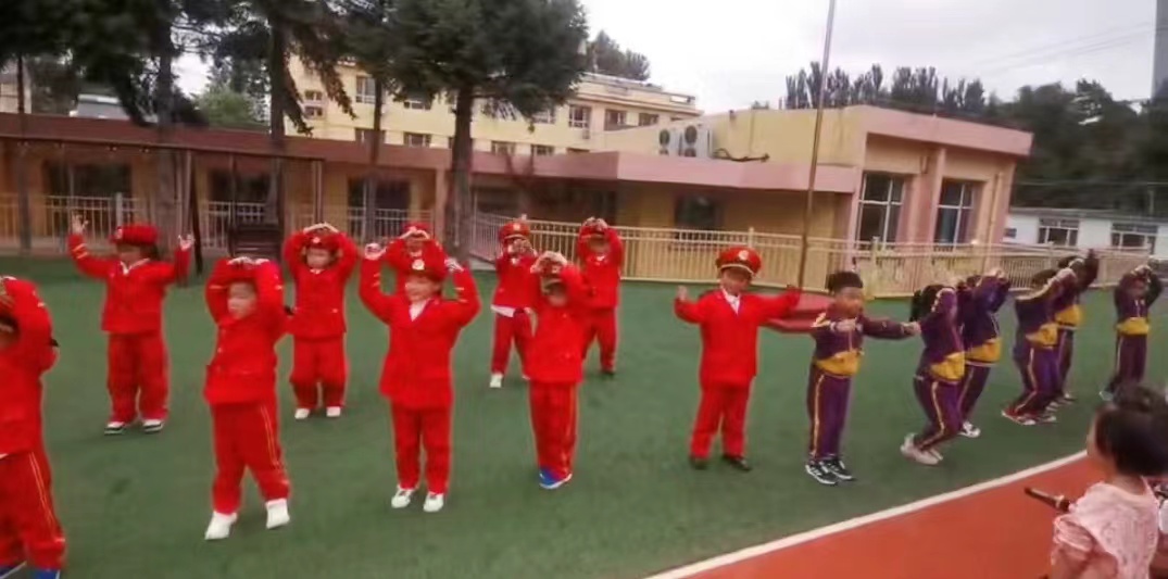 果果一班的小朋友们带来了歌舞表演《彩虹的梦想》。宝贝们用优美的舞姿向祖国妈妈献礼。