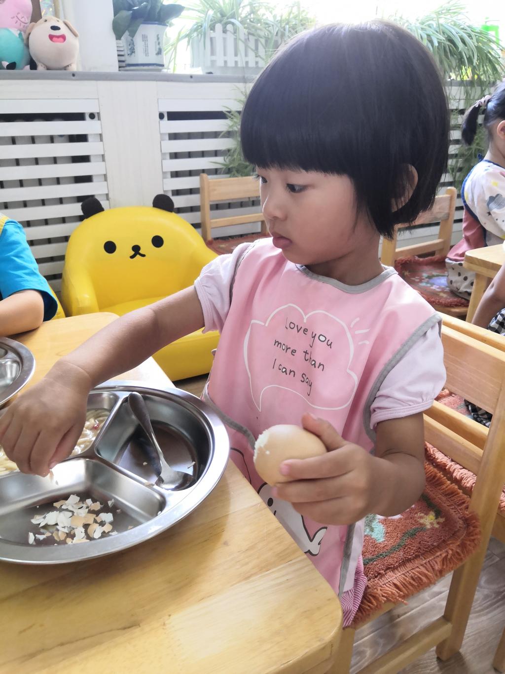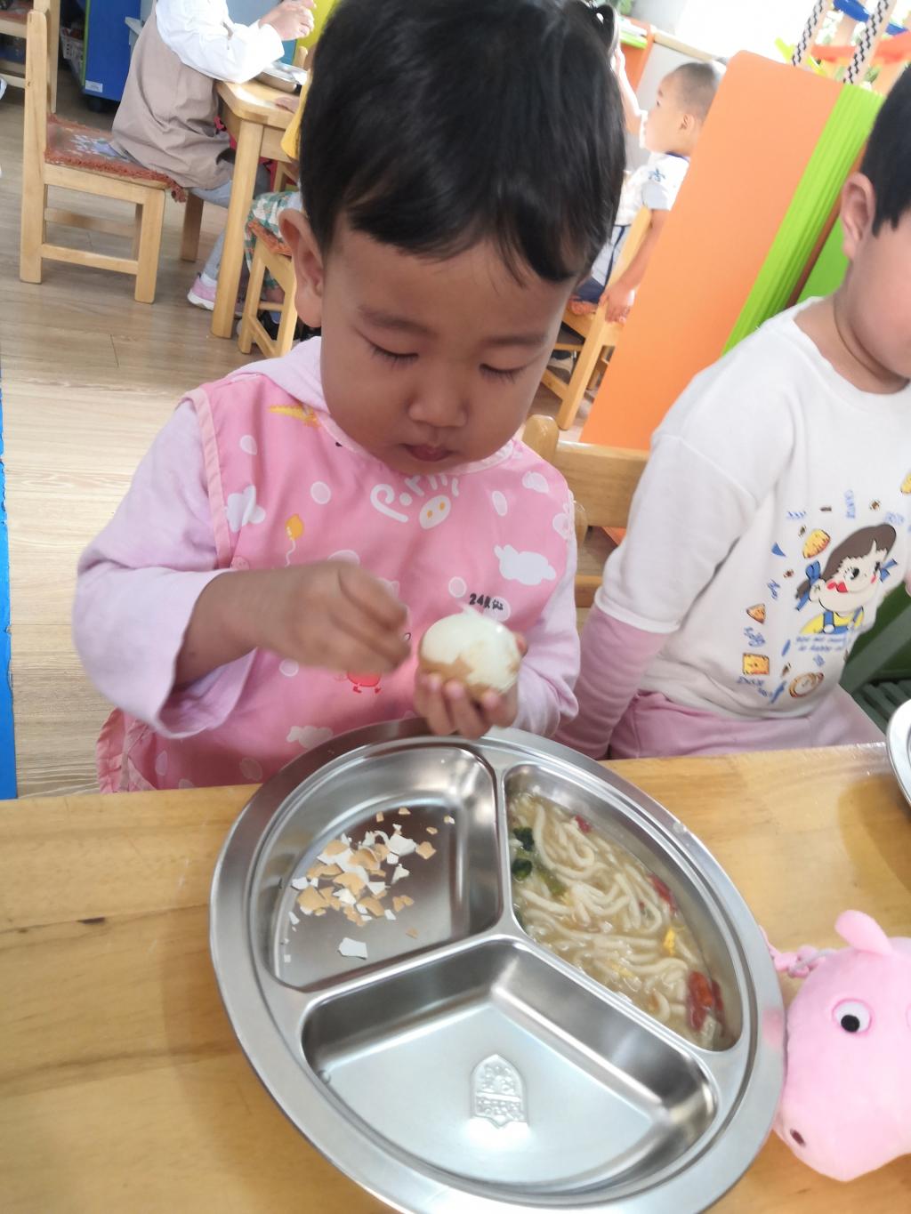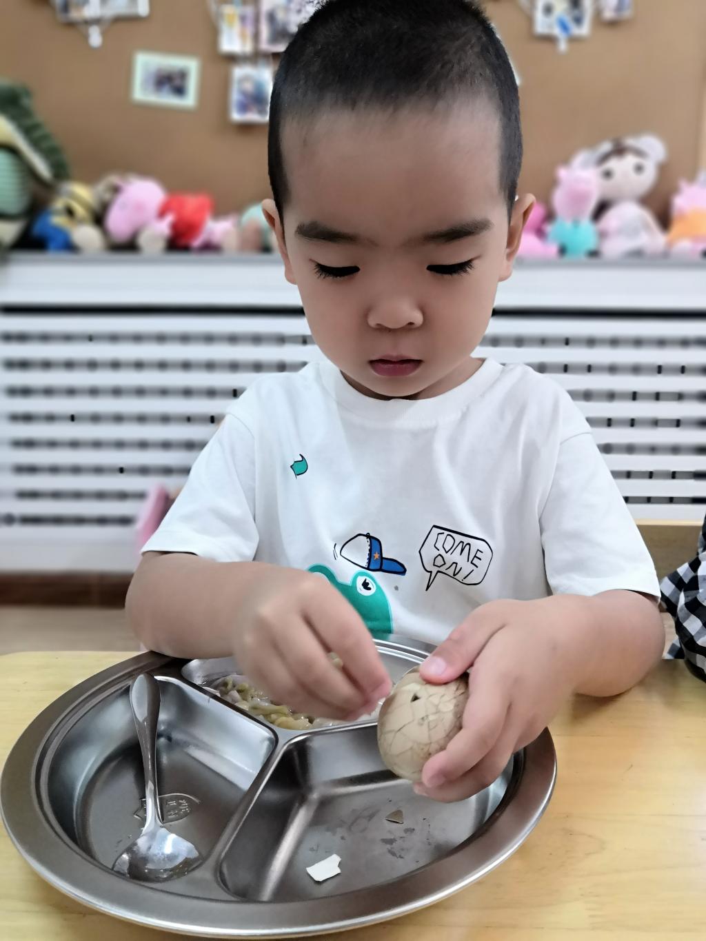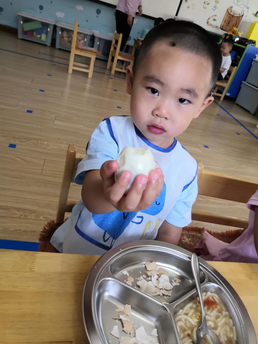 豆豆们长成了小苗苗,开学第一天我们就学习了新本领——剥鸡蛋,自己剥的鸡蛋吃起来也香香的。