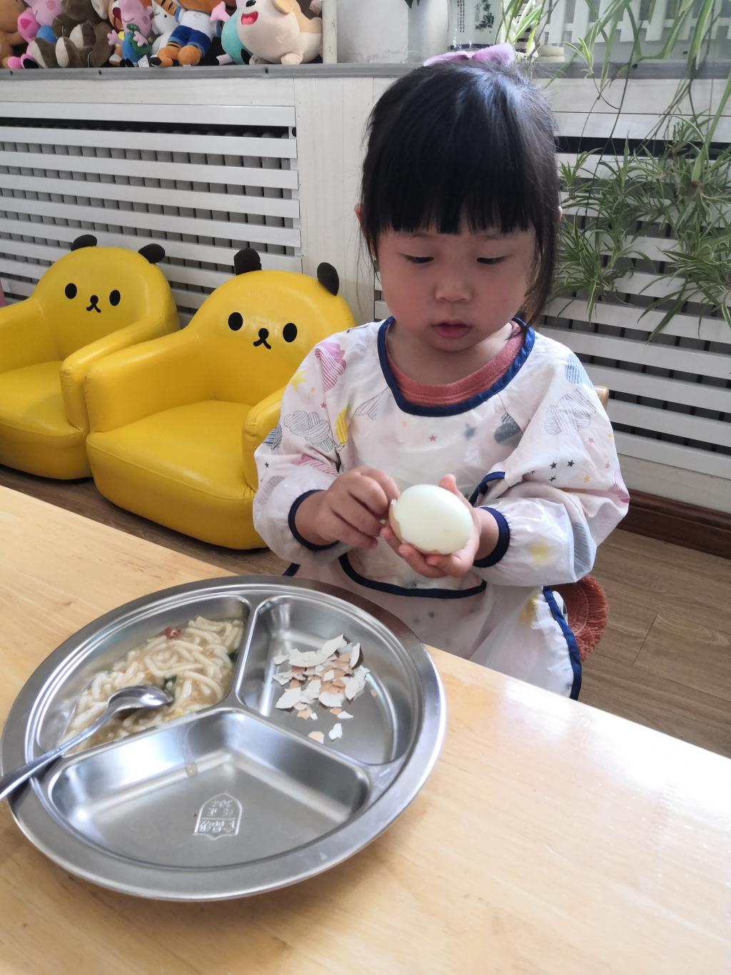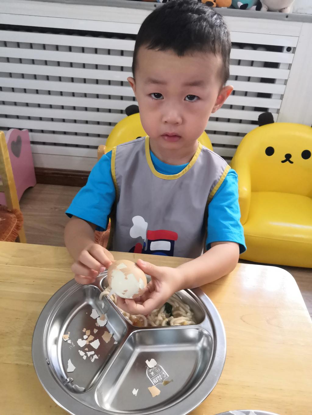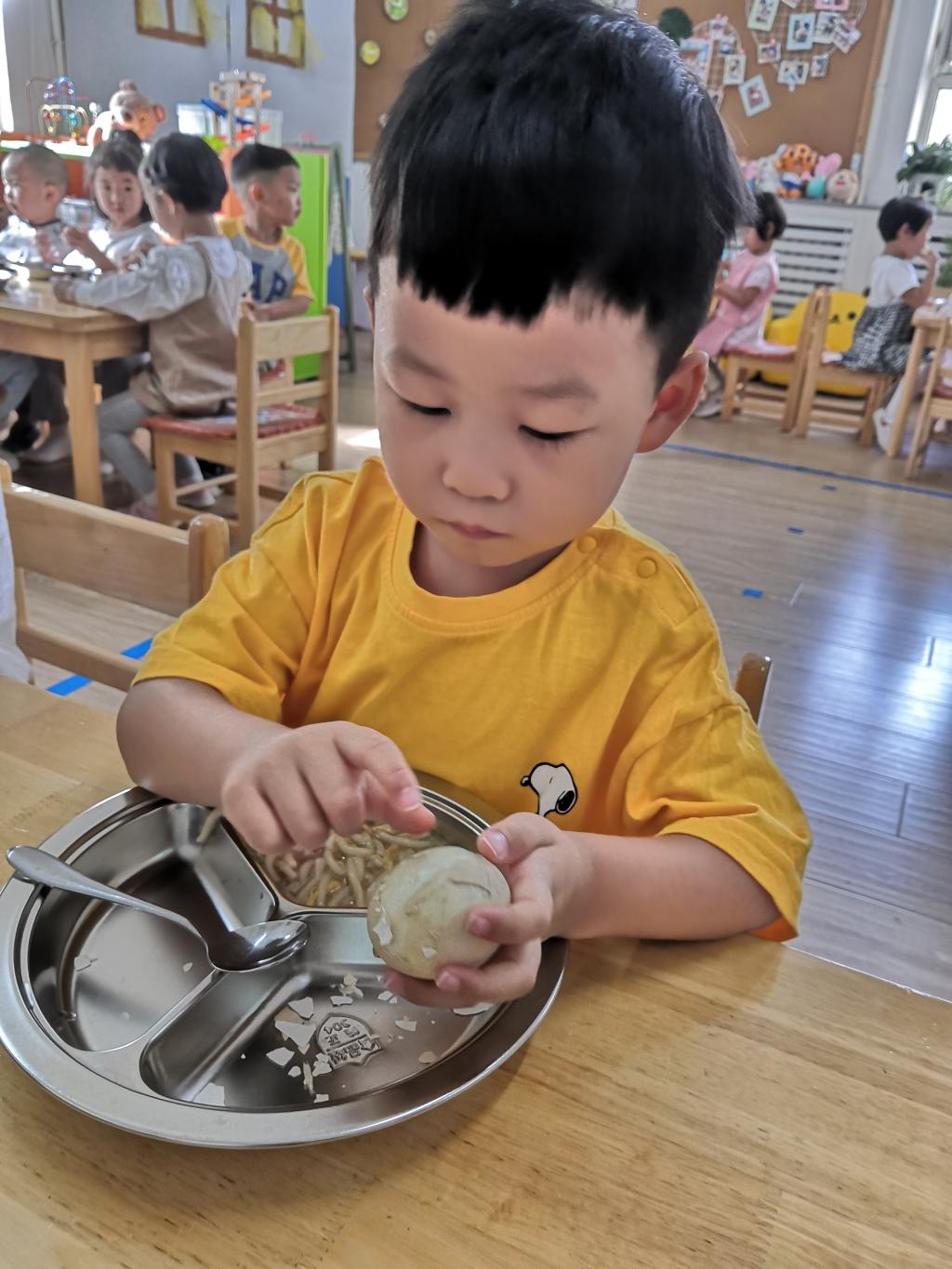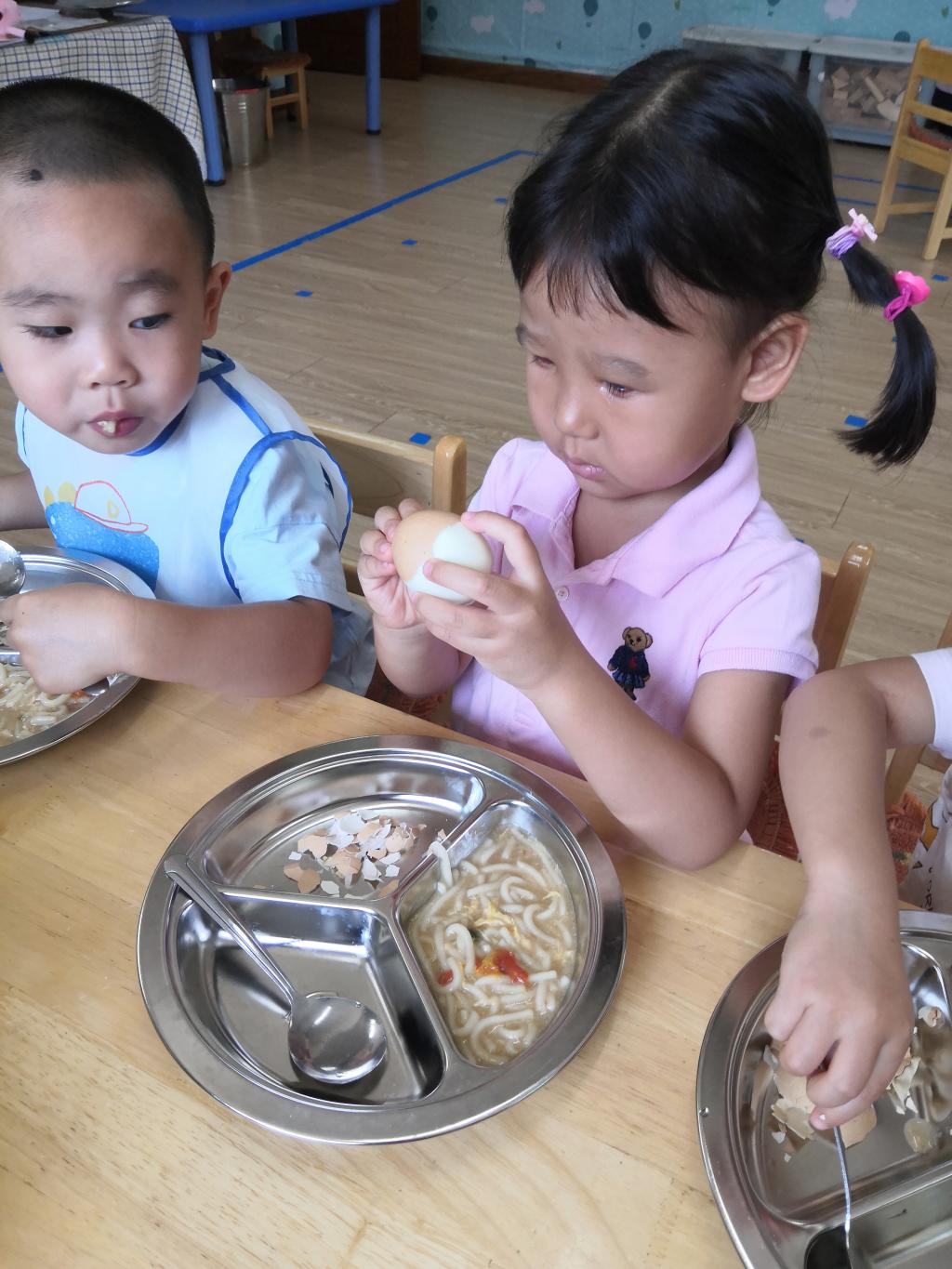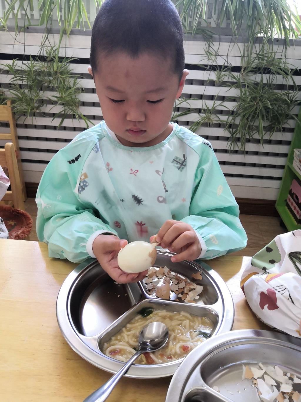 豆豆们长成了小苗苗,开学第一天我们就学习了新本领——剥鸡蛋,自己剥的鸡蛋吃起来也香香的。