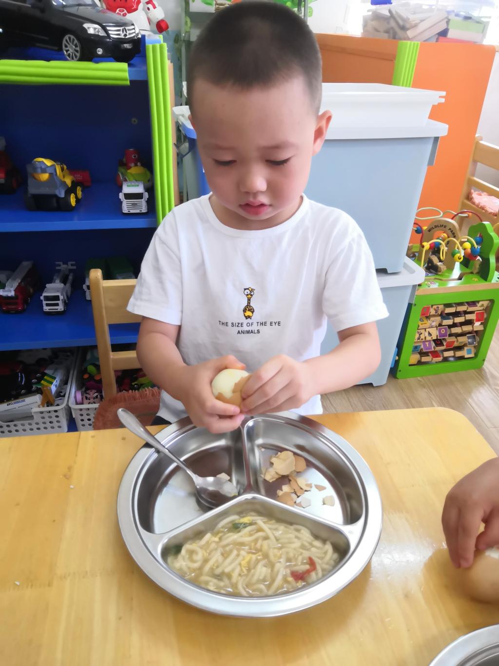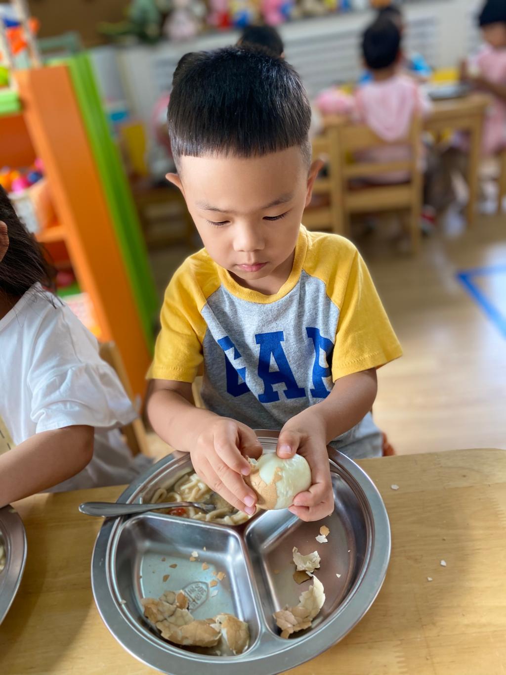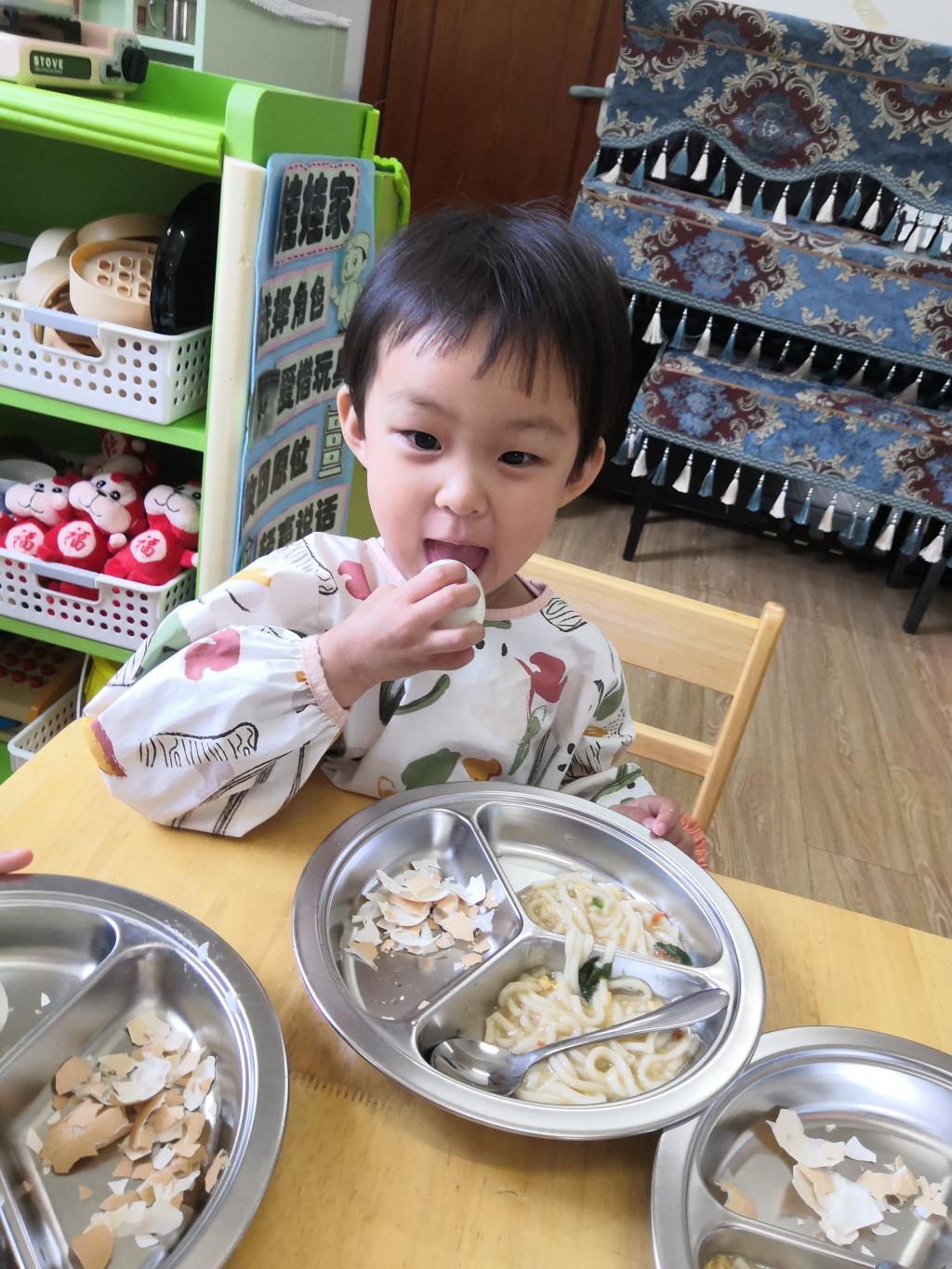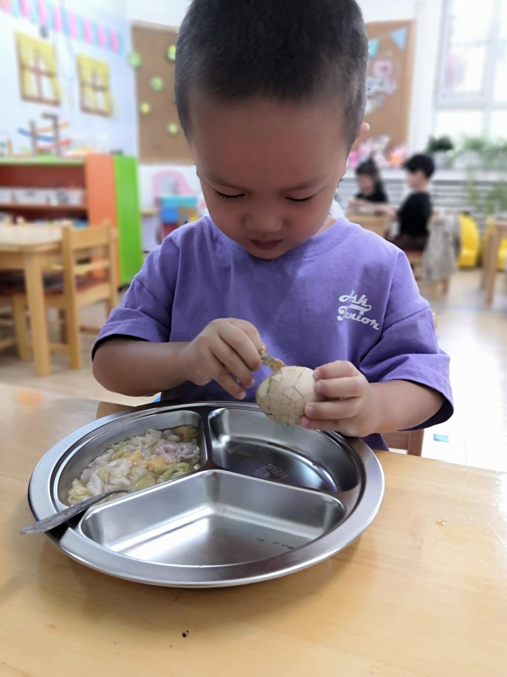 豆豆们长成了小苗苗,开学第一天我们就学习了新本领——剥鸡蛋,自己剥的鸡蛋吃起来也香香的。
