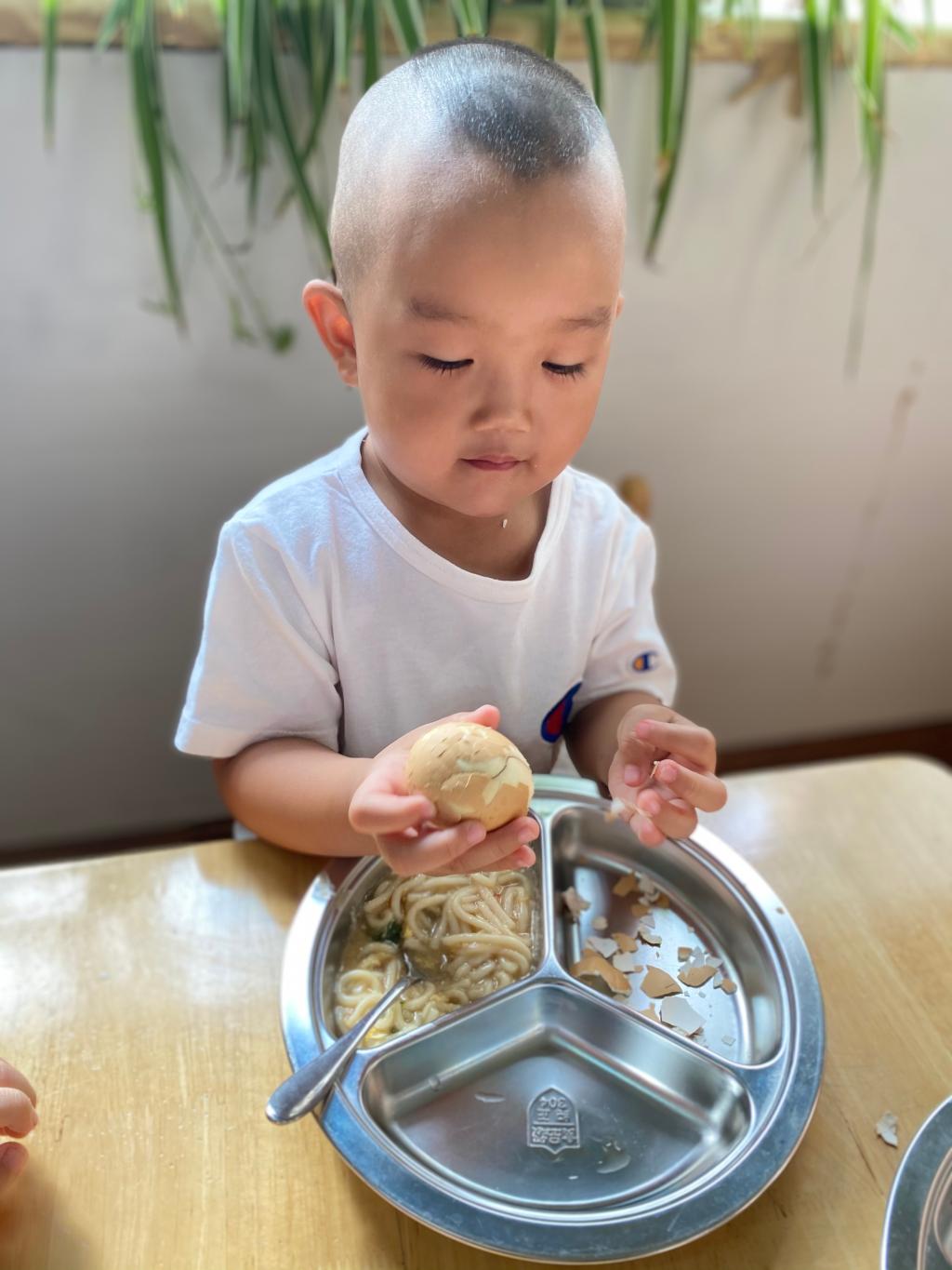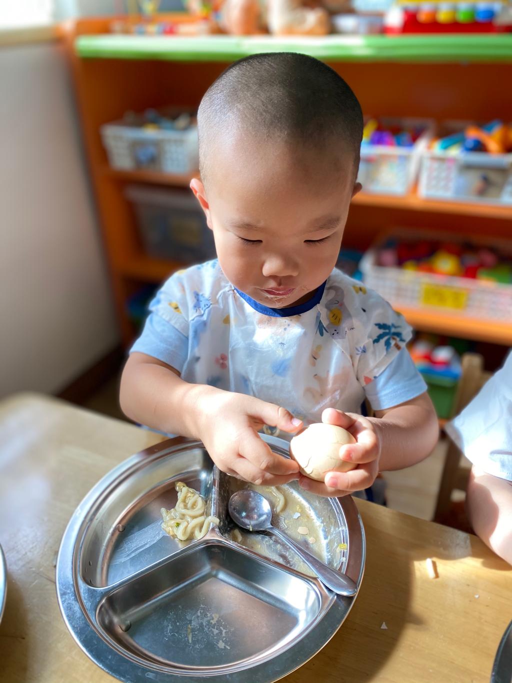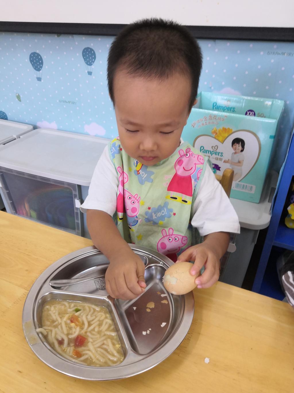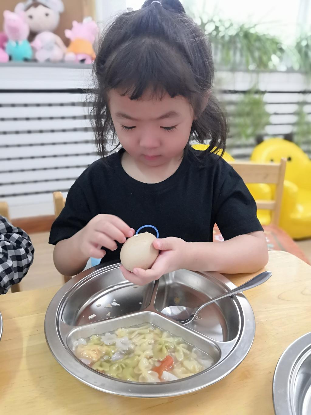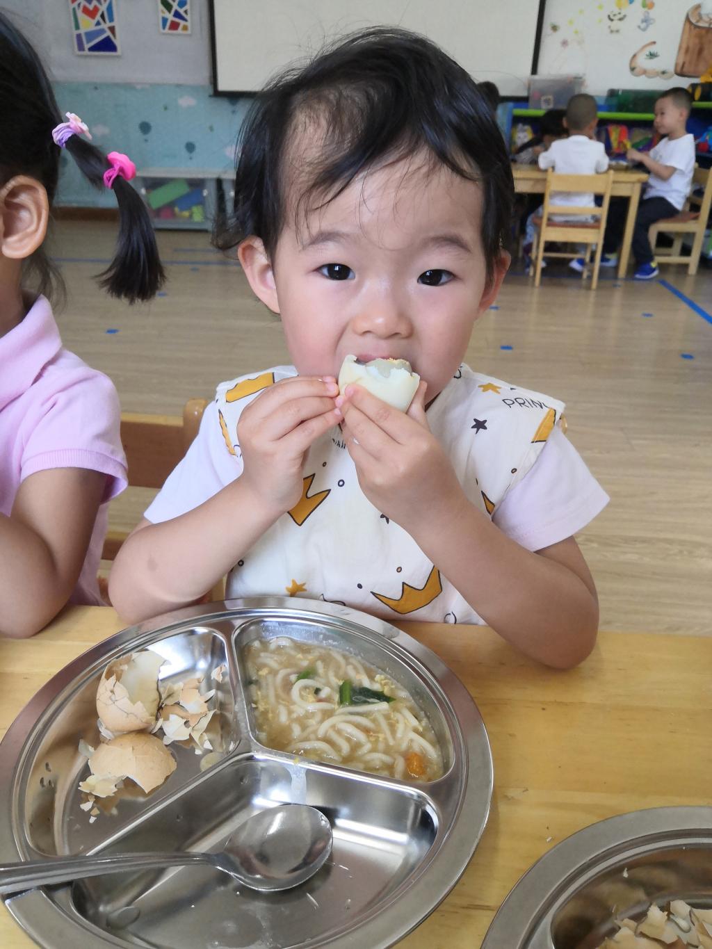 豆豆们长成了小苗苗,开学第一天我们就学习了新本领——剥鸡蛋,自己剥的鸡蛋吃起来也香香的。