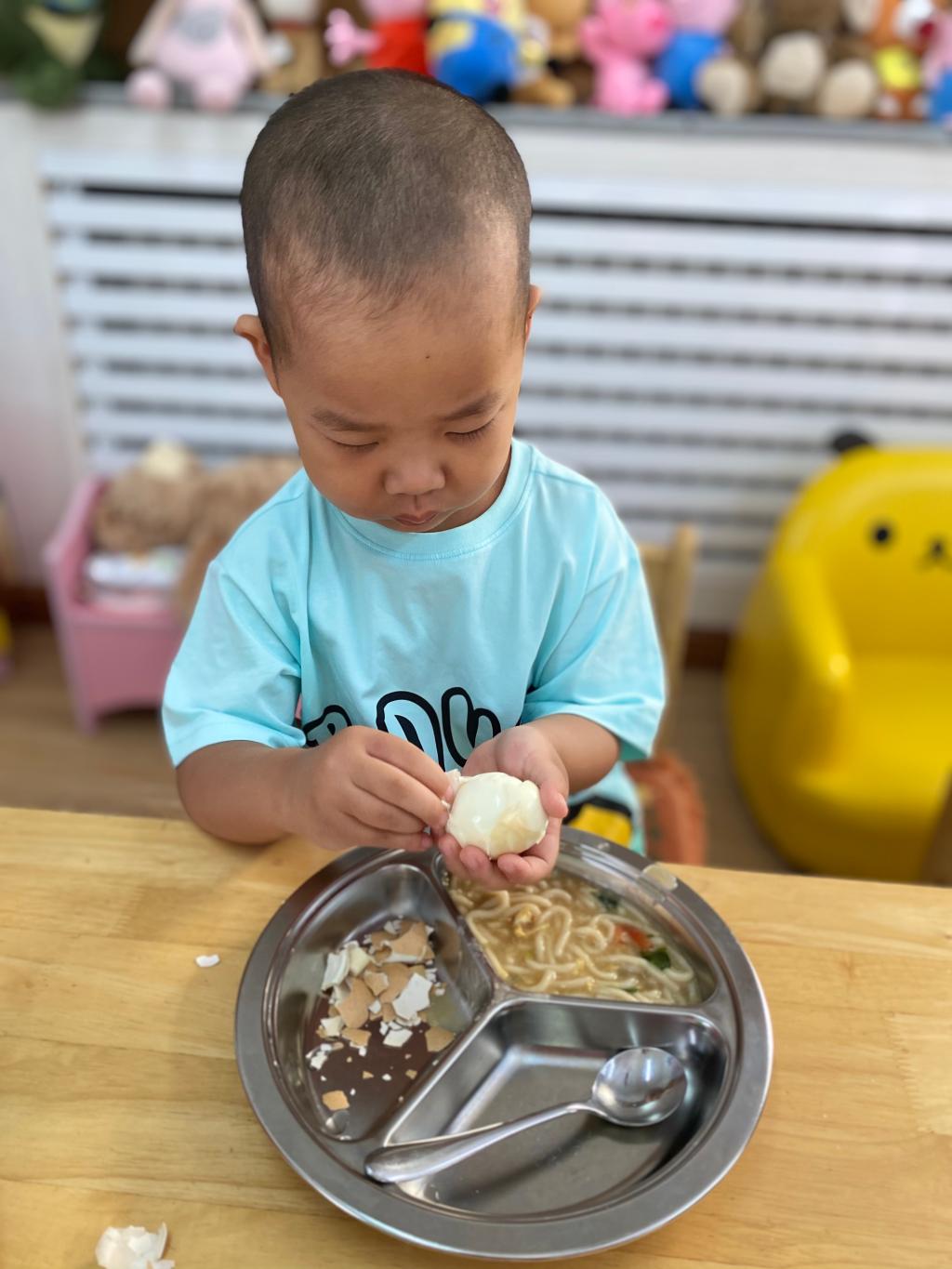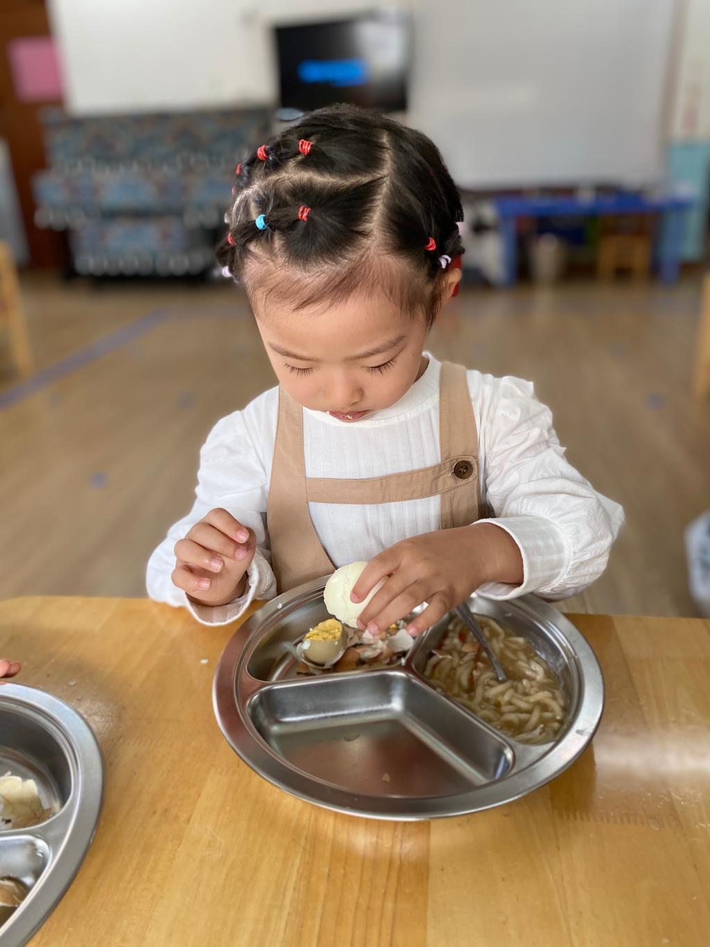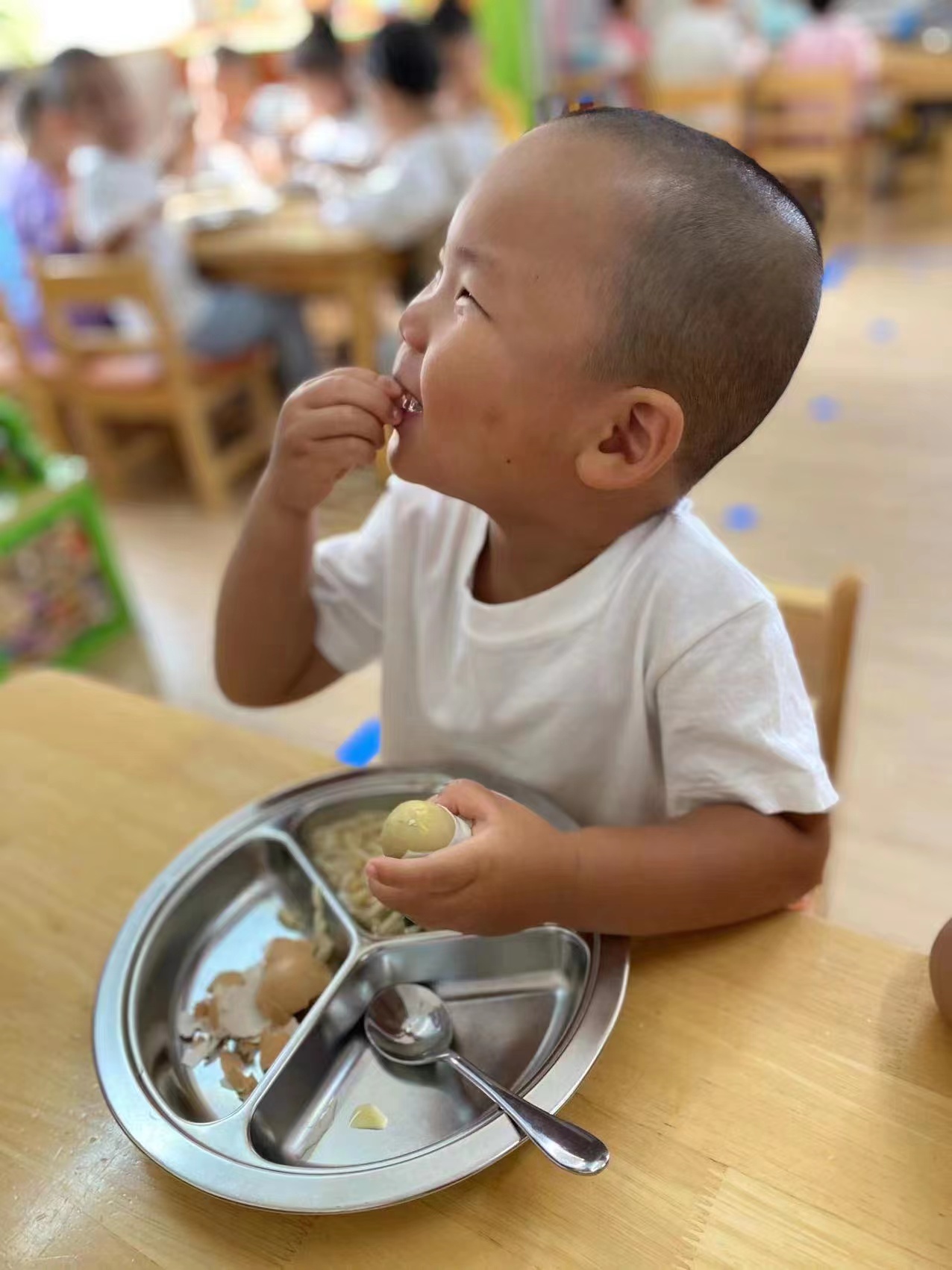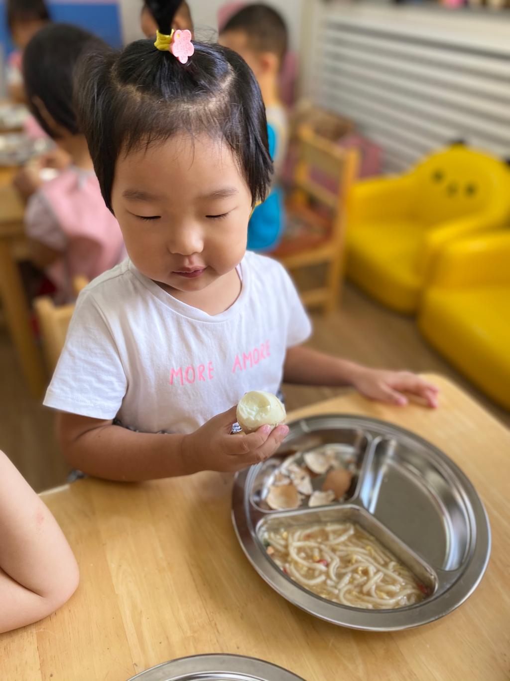 豆豆们长成了小苗苗,开学第一天我们就学习了新本领——剥鸡蛋,自己剥的鸡蛋吃起来也香香的。