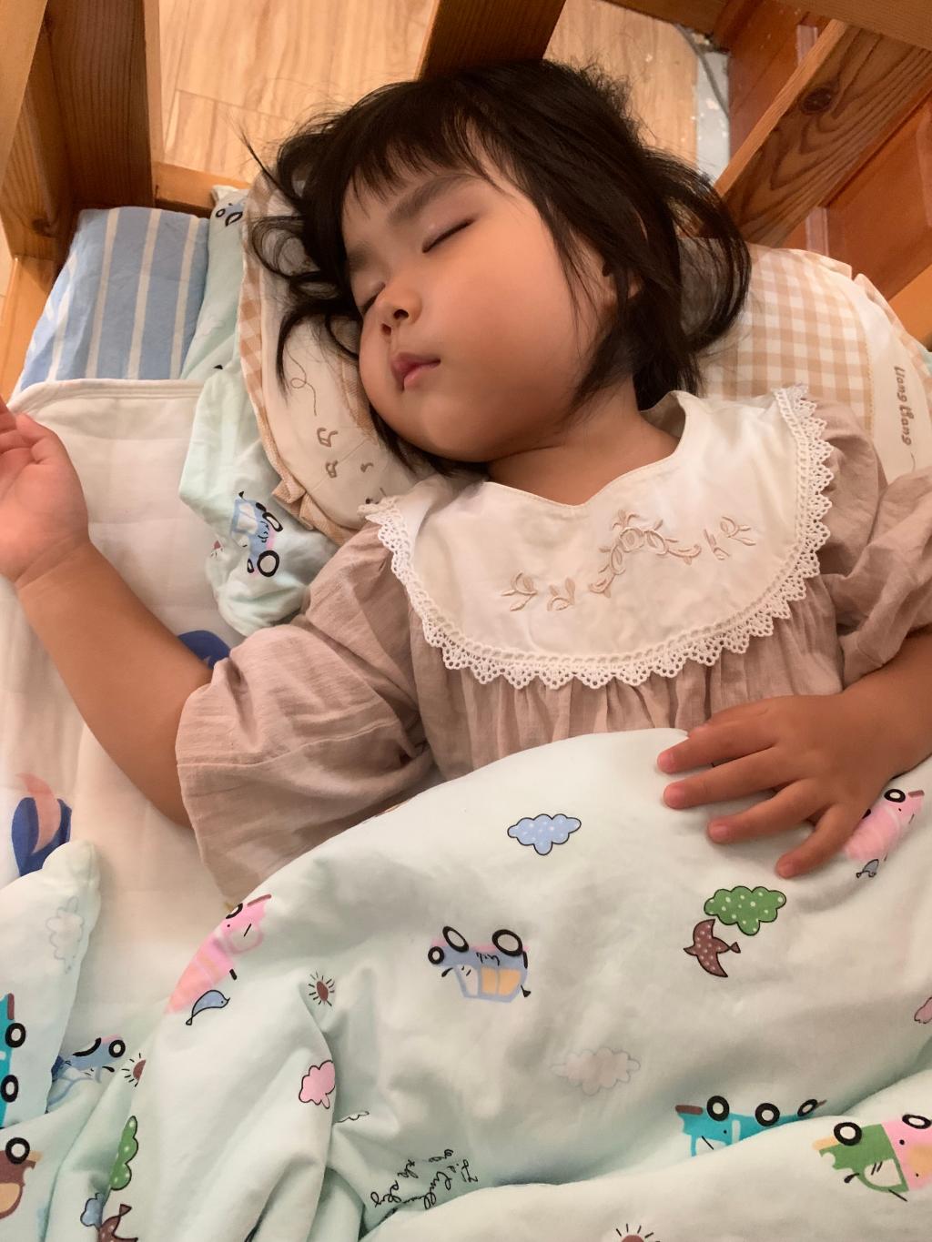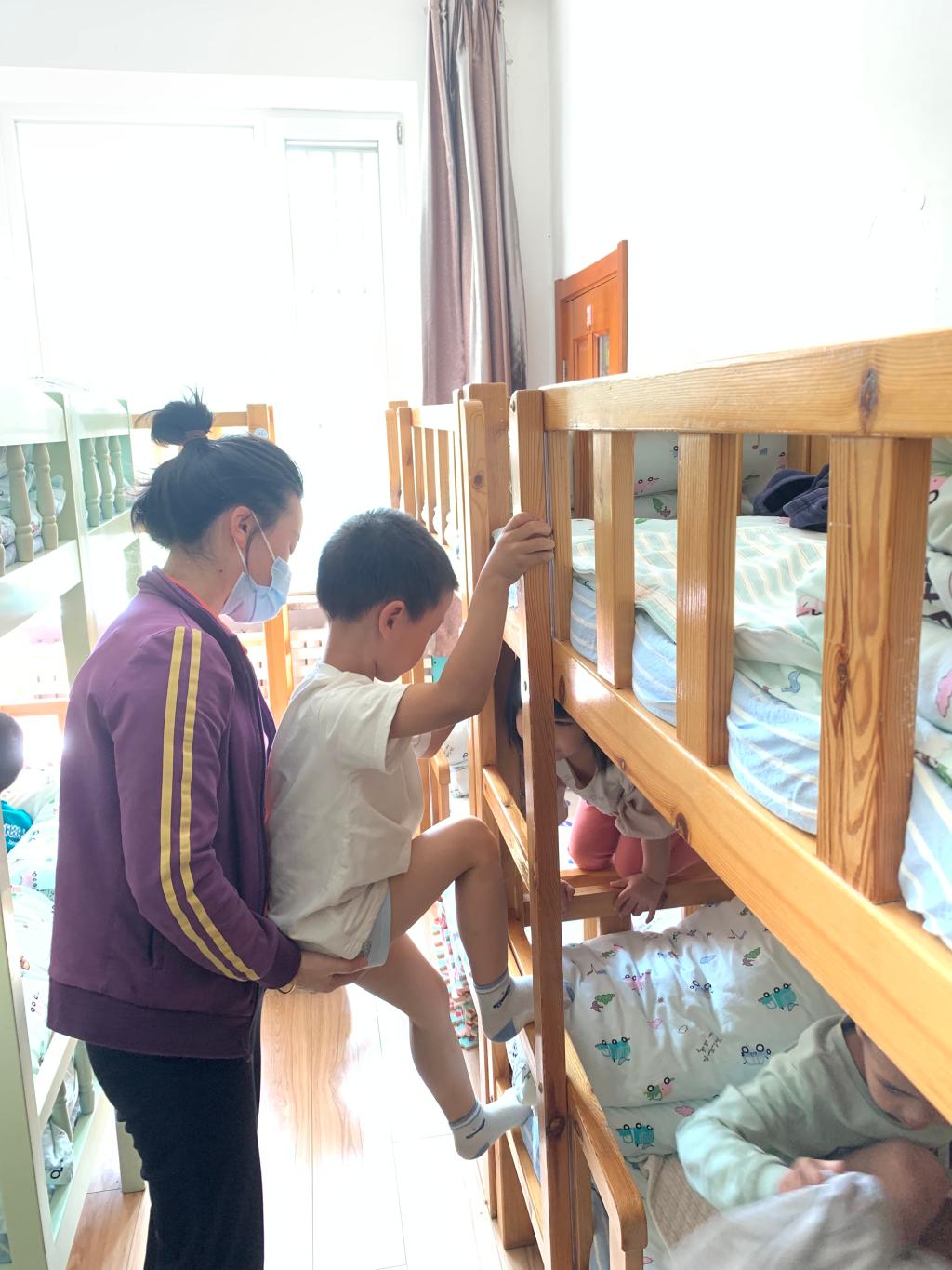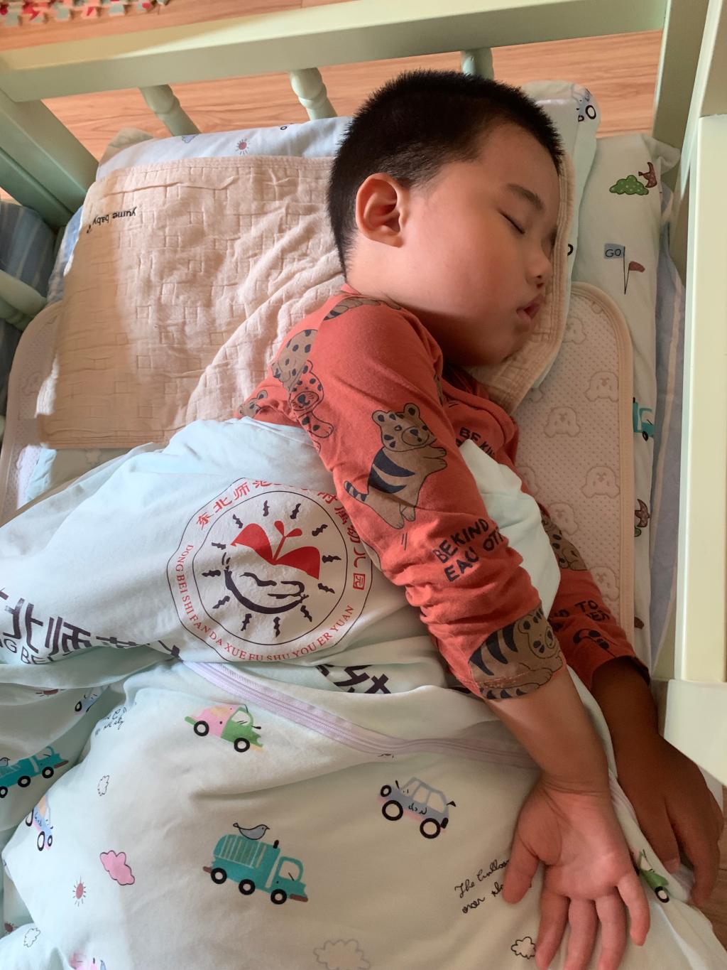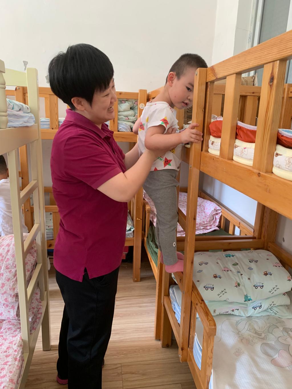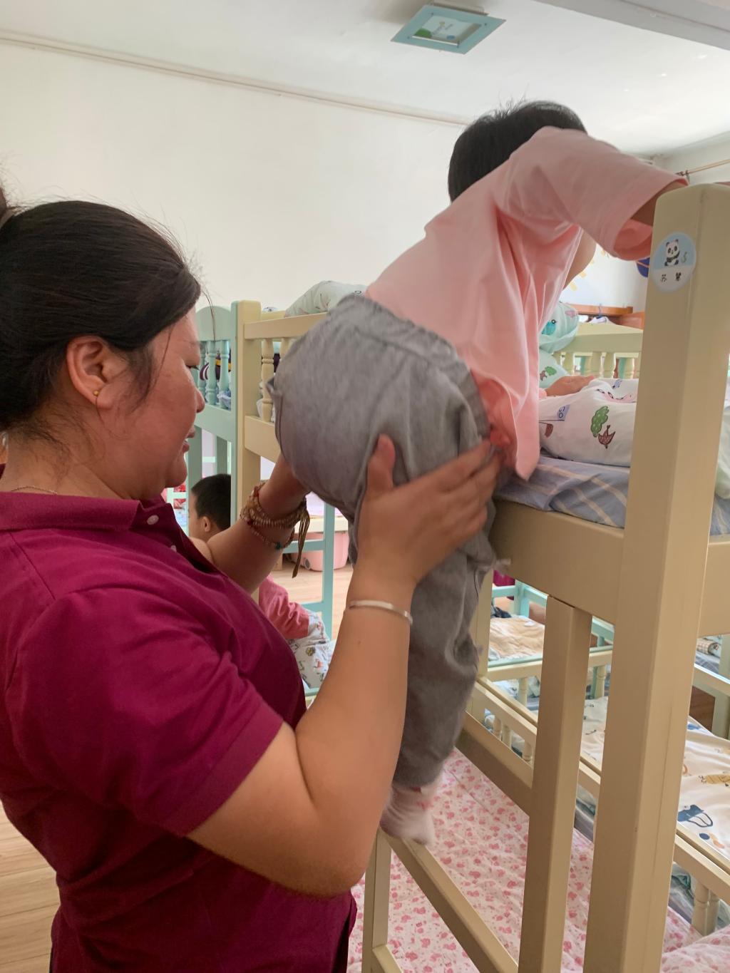宝贝们安静的躺着等待着好梦的来临。老师则时刻关注着每一个孩子,帮他们盖好被子。终于睡着了,此刻的休息室里只剩下甜甜的鼾声和老师们巡视的轻轻脚步声!