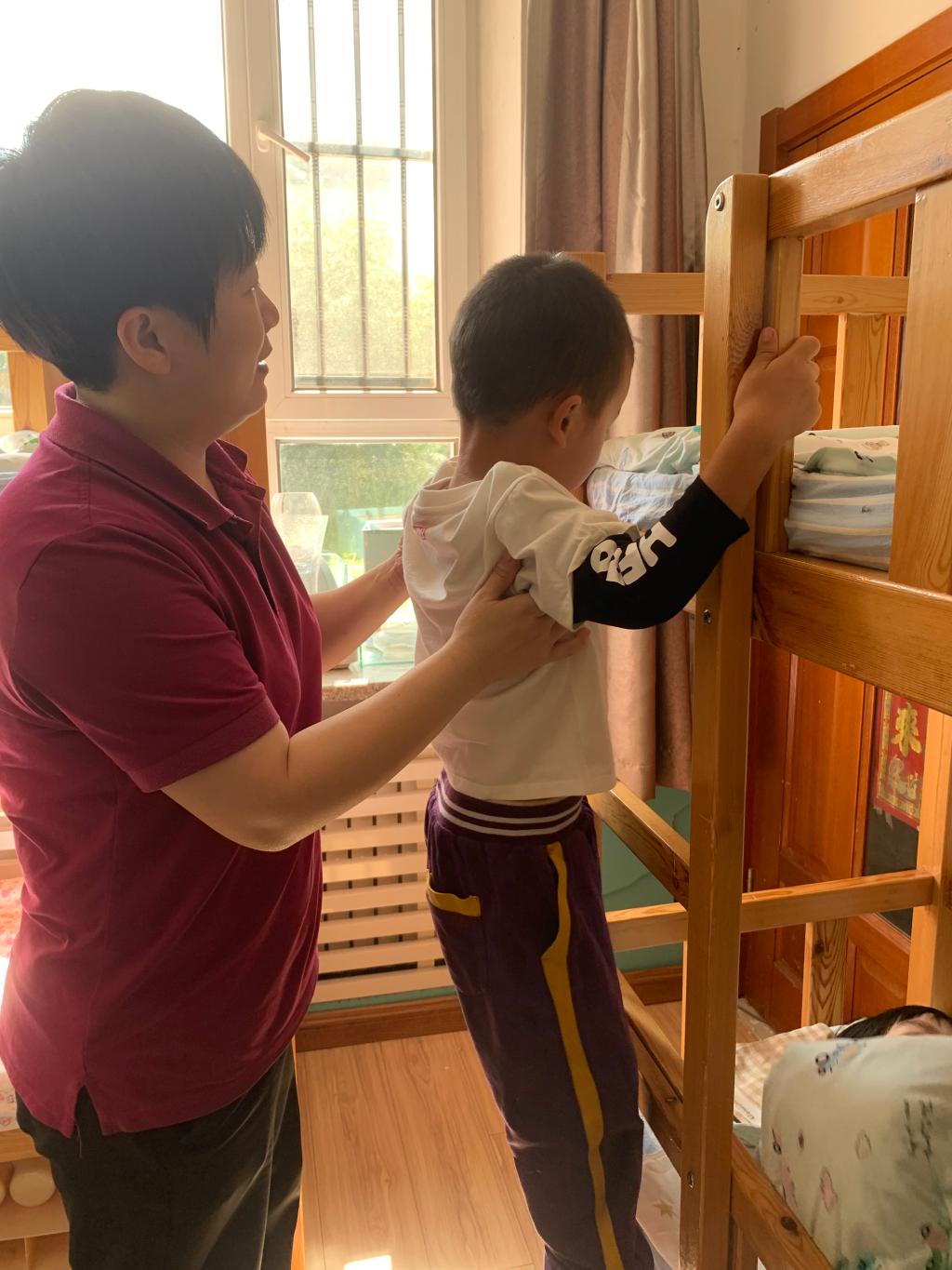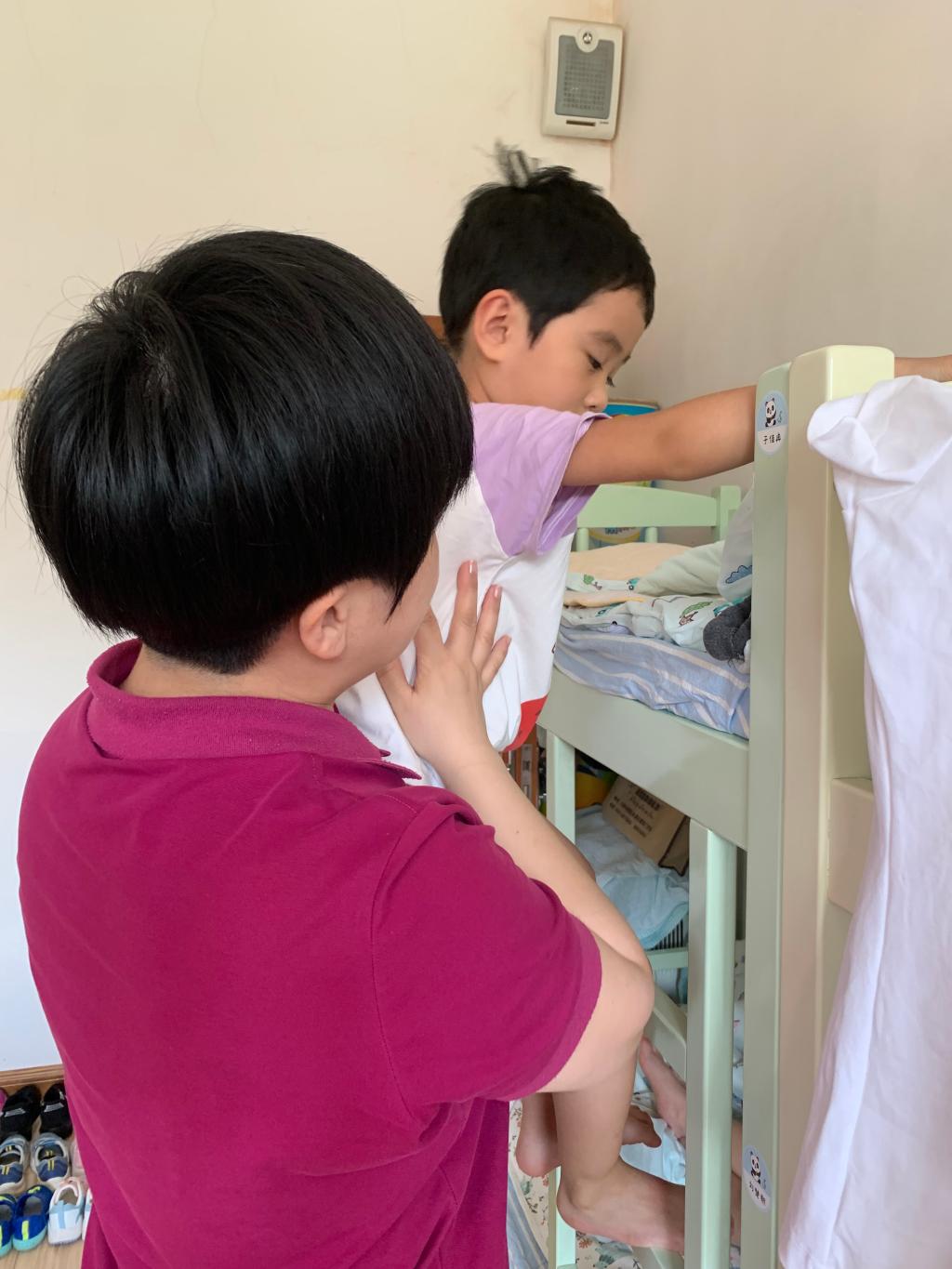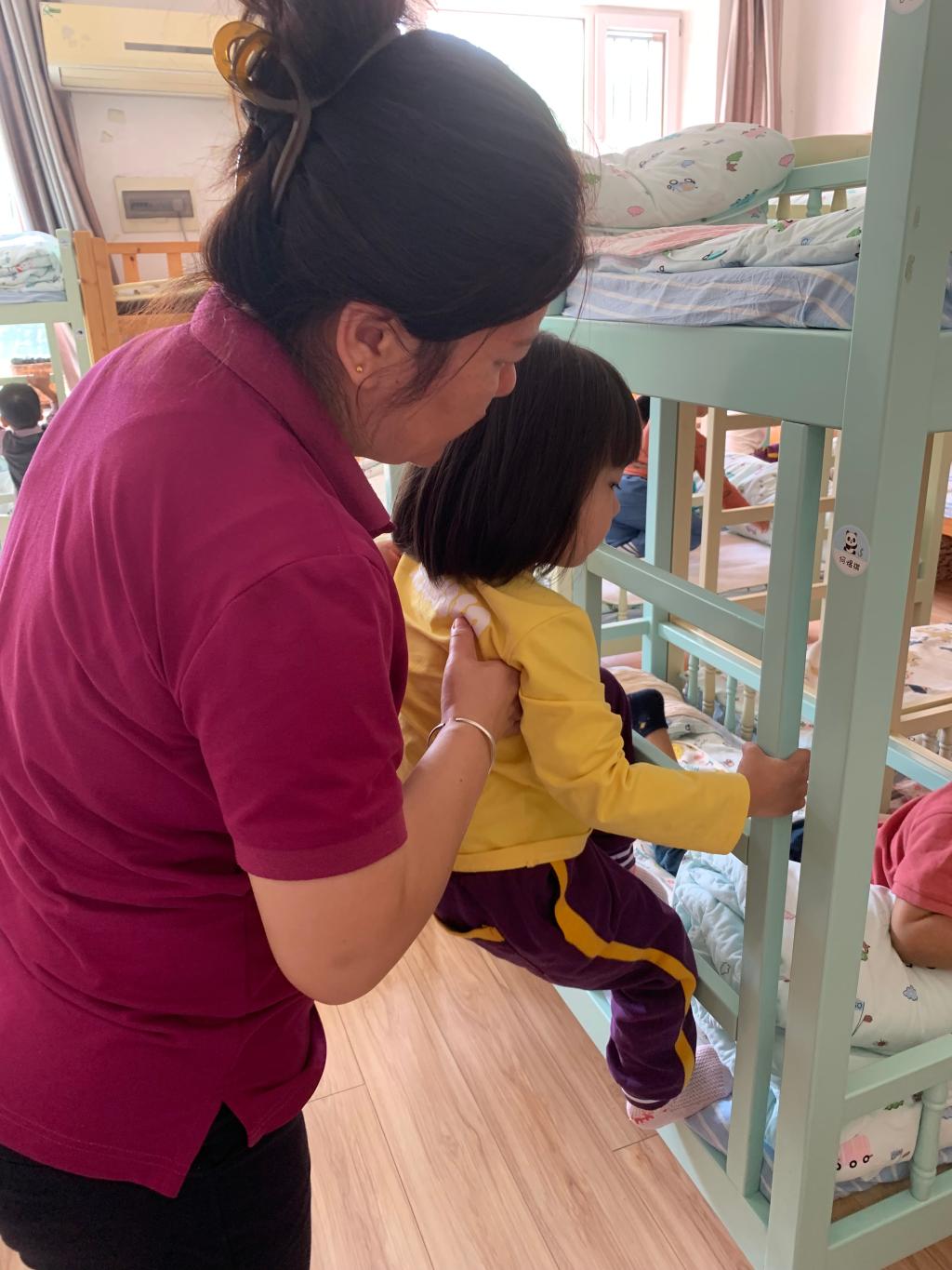 宝贝们有序的排排队进入休息室,将自己的鞋子摆放整齐,找到自己的床等待着老师的帮助,老师耐心的引导幼儿如何上床,宝贝们也很聪明,很快的就能学到新的本领。