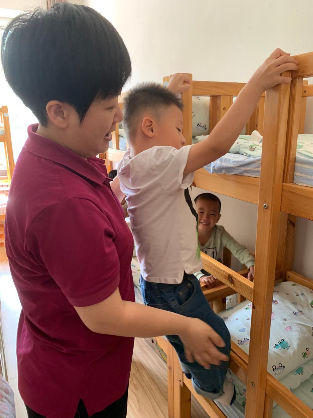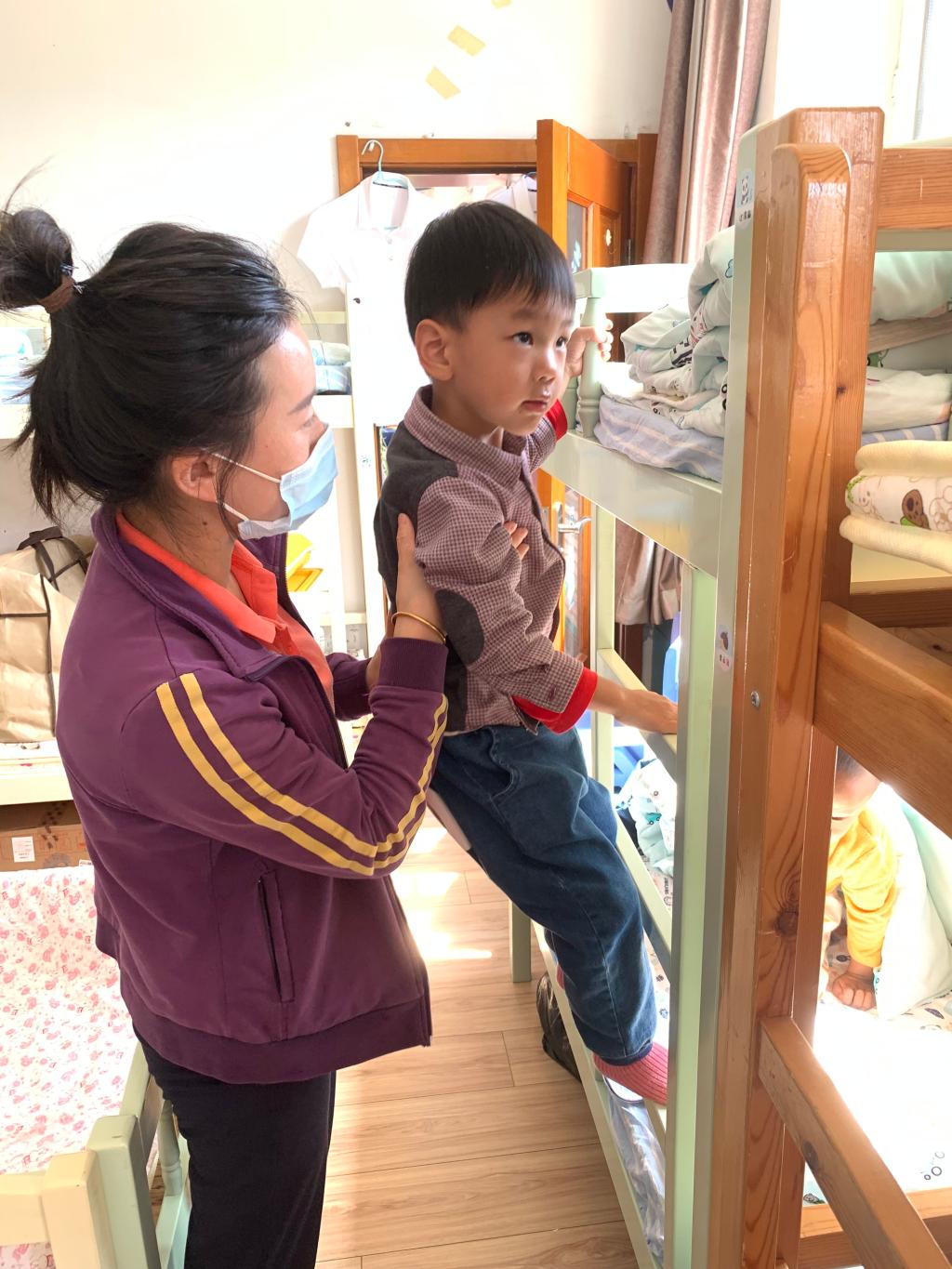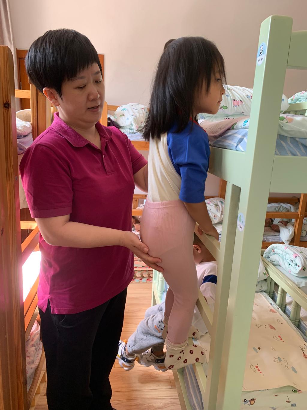 宝贝们有序的排排队进入休息室,将自己的鞋子摆放整齐,找到自己的床等待着老师的帮助,老师耐心的引导幼儿如何上床,宝贝们也很聪明,很快的就能学到新的本领。