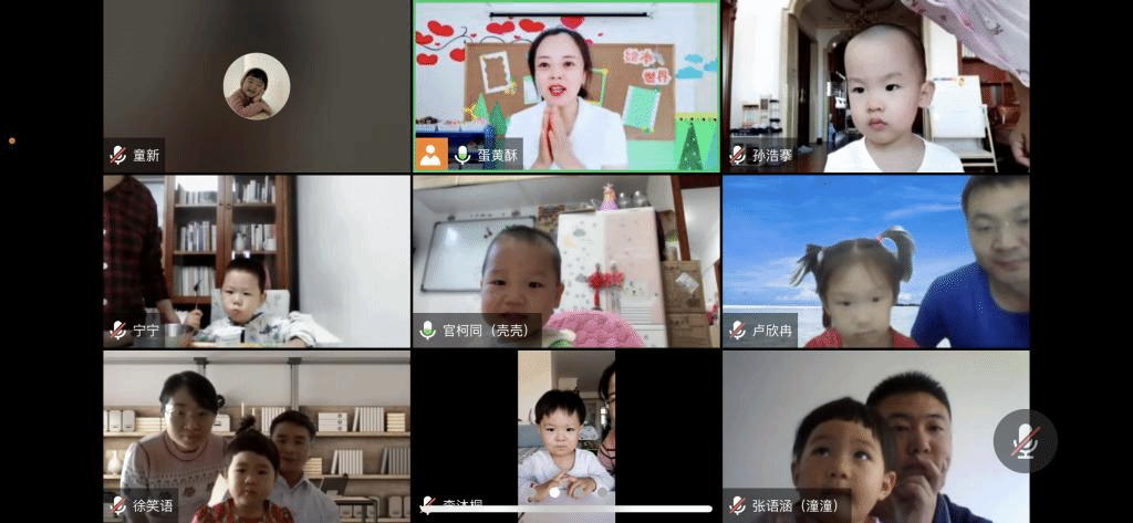会议结束后老师们通过腾讯会议的方式和豆豆四班的小朋友们第一次见面了!宝贝们在家长的陪同下和老师做着律动,秩序井然的和小伙伴们问好。孩子们活泼可爱的笑脸成了屏幕上最漂亮的风景。