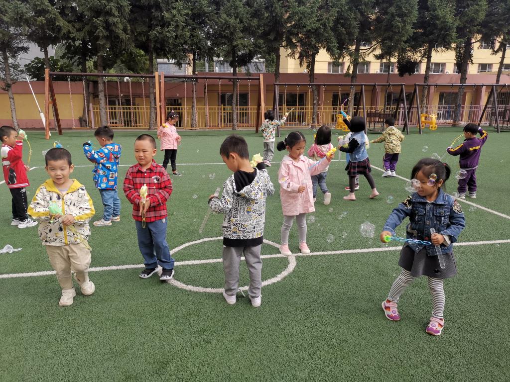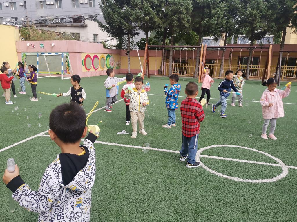 宝贝们在经过一个“超长假期”后,一个个精神百倍,元气满满。他们分享自己的假期经历,展示自己的假期成果,大家凑在一起有说不完的话。老师拿出提前为宝贝们准备的升班小礼物——泡泡棒,宝贝们瞬间被吸引了,小泡泡一个个的升空,宝贝们的新旅程就在这场泡泡游戏中启程了。