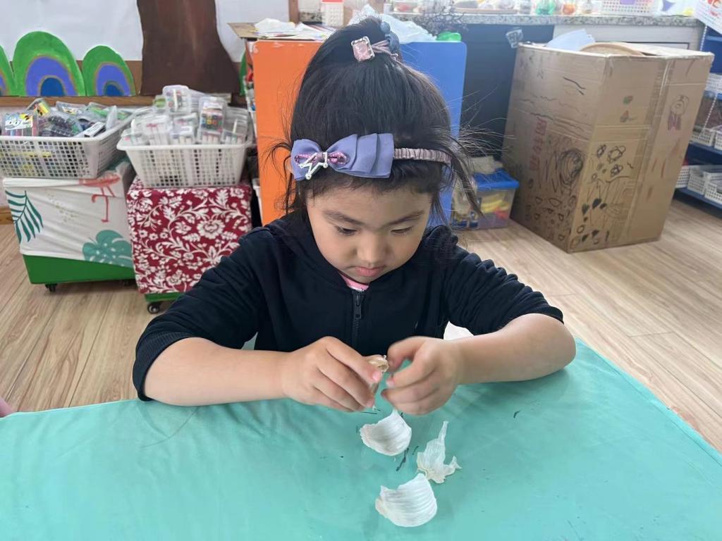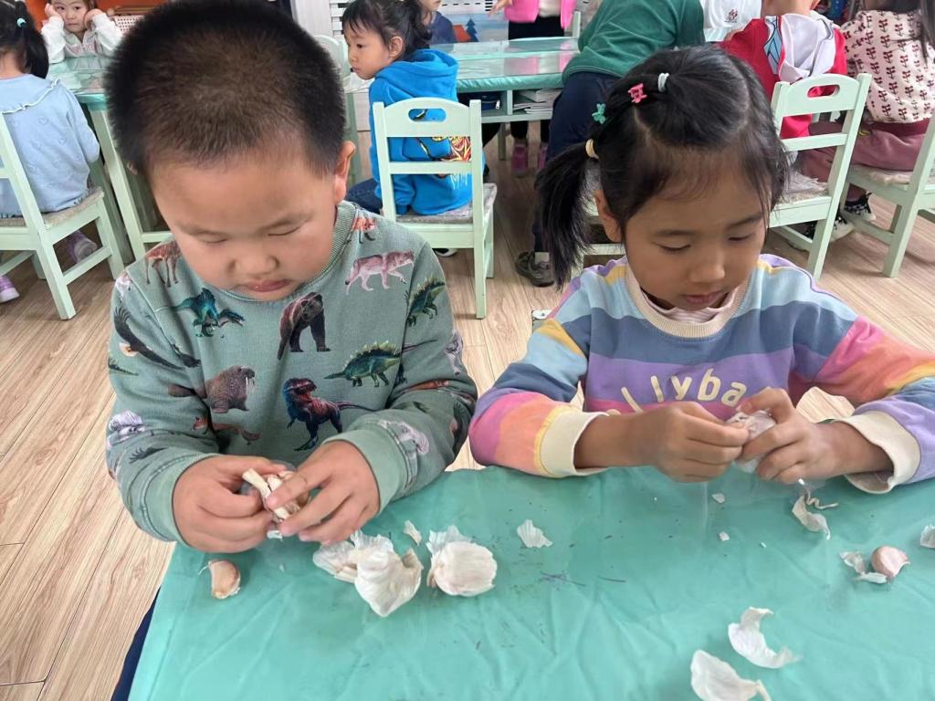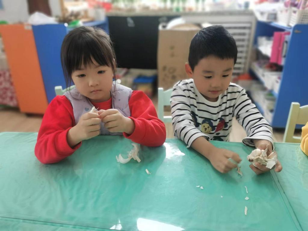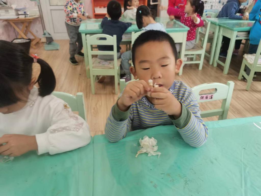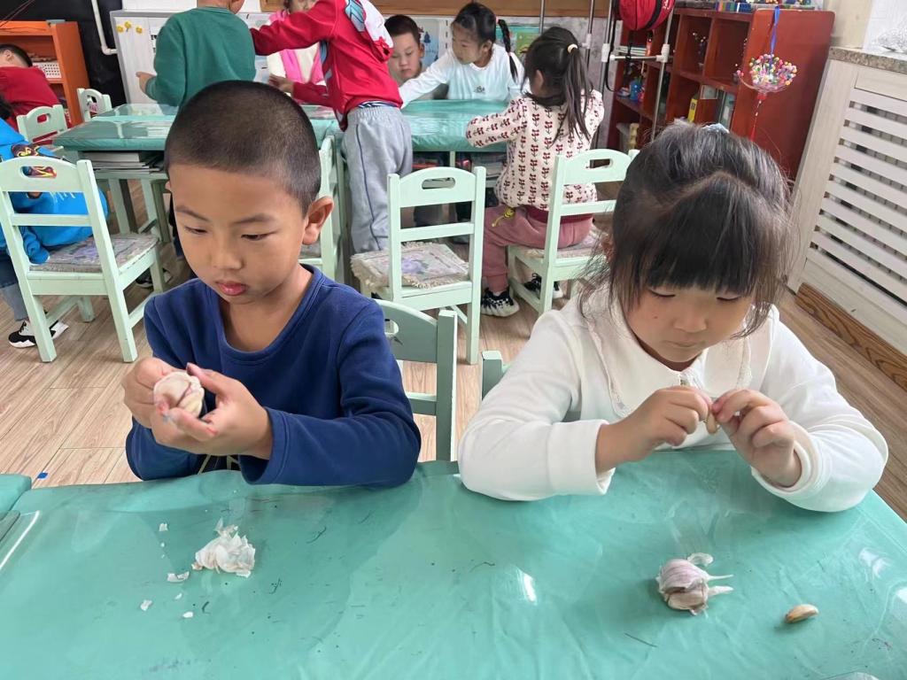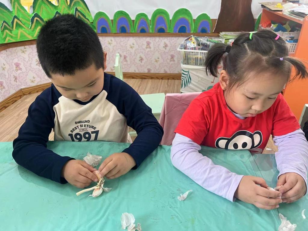 听到孩子们边观察大蒜边交流,大蒜还可以烤着吃,我吃过,非常好吃,我们和孩子们一起尝试东北特色---烤大蒜。
