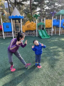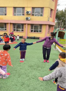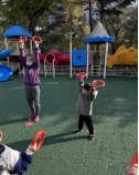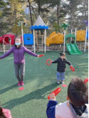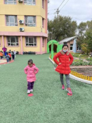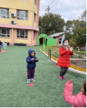 我与老师一起手拉着手,一起运动,身体棒棒,不生病。