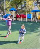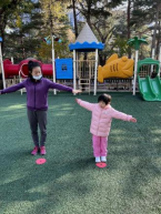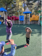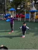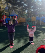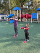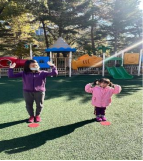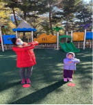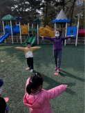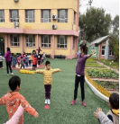 小手臂向前伸,小胳膊长长的,伸展动作做的好。