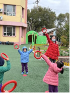 多有趣的器械操,小圈圈举起来,请你像我这样做。