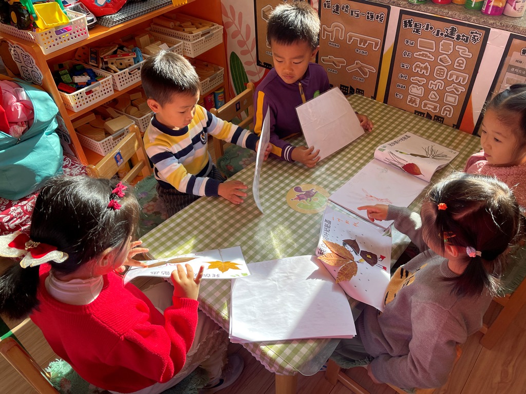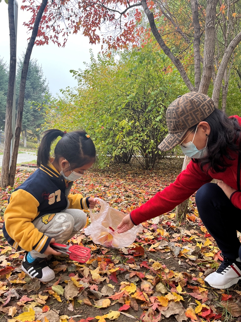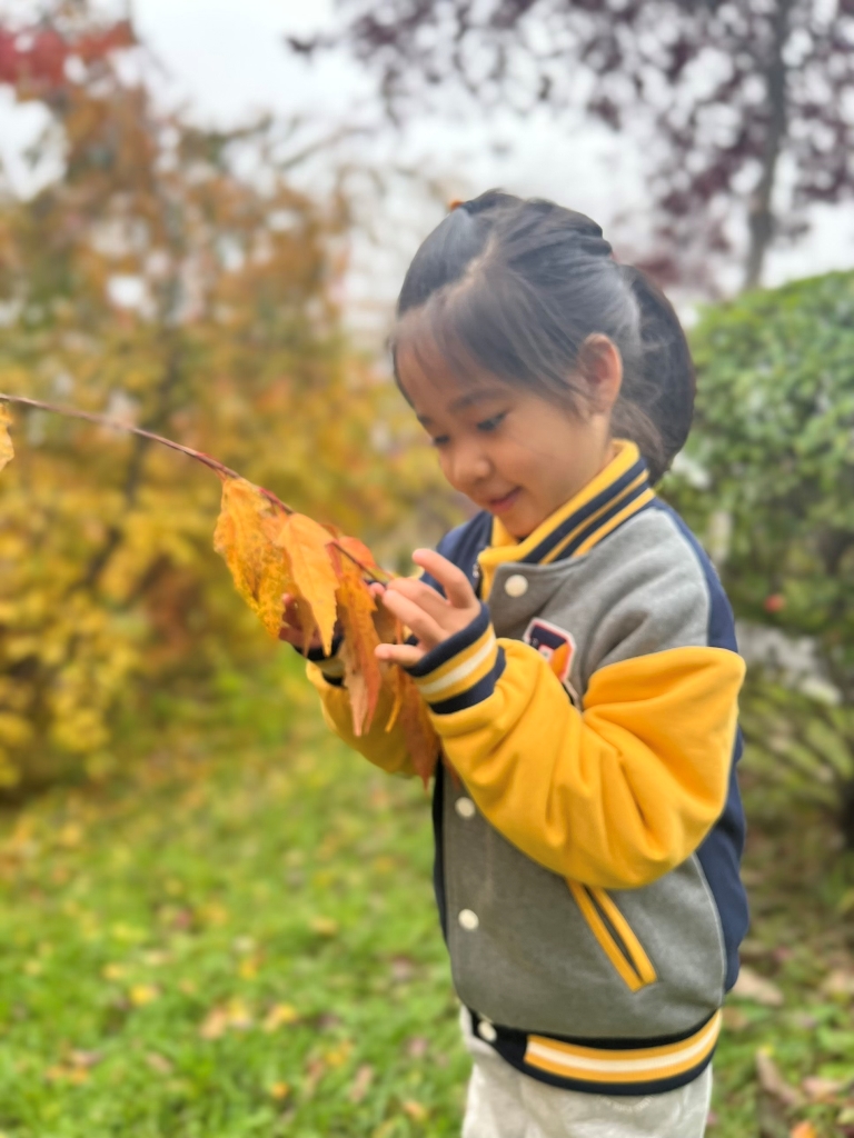 色彩斑斓、形态各异的树叶一片片随风落下来,充分激发了孩子们科学探索与艺术表现的兴趣。搜集来的小树叶和枯树枝,虽不起眼,但却都是绝佳的艺术材料。