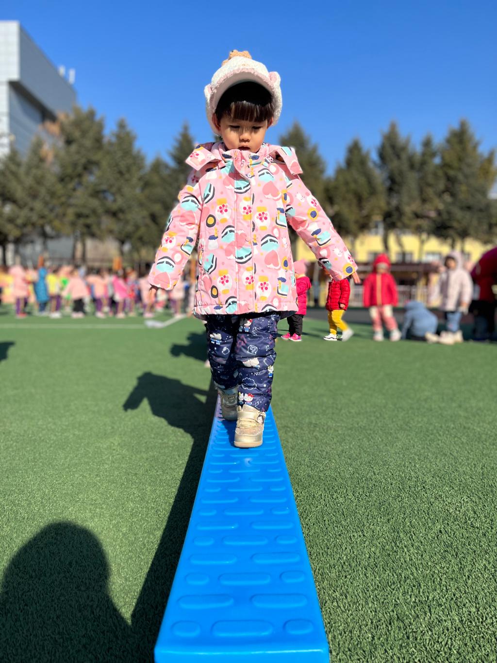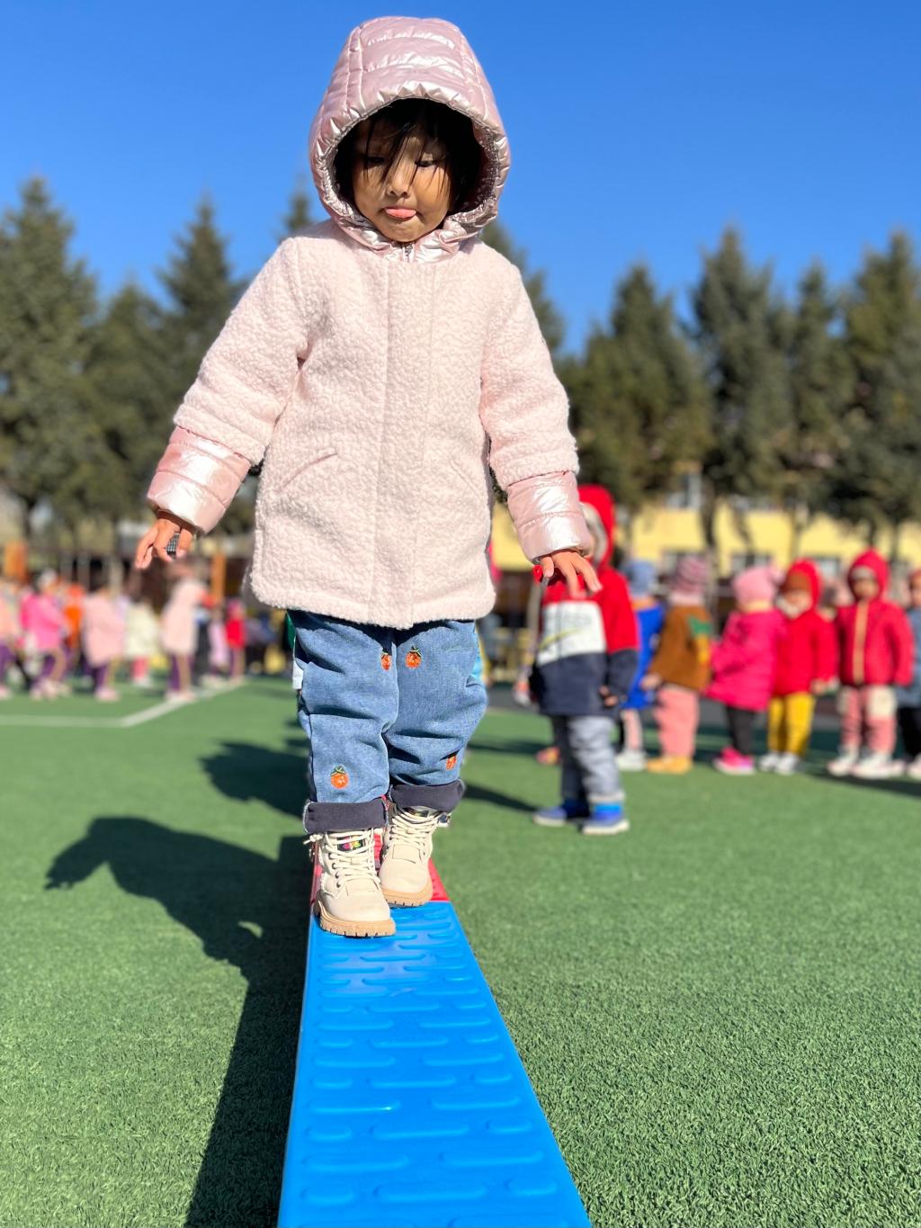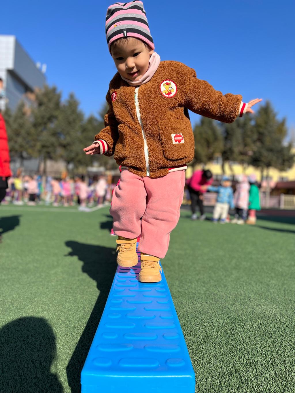 通过这次户外平衡木游戏,宝贝们不仅在动作发展上又上了一个台阶,而且可以看出宝贝们脸上都洋溢着甜甜的笑容。平衡木发展了幼儿的平衡、攀登能力,也培养了幼儿勇敢、互相帮助的良好品质。