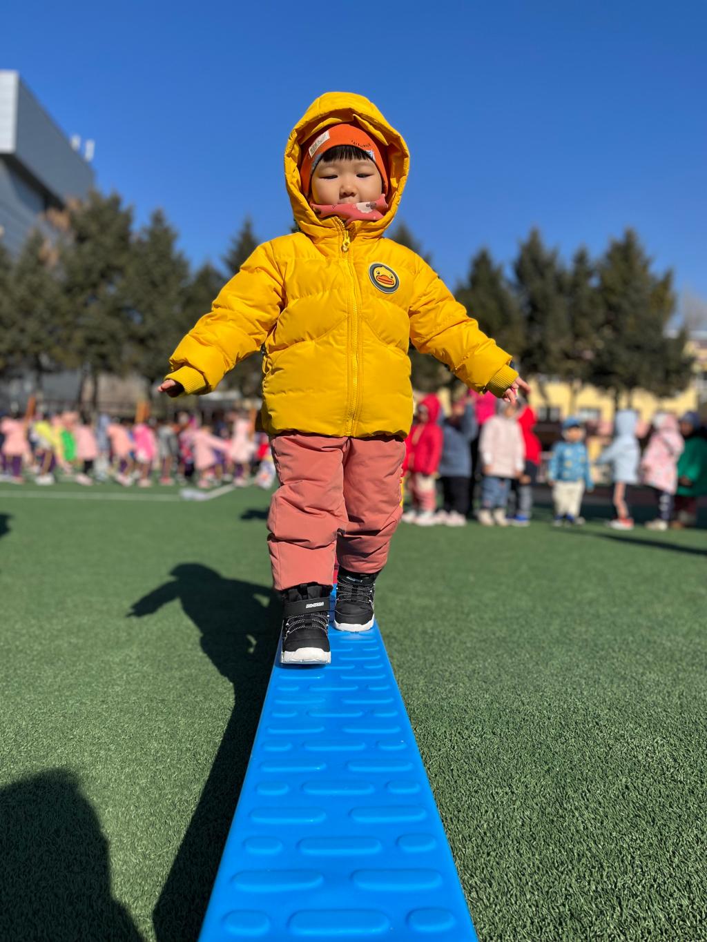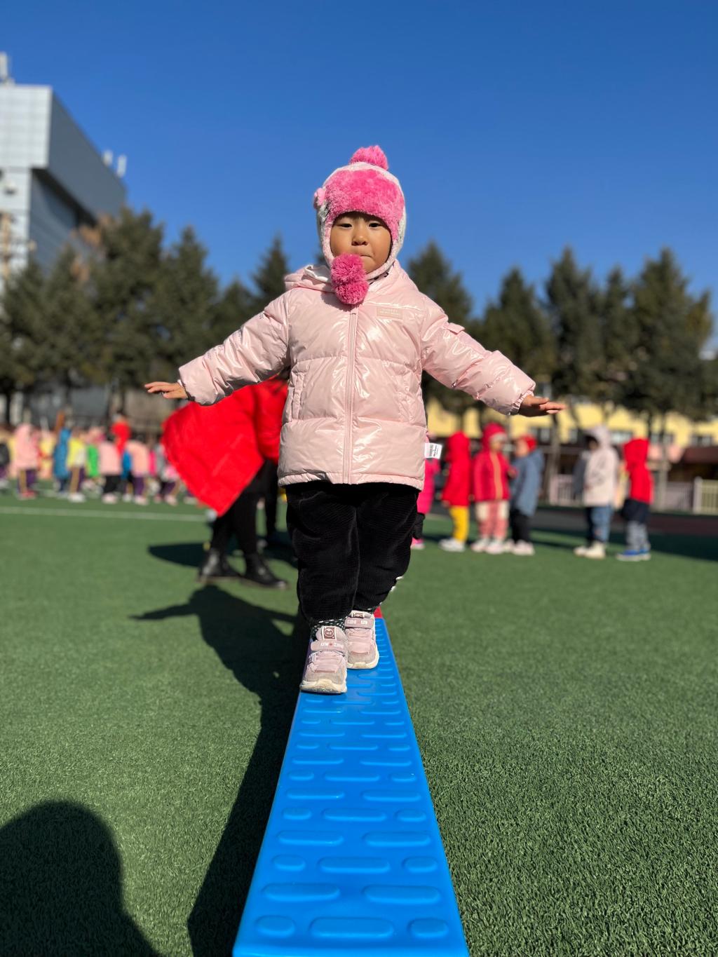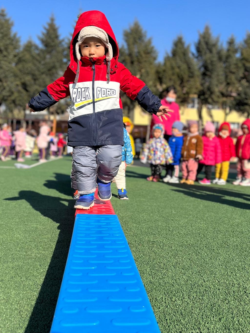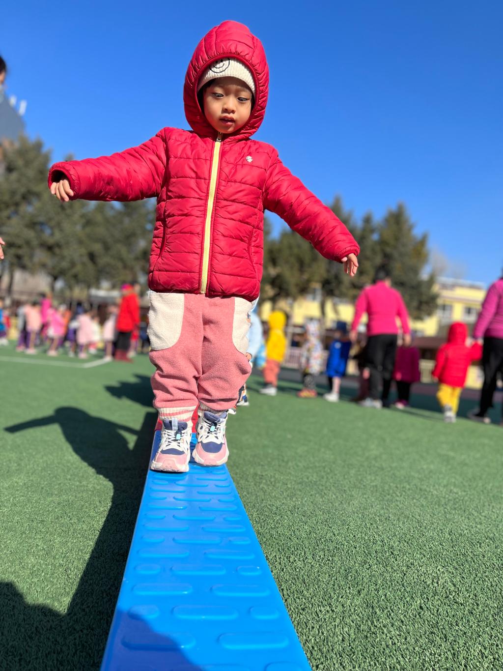 通过这次户外平衡木游戏,宝贝们不仅在动作发展上又上了一个台阶,而且可以看出宝贝们脸上都洋溢着甜甜的笑容。平衡木发展了幼儿的平衡、攀登能力,也培养了幼儿勇敢、互相帮助的良好品质。