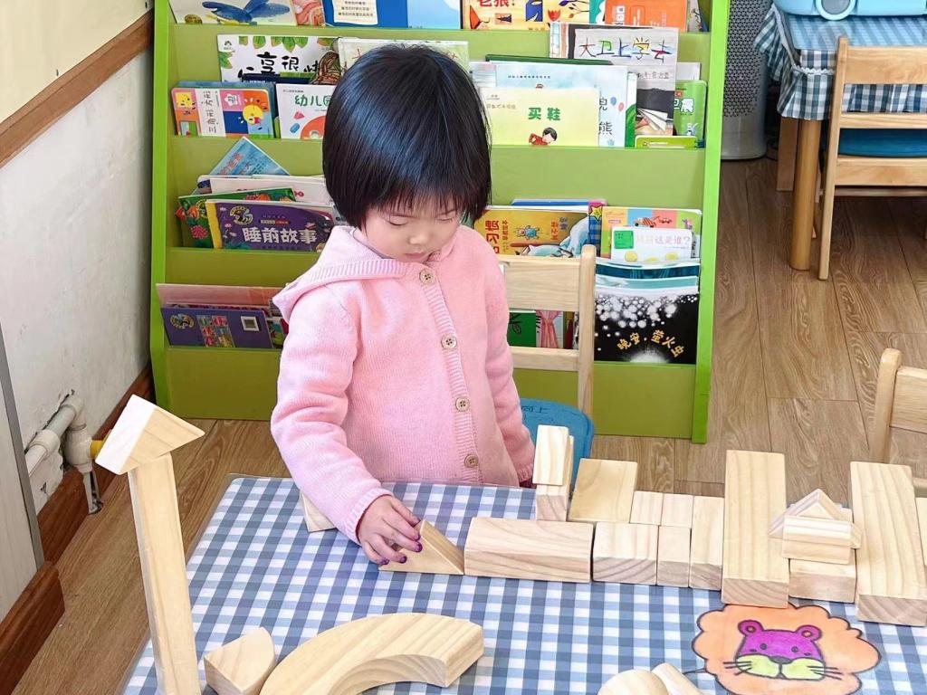 安安问:“老师,看我搭的高不高?”