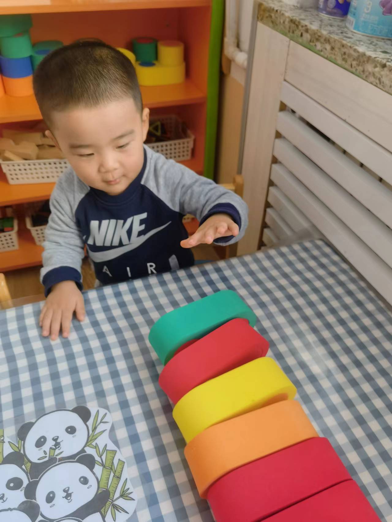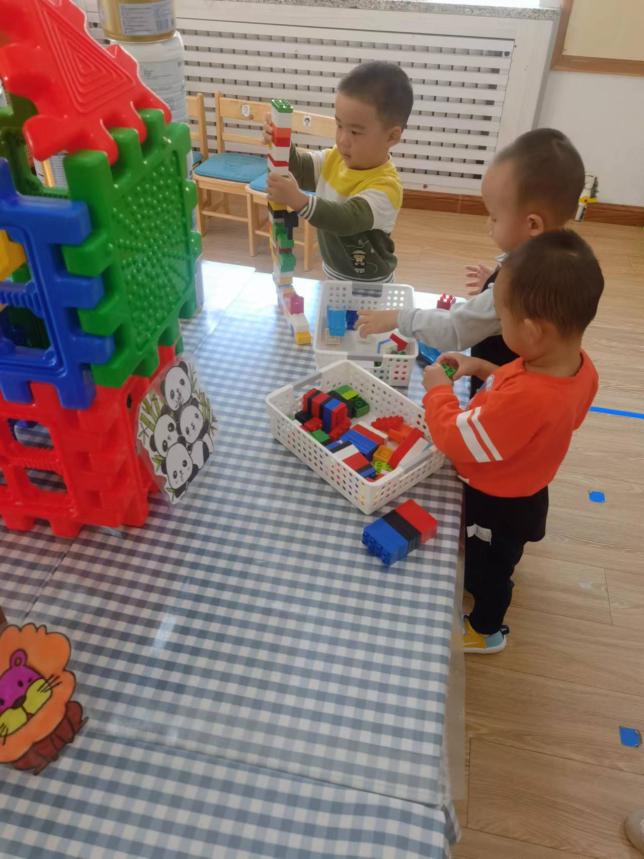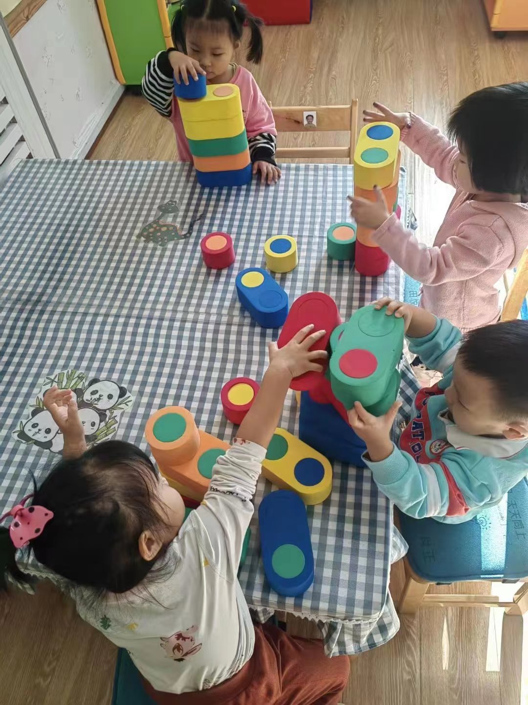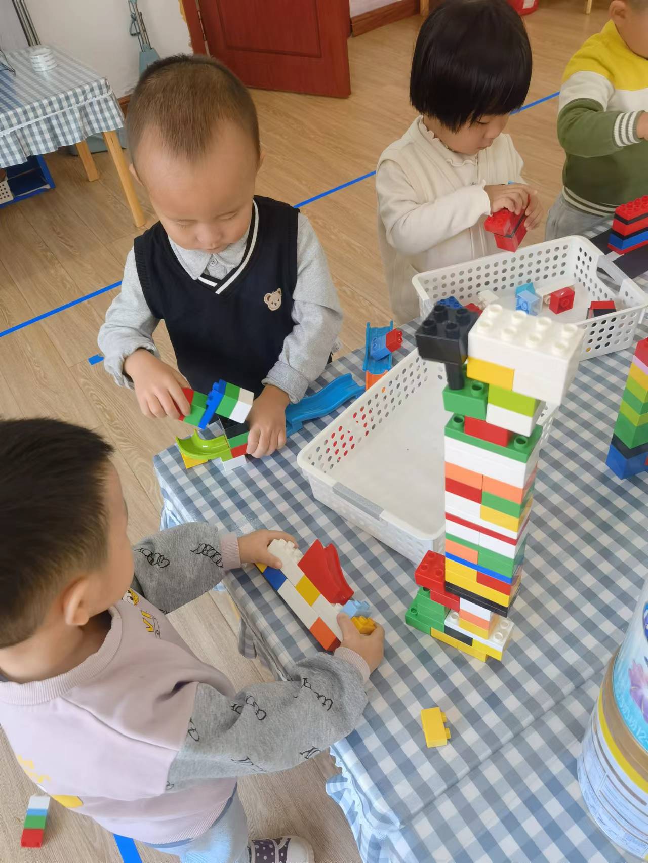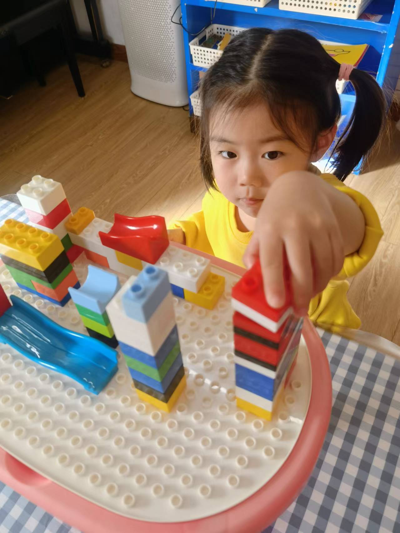 慢慢的,宝贝们开始知道,要将积木对齐,这样才会更稳固。