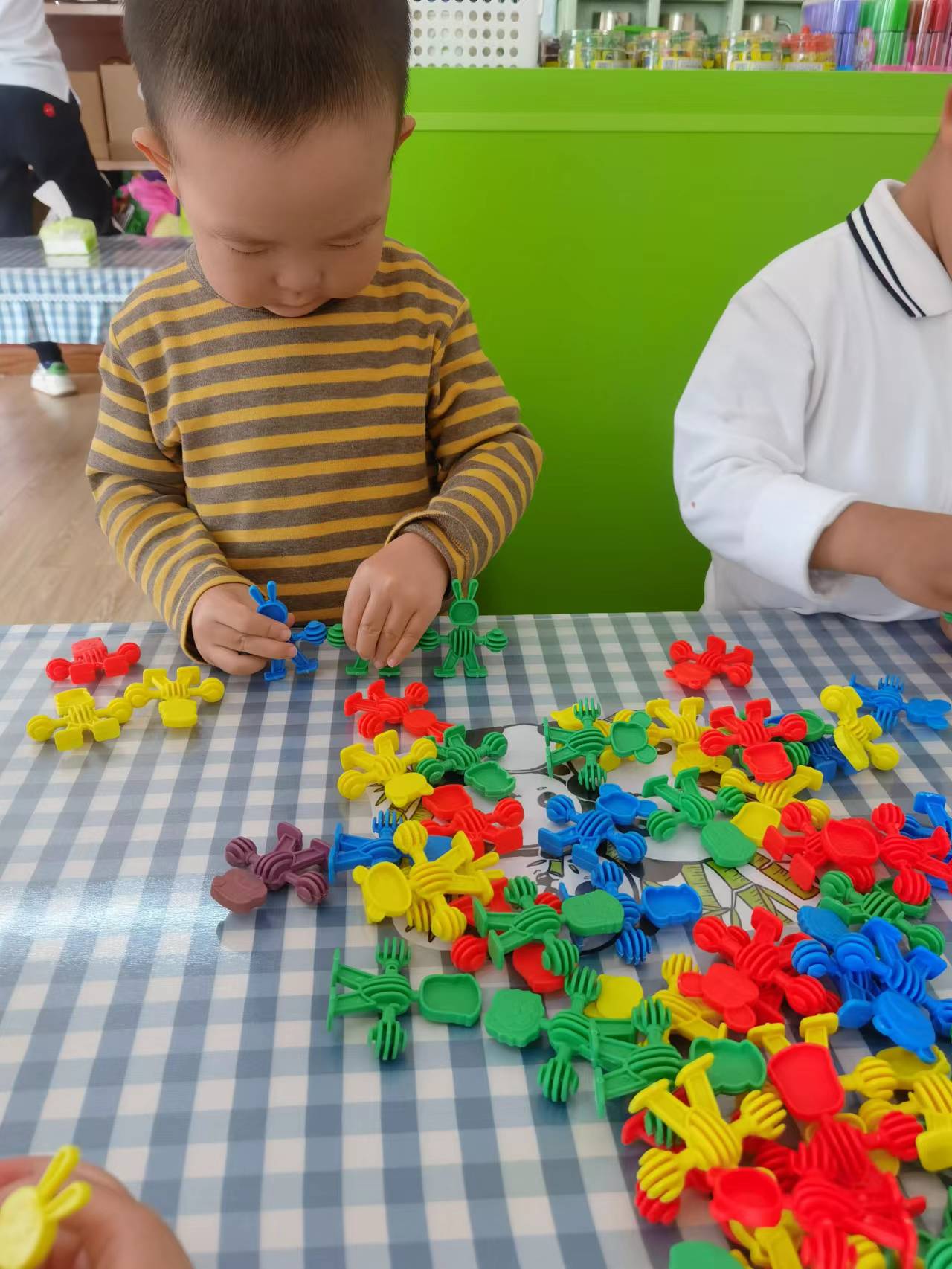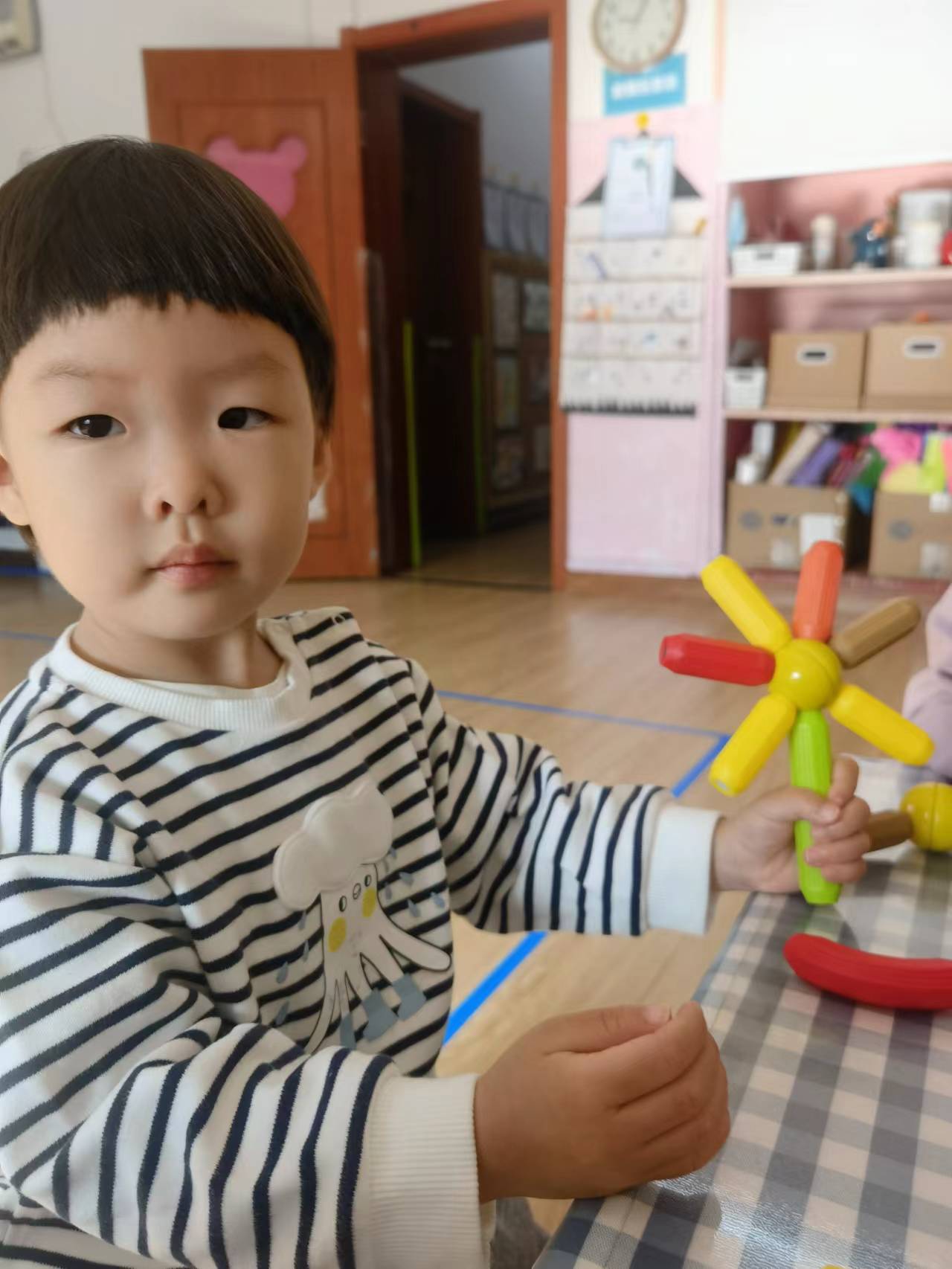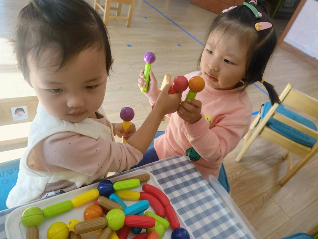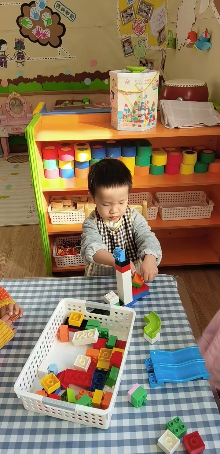 小小班的宝贝们初次接触建构,孩子们在游戏的过程中,自己发现,探索建构的基本技能。
