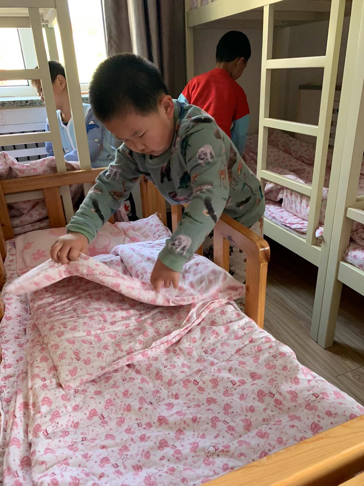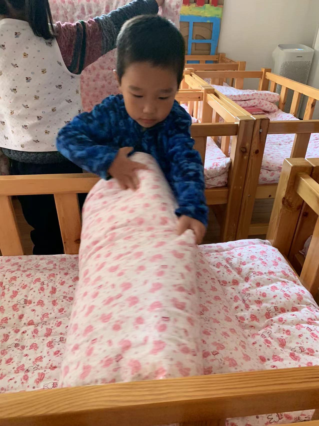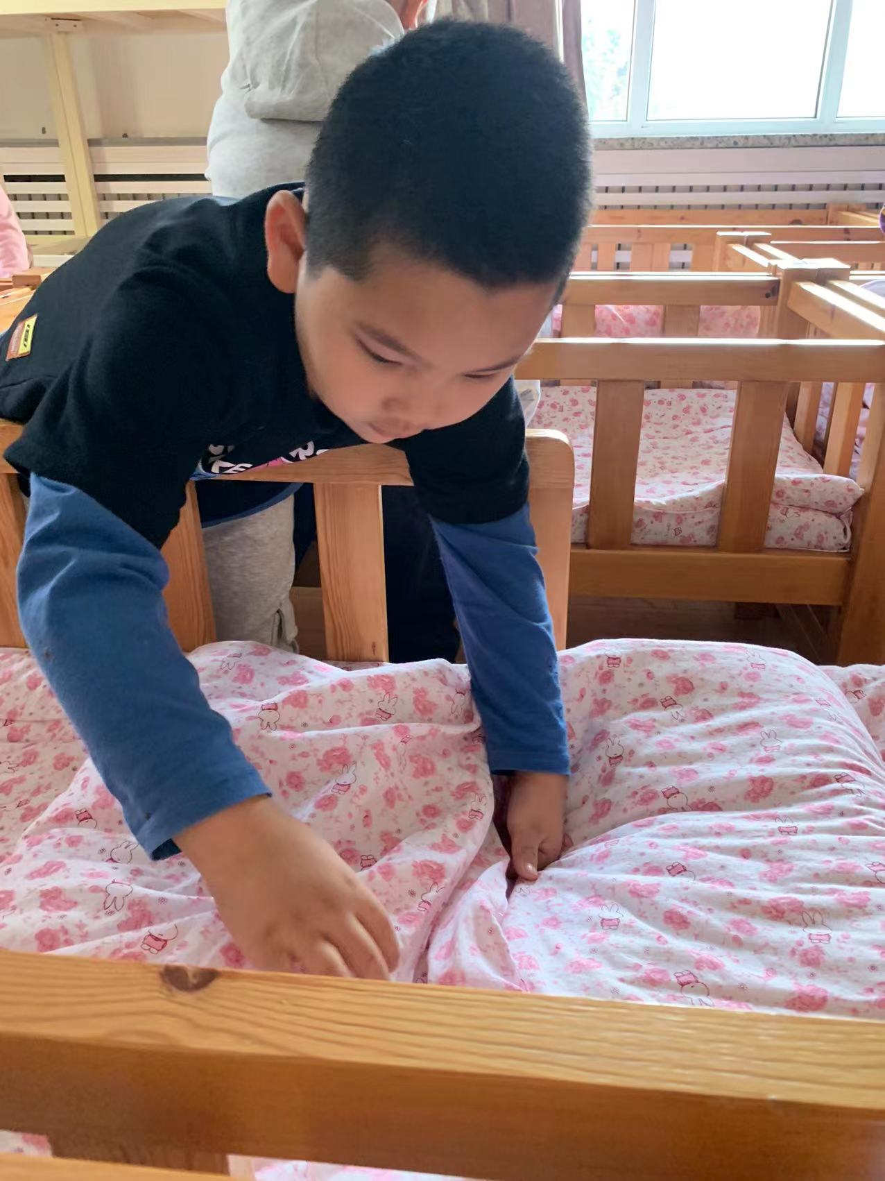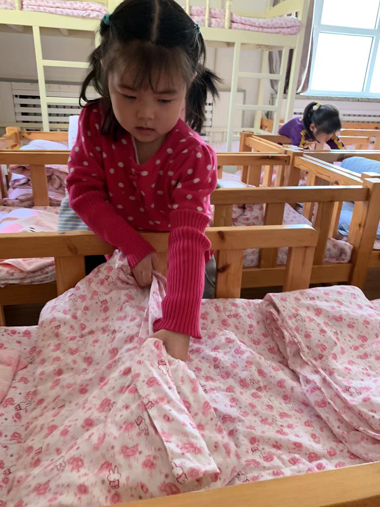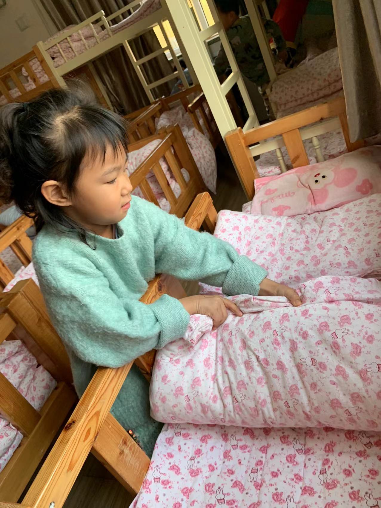 为了进一步提高幼儿的生活自理能力,学会自己的事情自己做,有效培养幼儿自我服务意识,果果一班开展了自理能力展示及比赛活动之--整理小床铺。