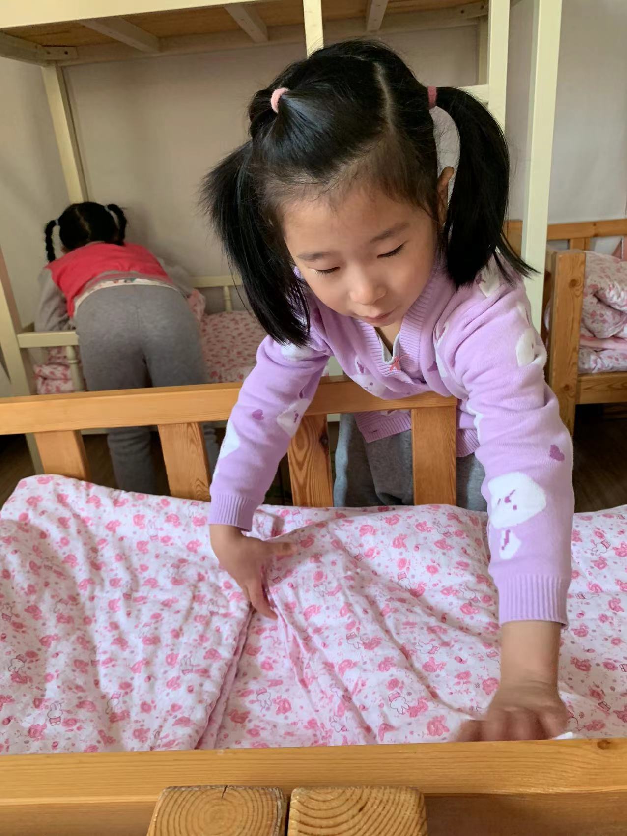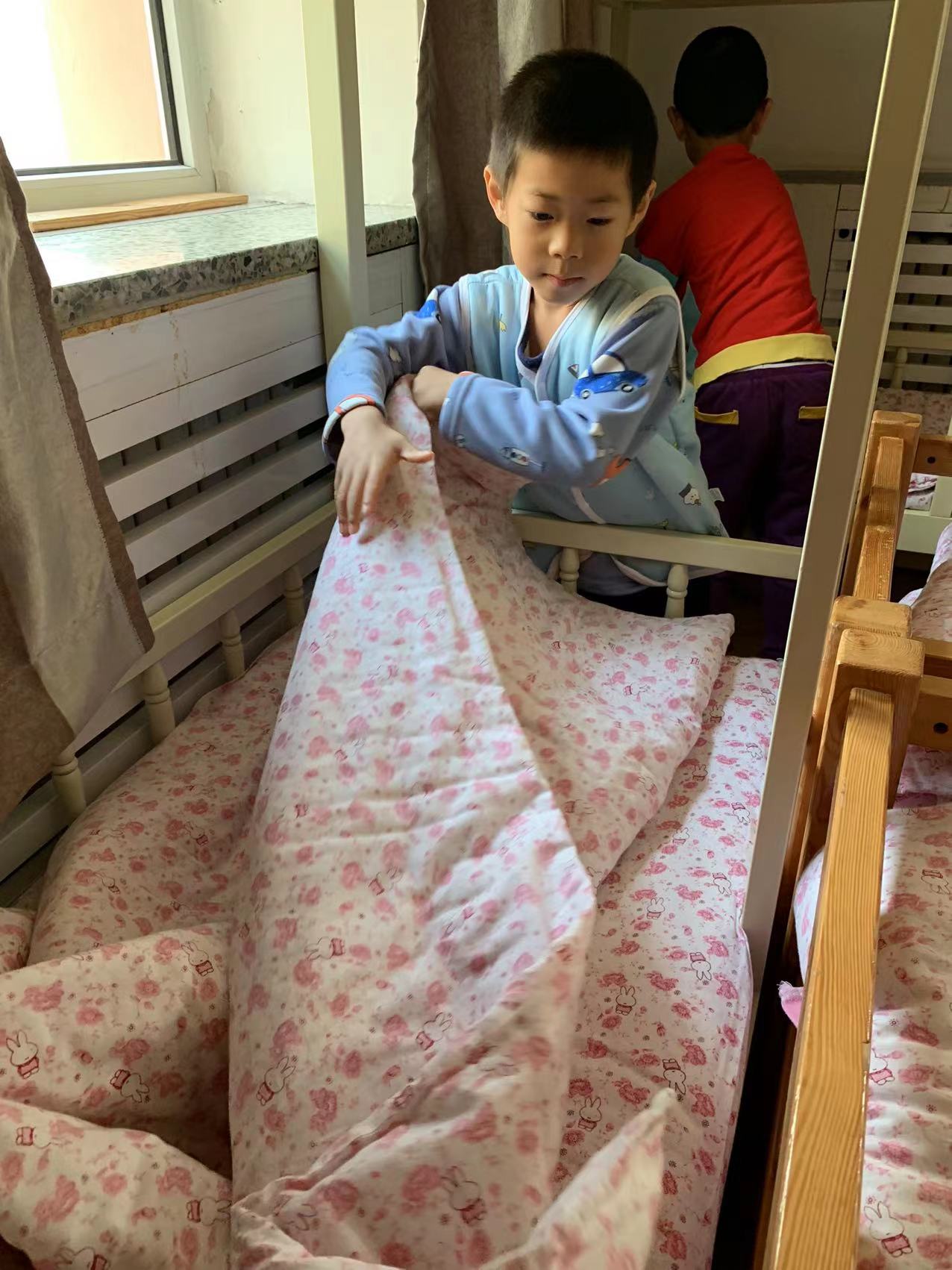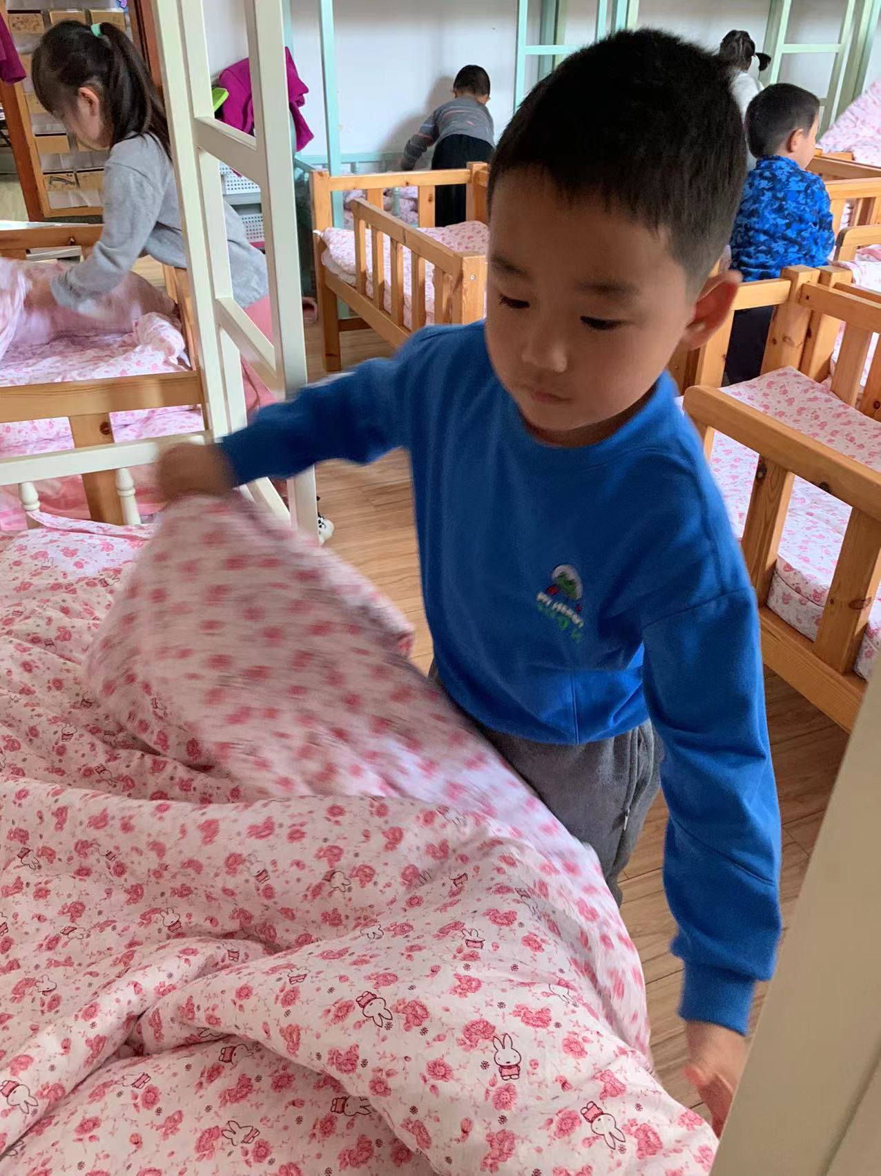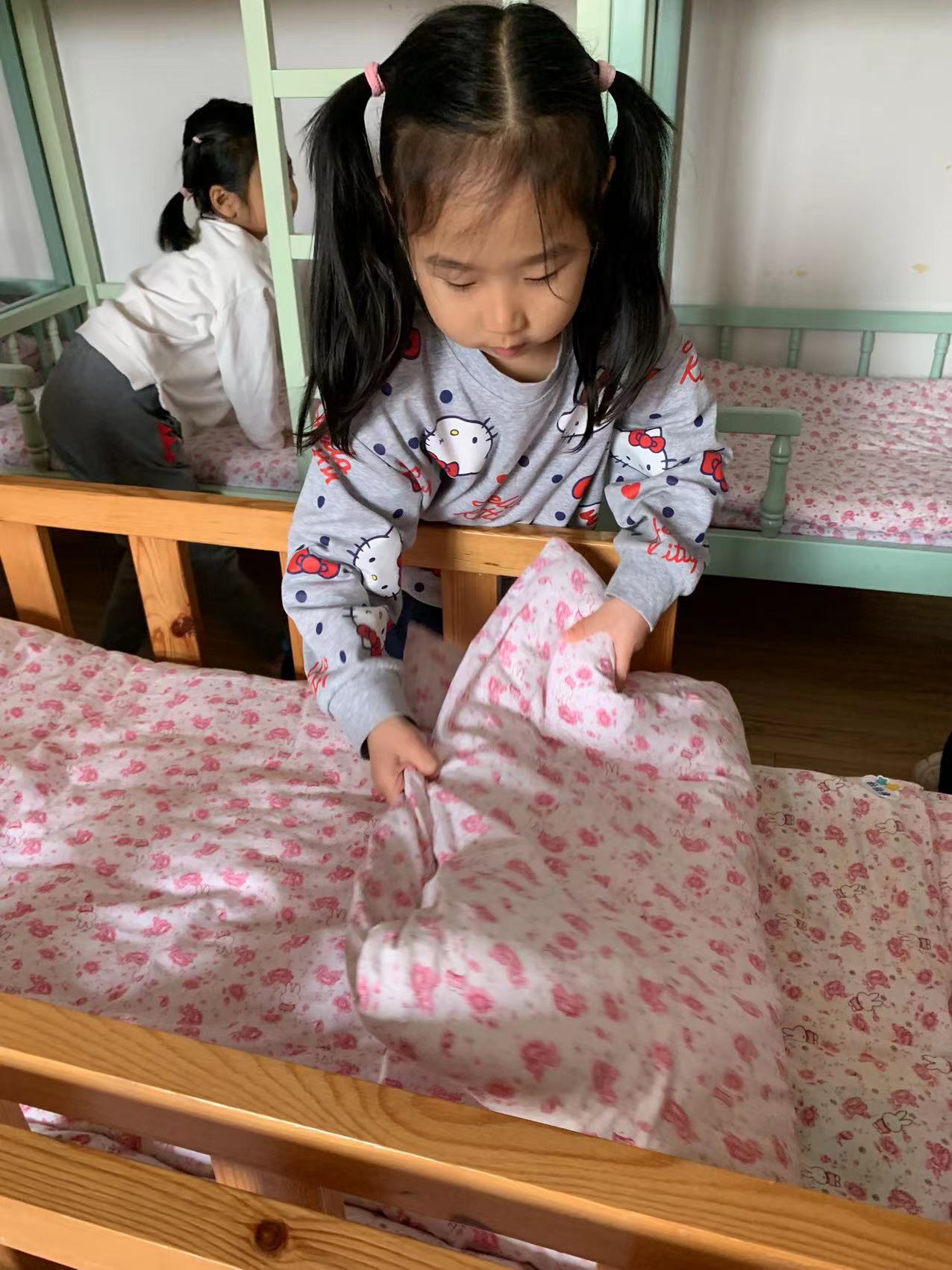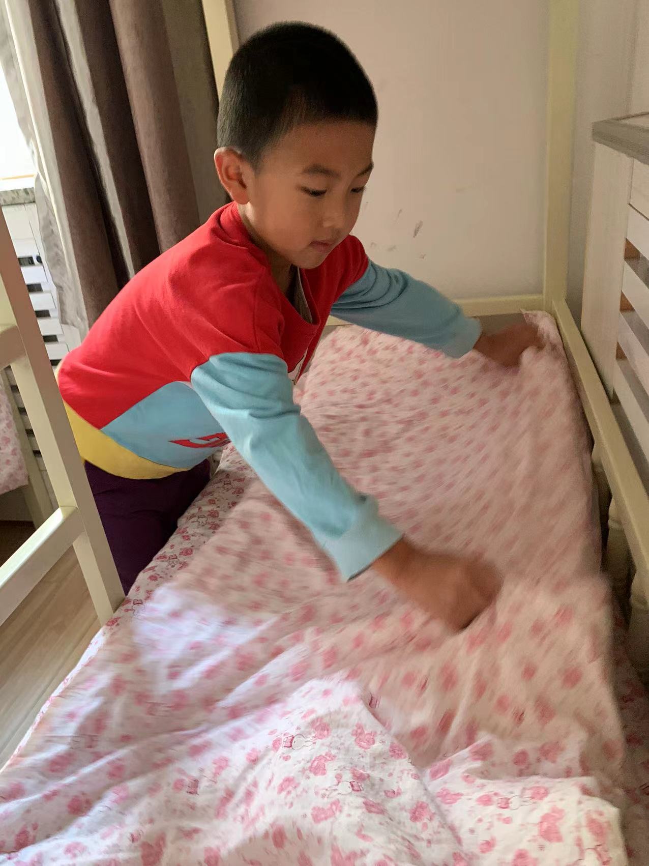 为了进一步提高幼儿的生活自理能力,学会自己的事情自己做,有效培养幼儿自我服务意识,果果一班开展了自理能力展示及比赛活动之--整理小床铺。